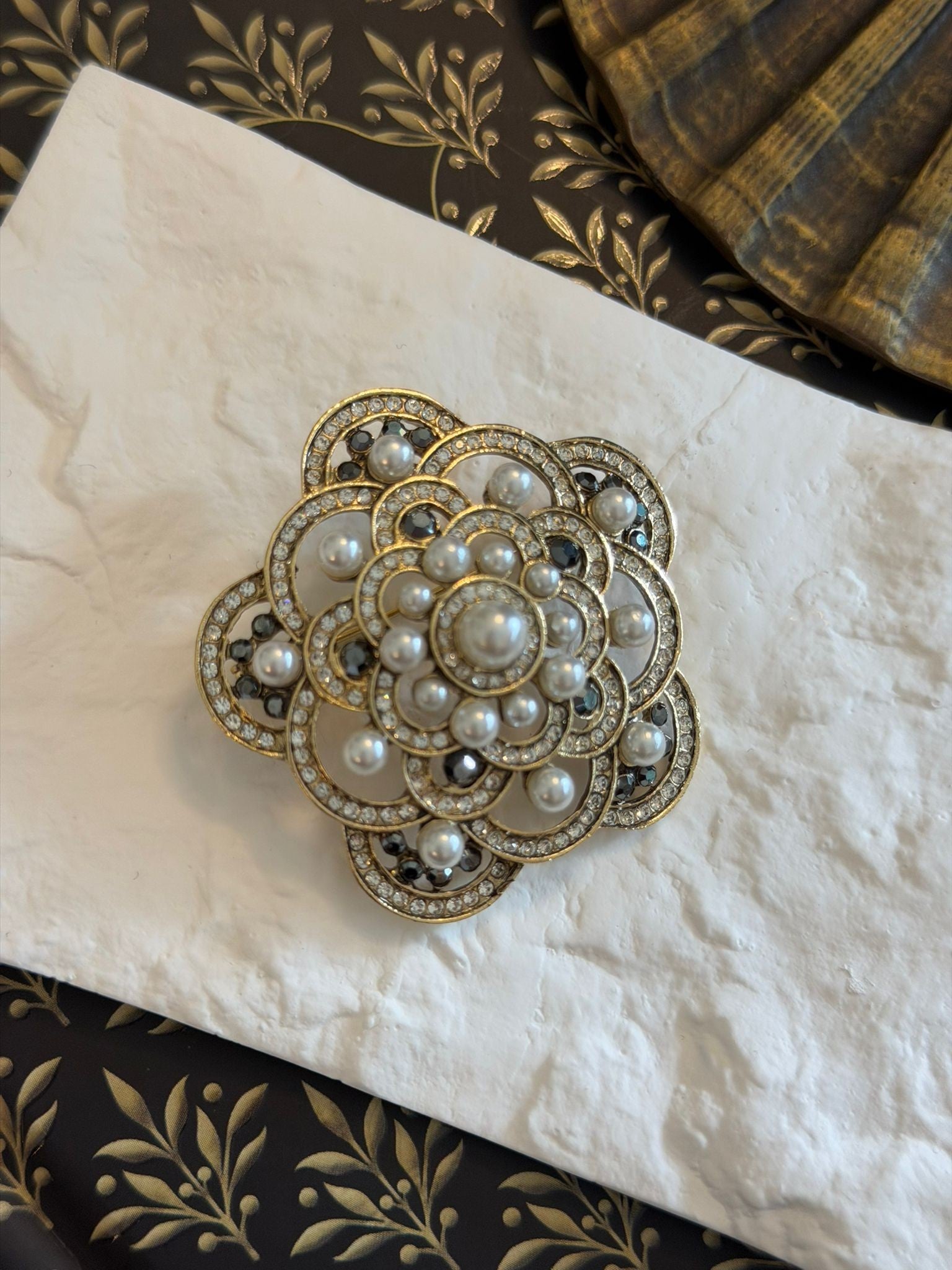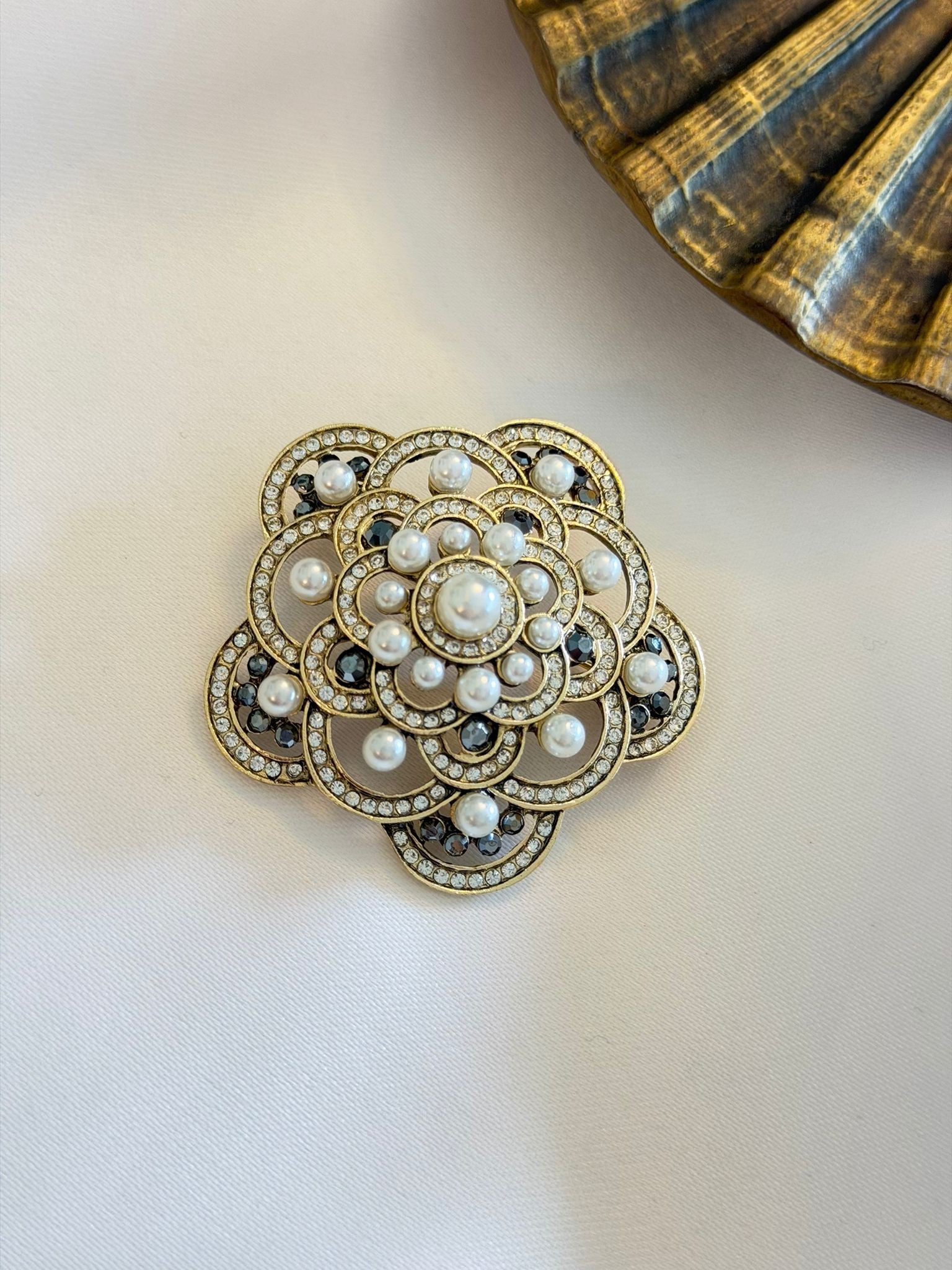 İnci Detay Çiçek Broş (Bronz Kaplama)