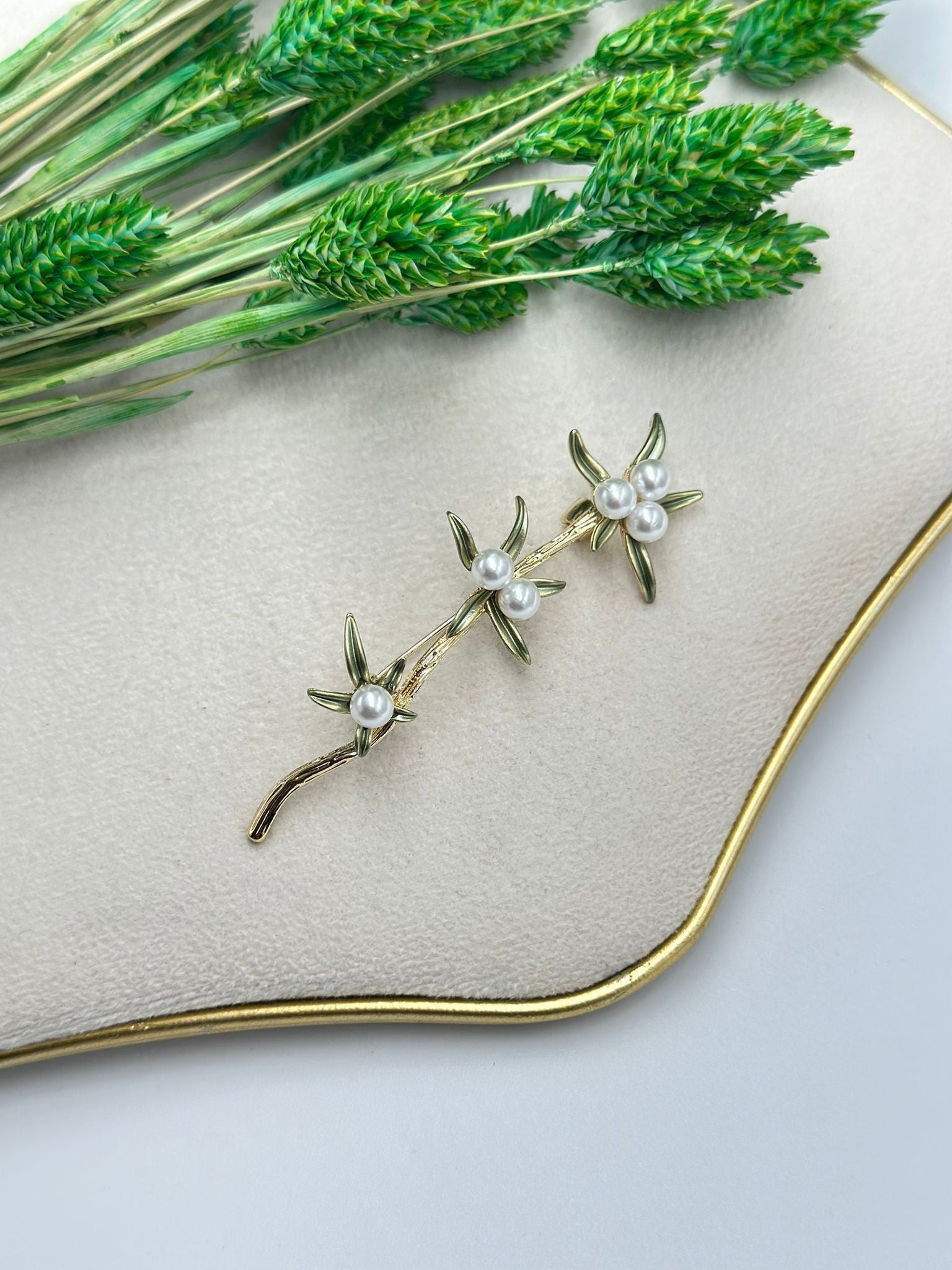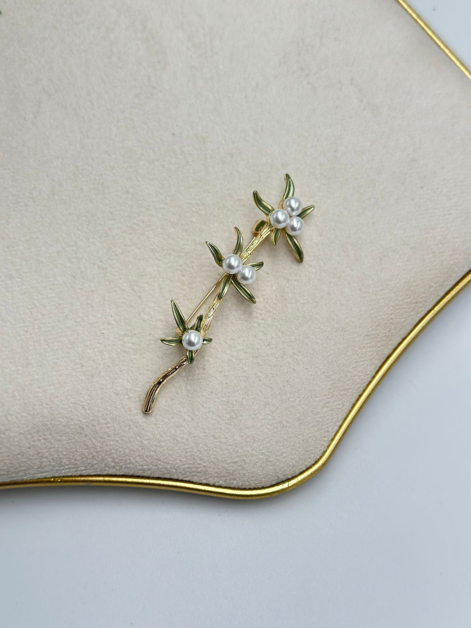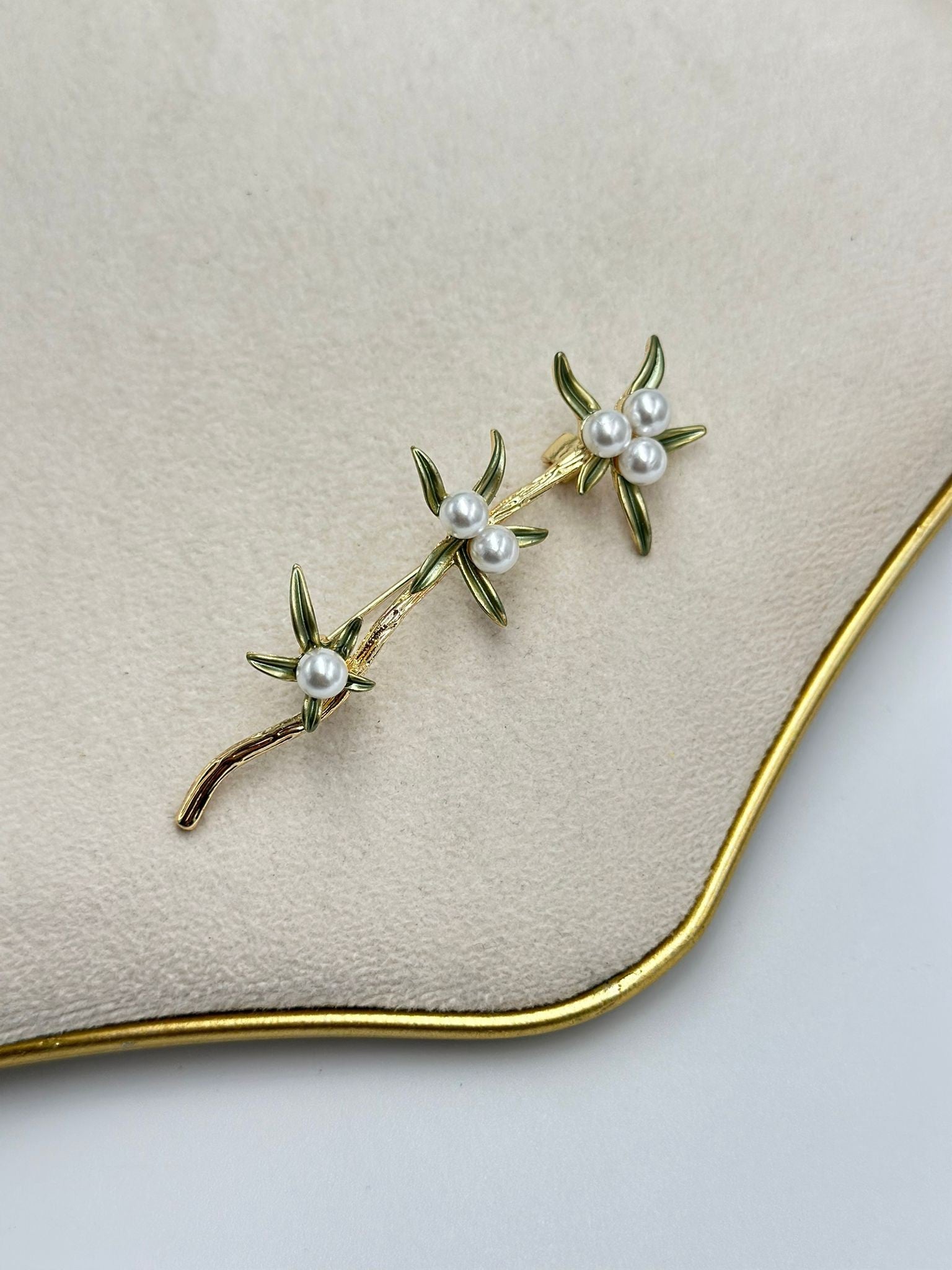 İnci Detaylı Üçlü Çiçek Broş