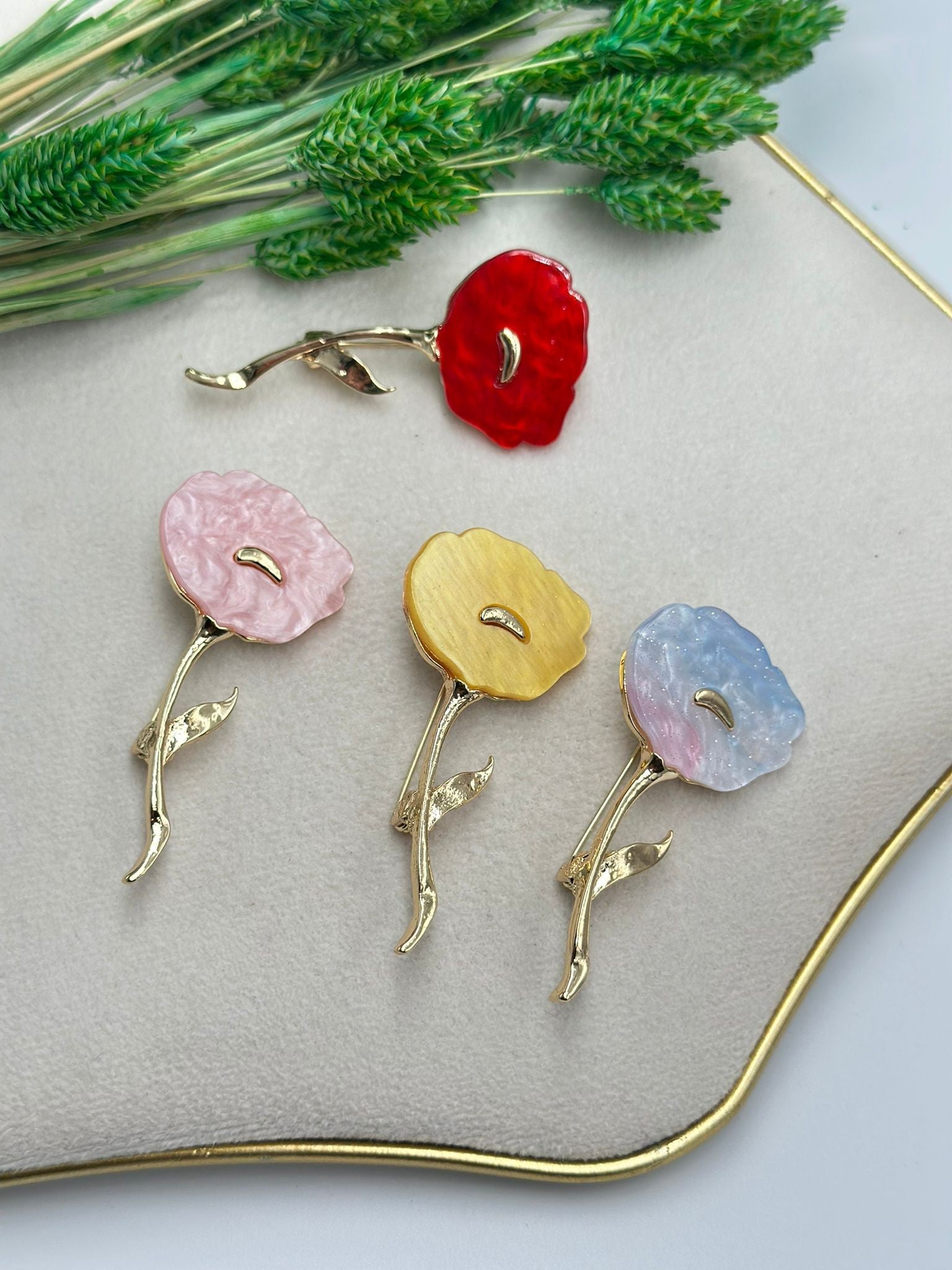 Sedefli Lale Broş