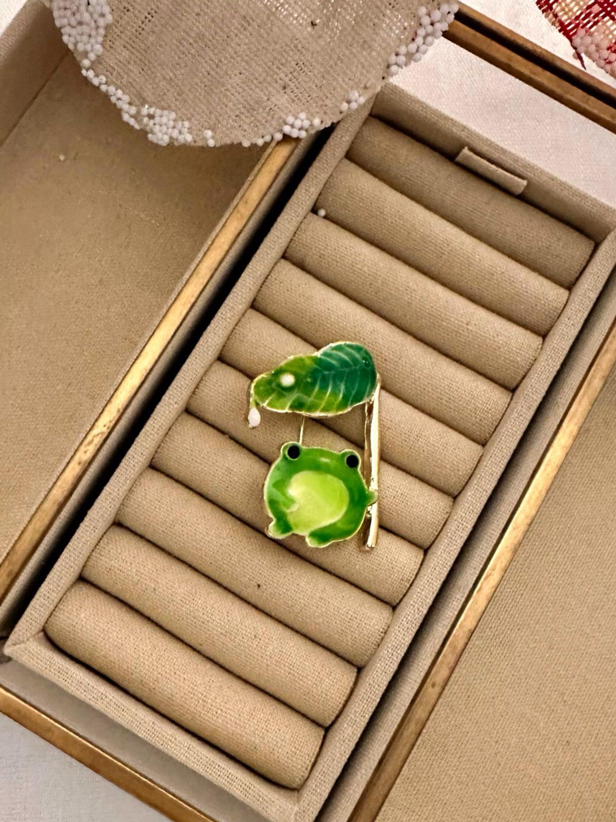Yeşil Yaptak ve Kurbağa Detaylı Şirin Broş