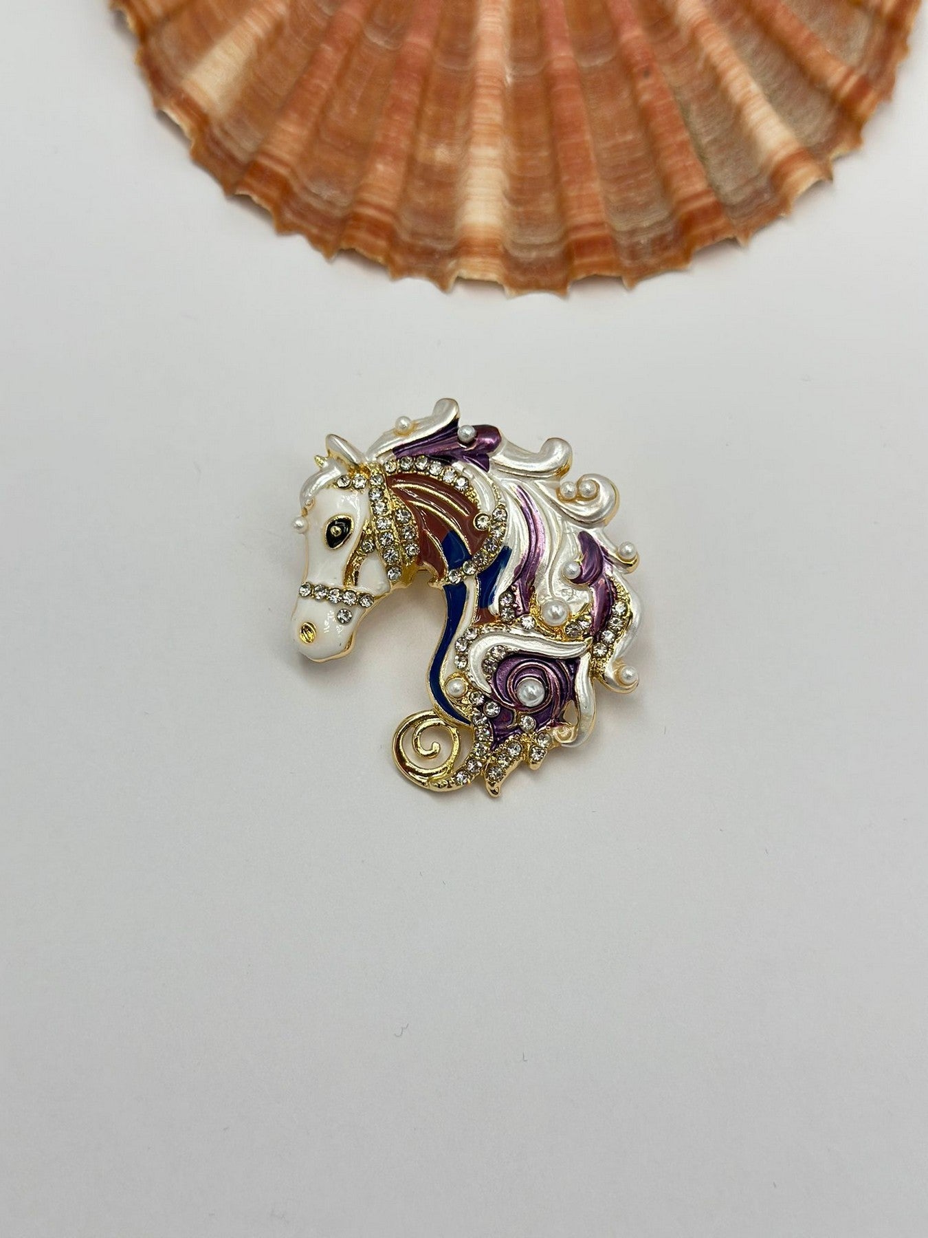 Zirkon Taş Detay Renkli At Broş