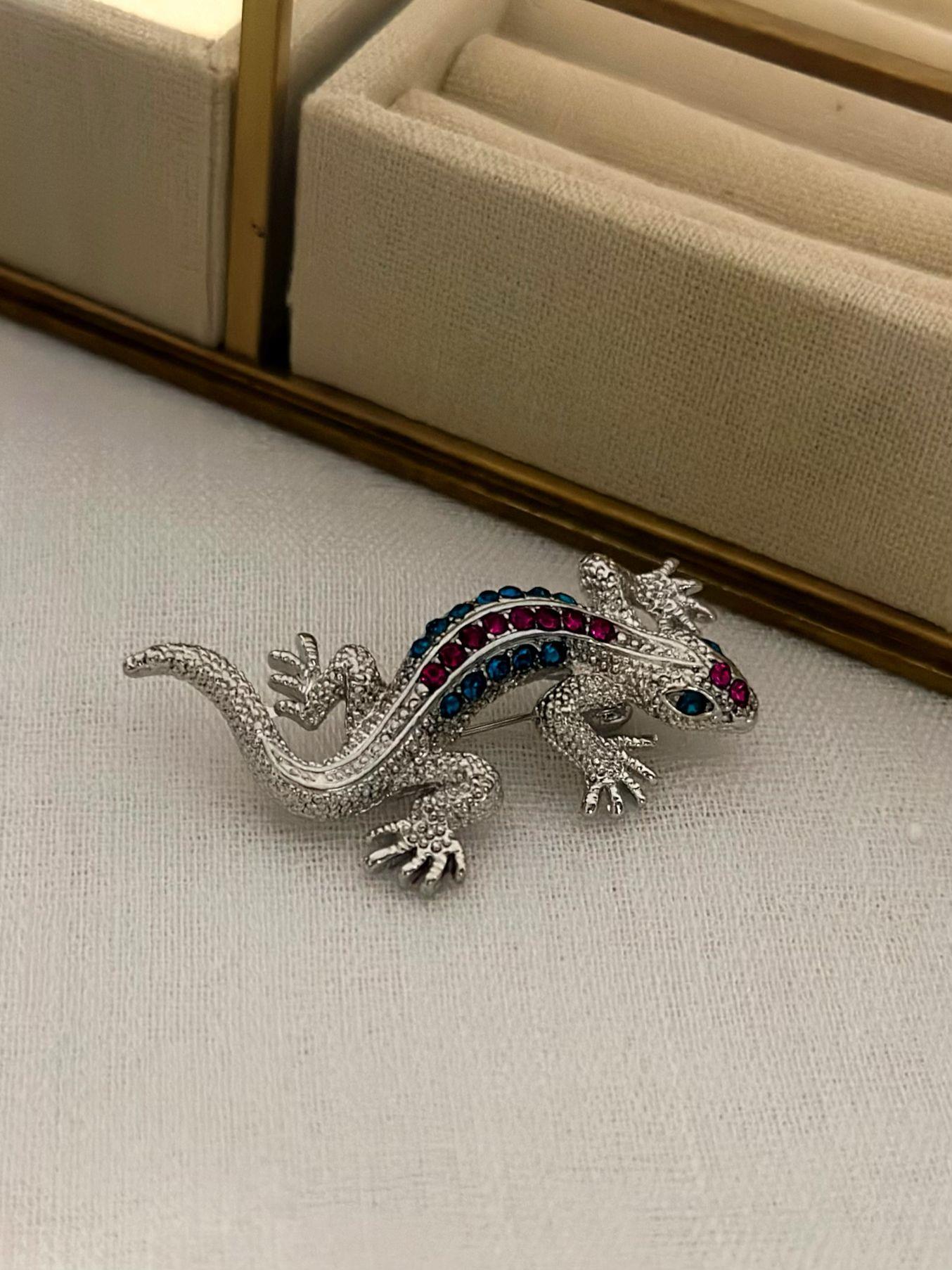 Zirkon Taş Detaylı Otantik Metal İguana Figürlü Broş