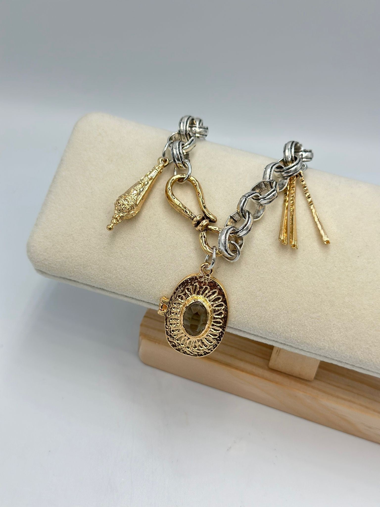 İkili Charm Detaylı Bileklik (Çelik)