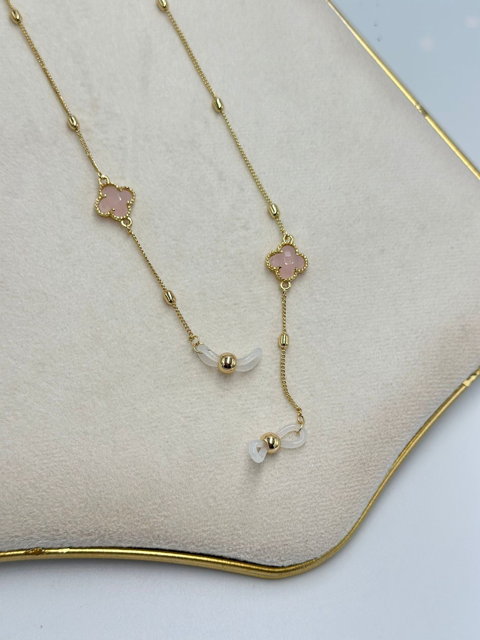 Pembe Yonca Detay Çelik Gözlük İpi