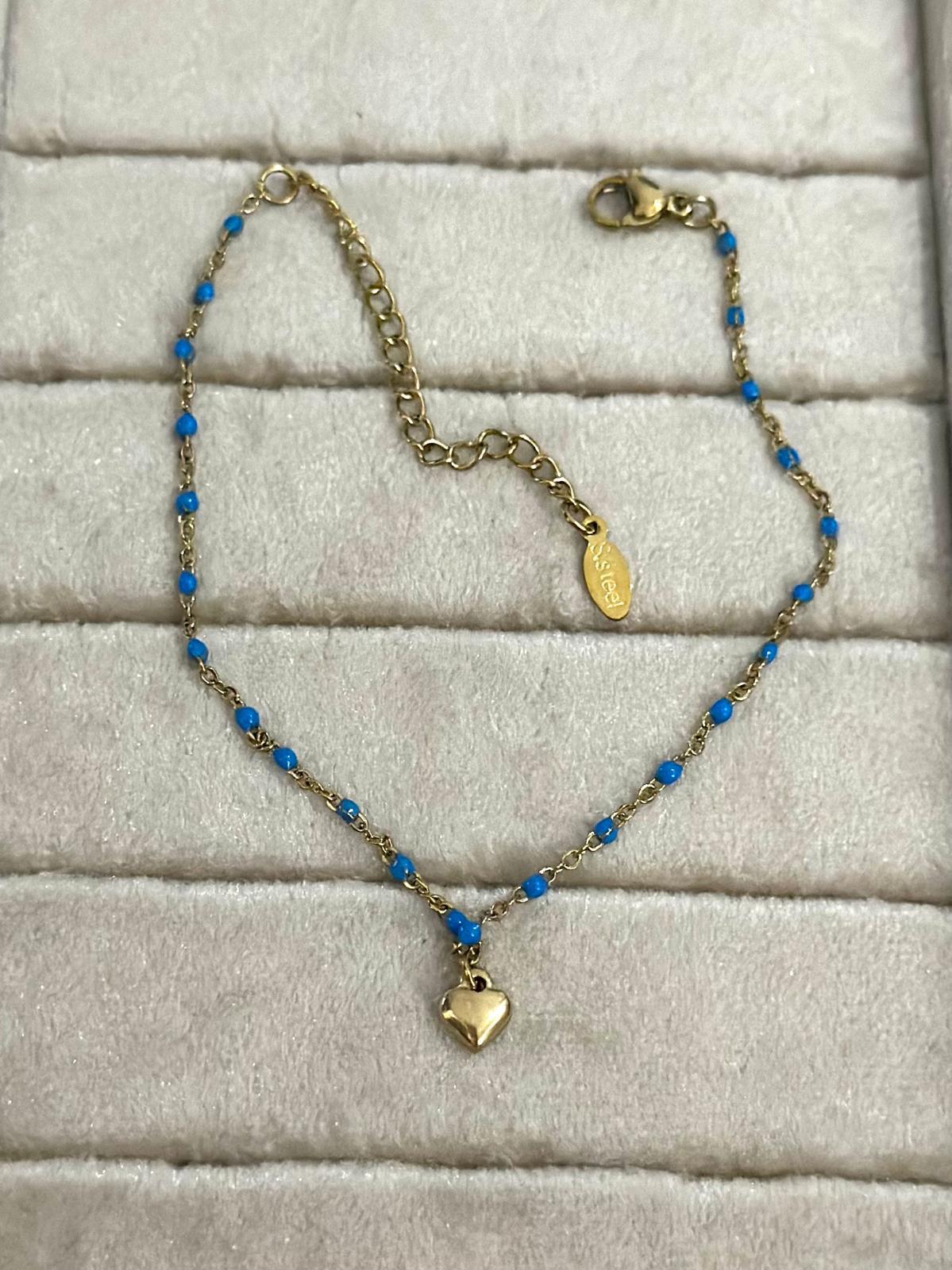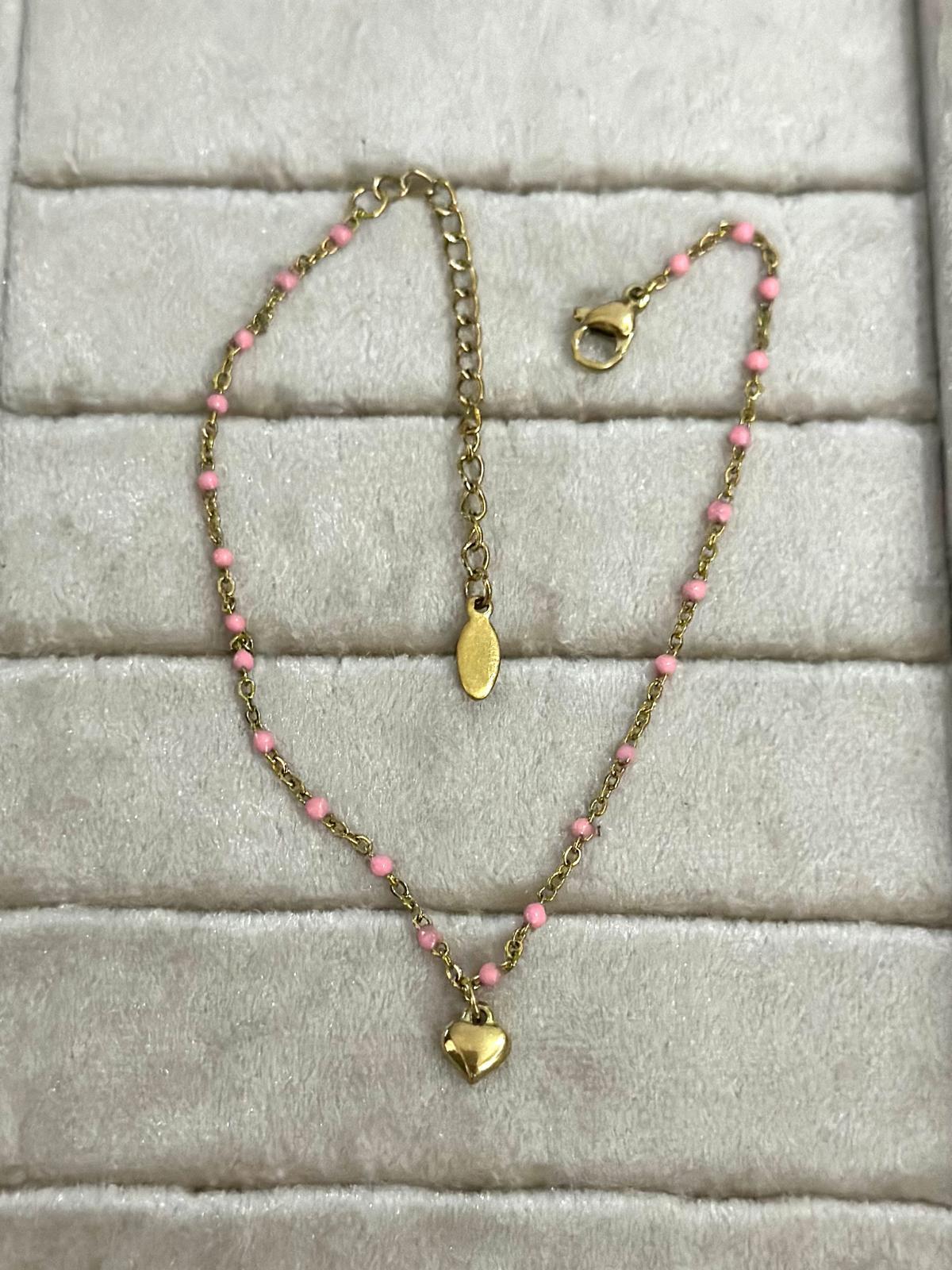 Renkli Boncuk Ve Kalp Detaylı Hal Hal (Pirinç Kaplama)