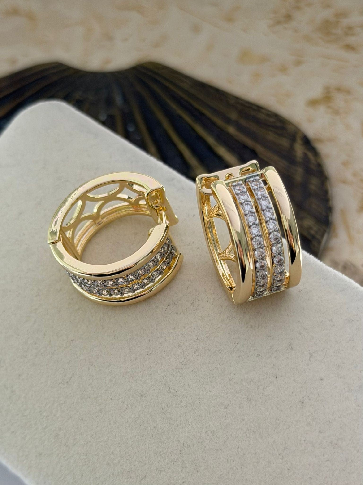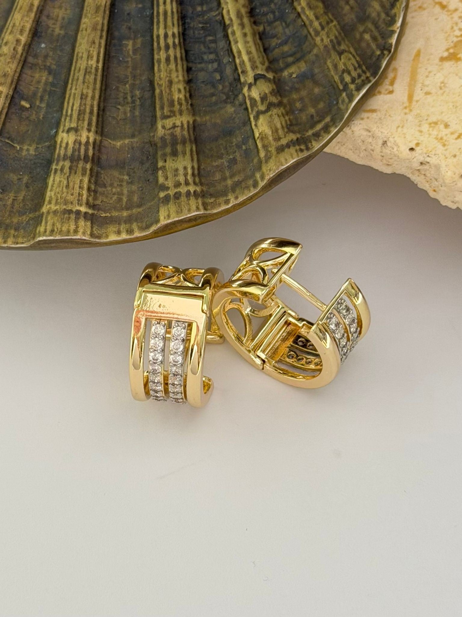 2 Sıra Zirkon Taş Detay Halka Küpe (Pirinç Kaplama)