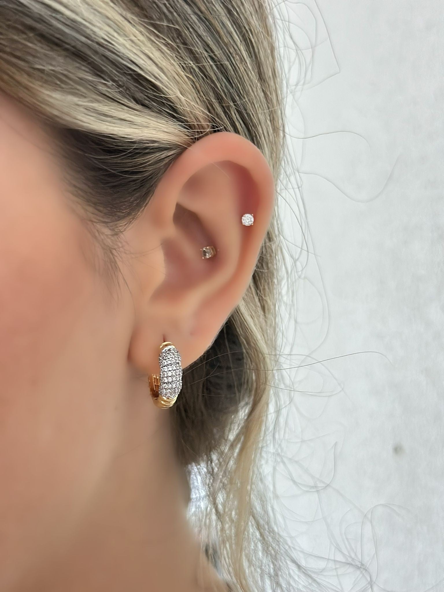 Çift Renk Zirkon Taş Detay Halka Küpe