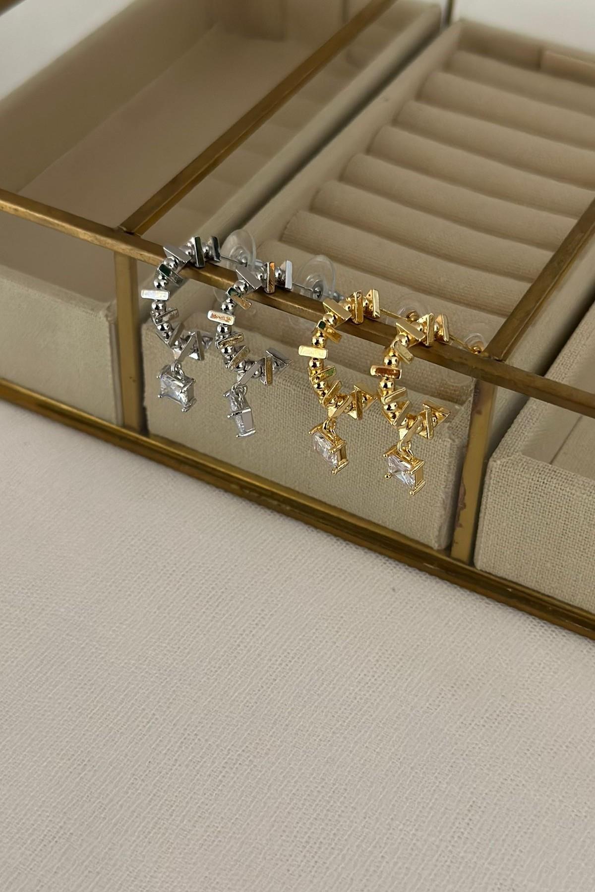 Özel Seri Sallantılı Baget Taş Detaylı Tırtık Plaka Halka Küpe