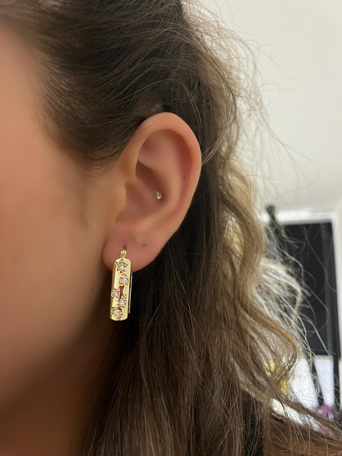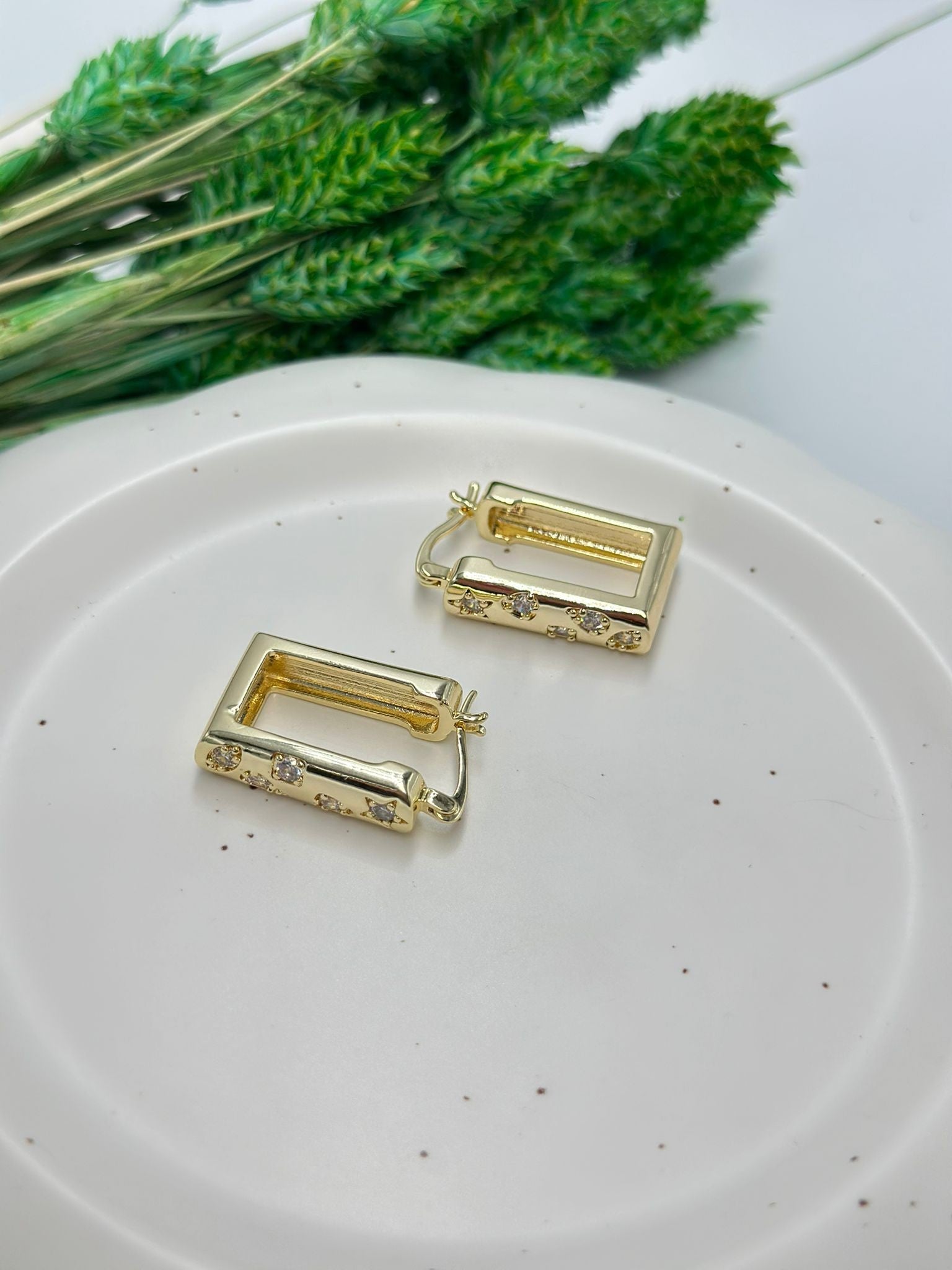 Yıldız Zirkon Taş Detay Kare Kesim Halka Küpe