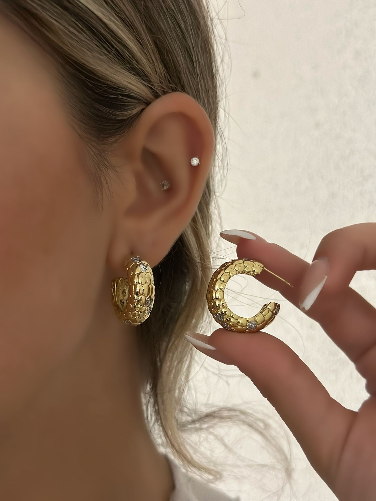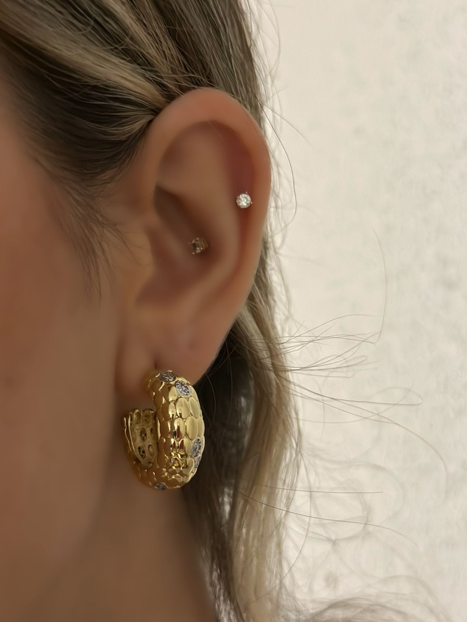 Zirkon Taş Baskı Detaylı Halka Küpe (Çelik)