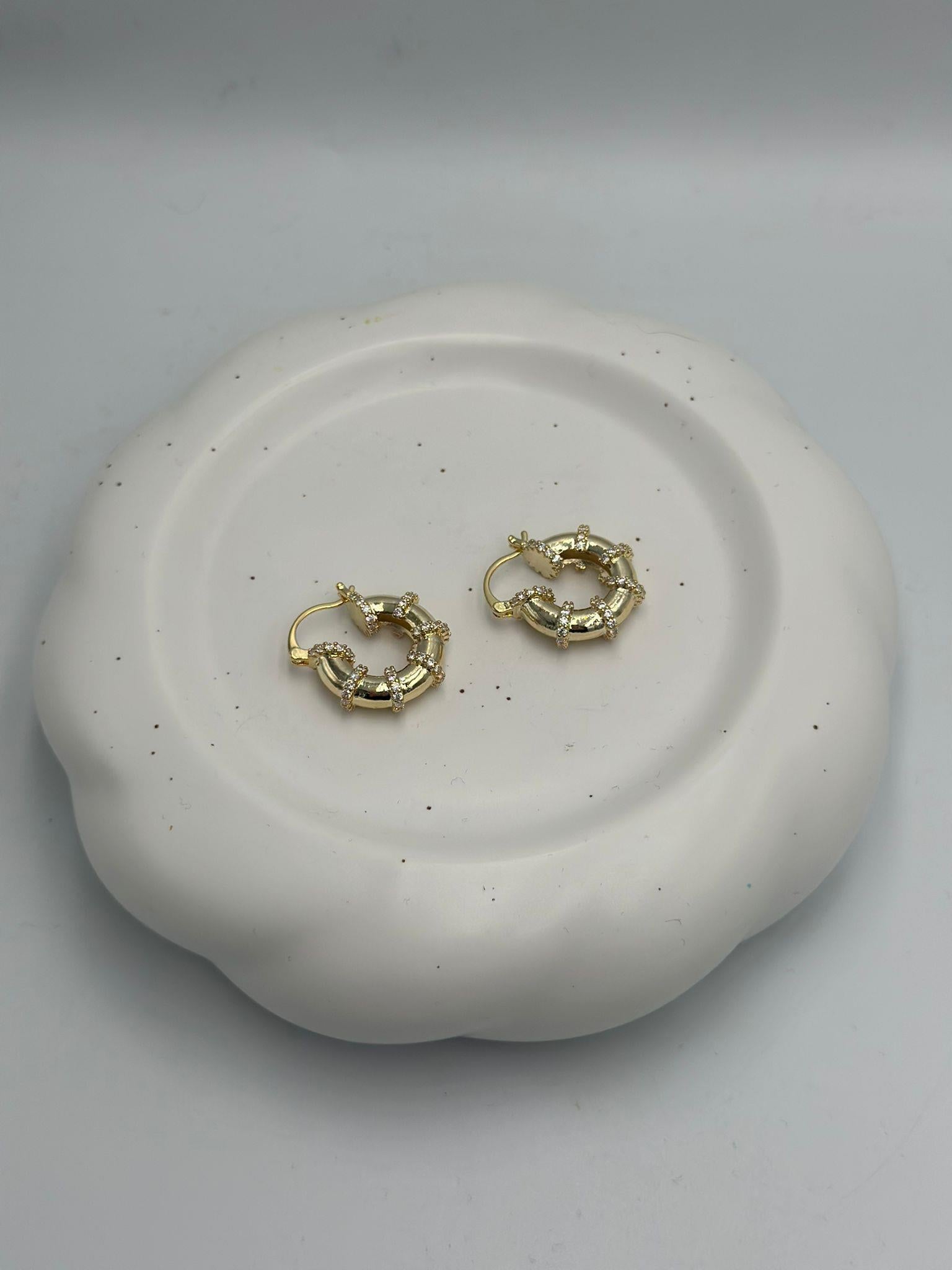 Zirkon Taş Detay Bombeli Halka Küpe (Çelik)