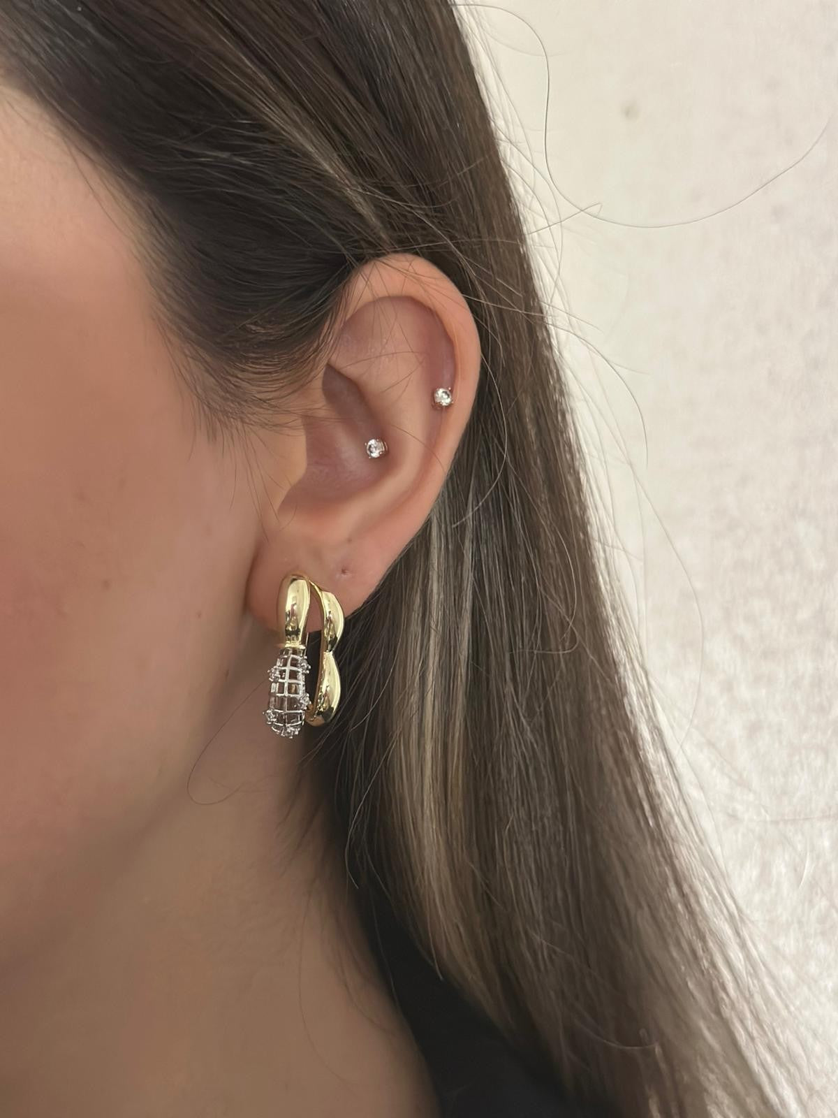 Zirkon Taş Detay Kalp Halka Küpe (Çelik)