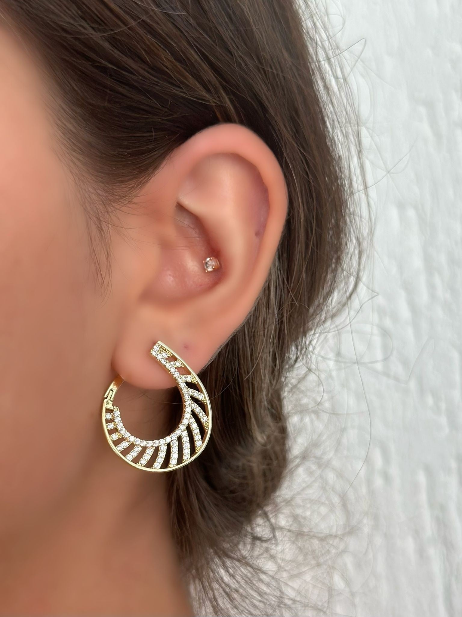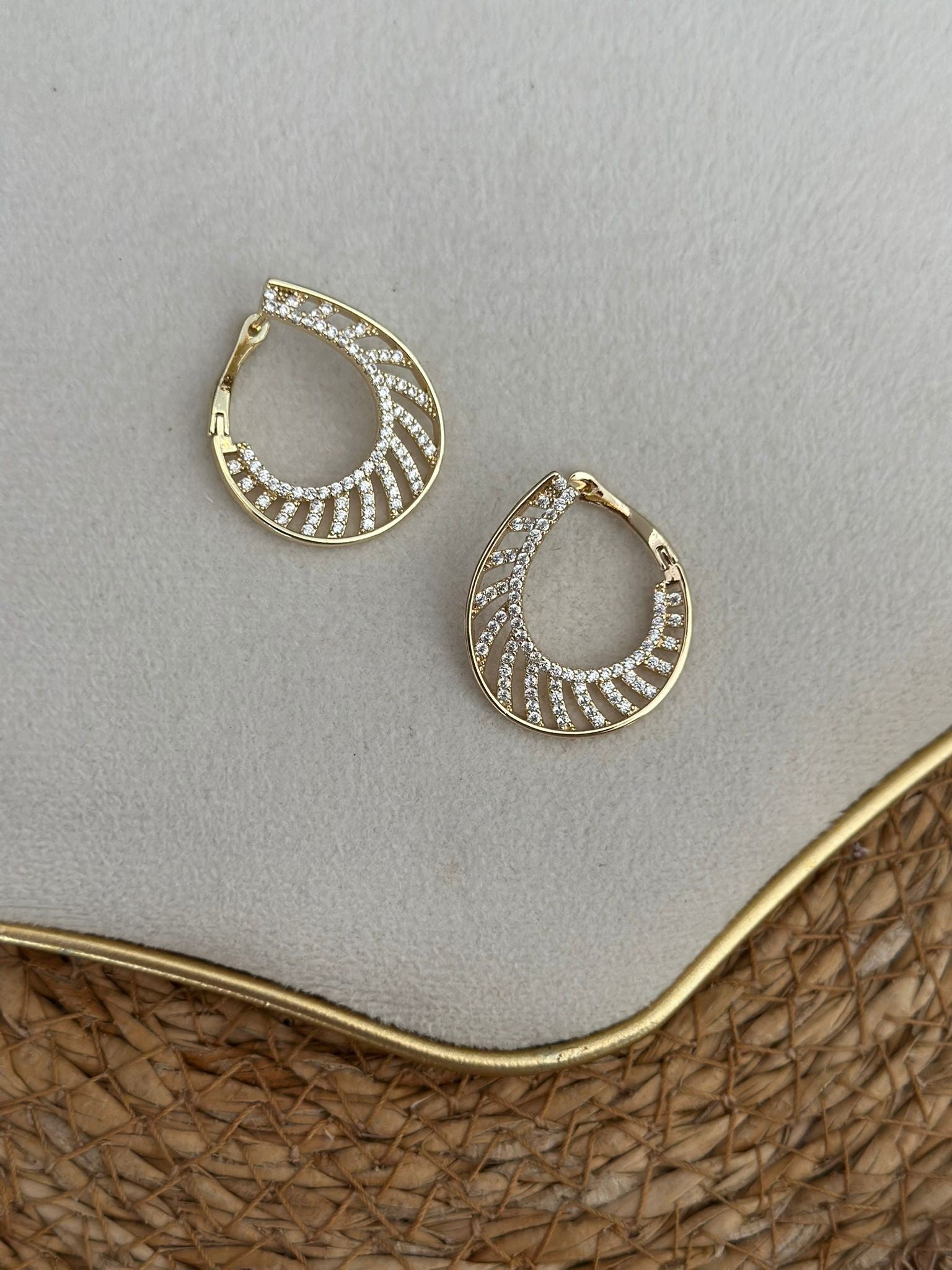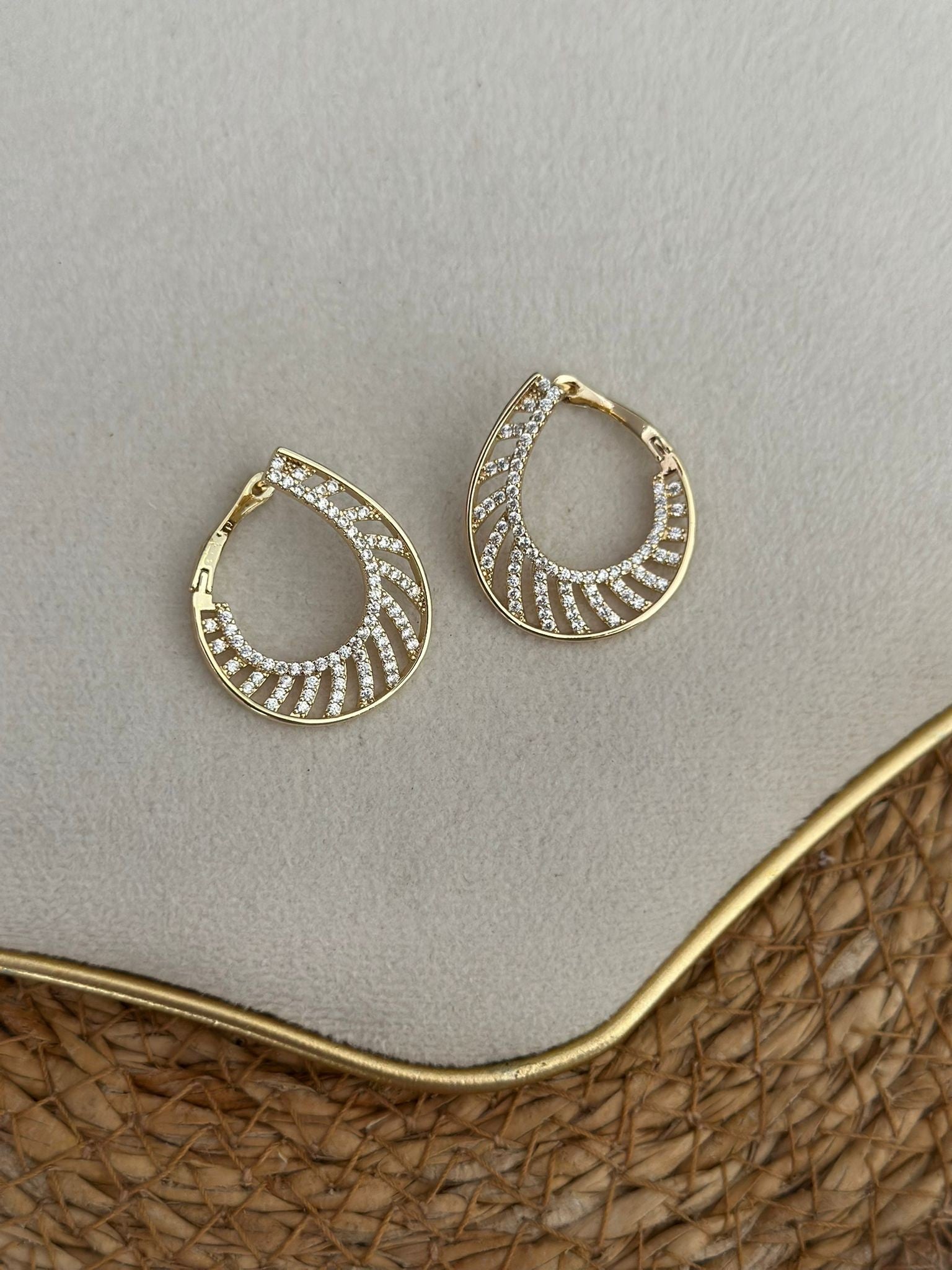 Zirkon Taş Detaylı Damla Halka Küpe (Premium)