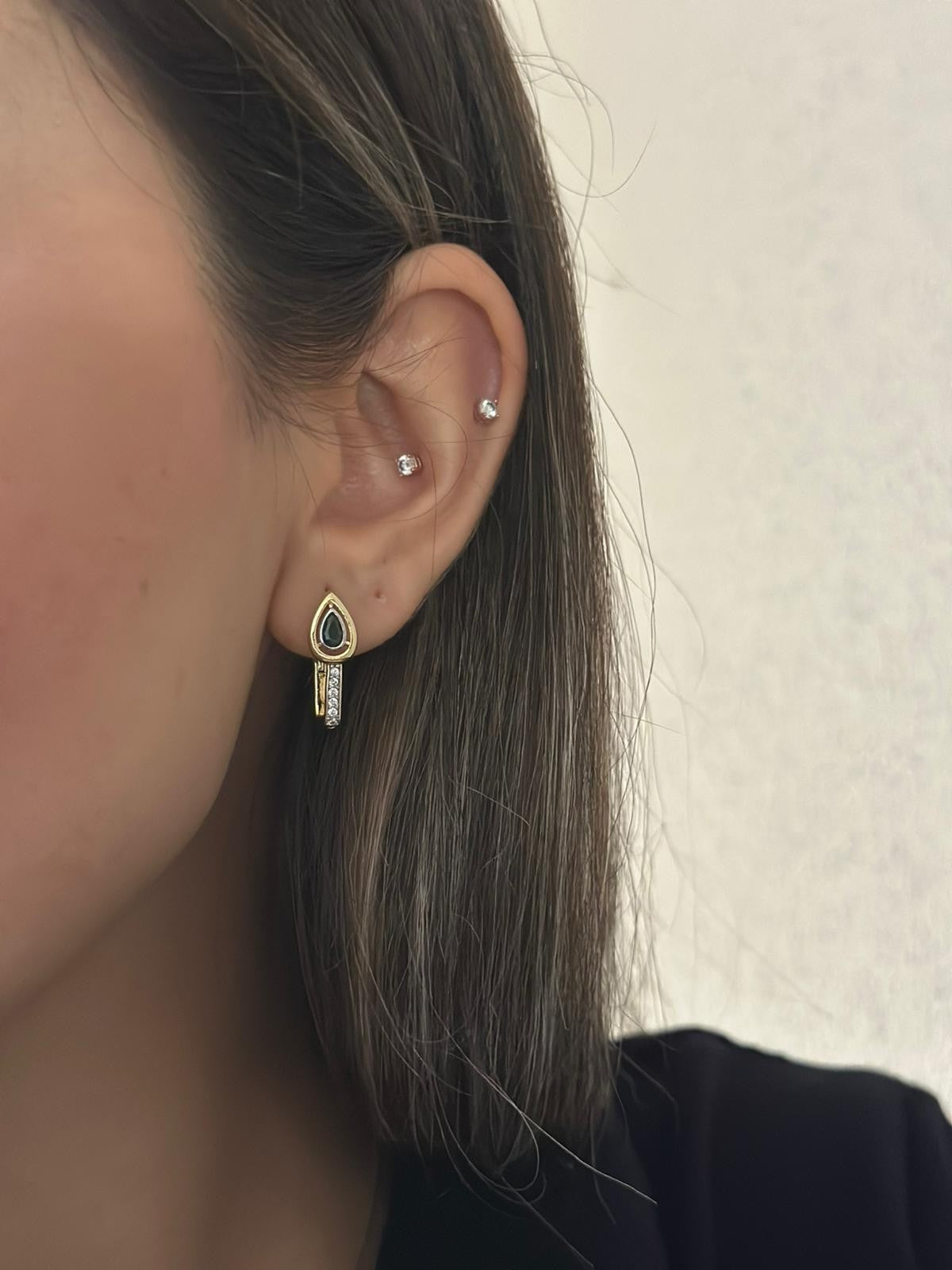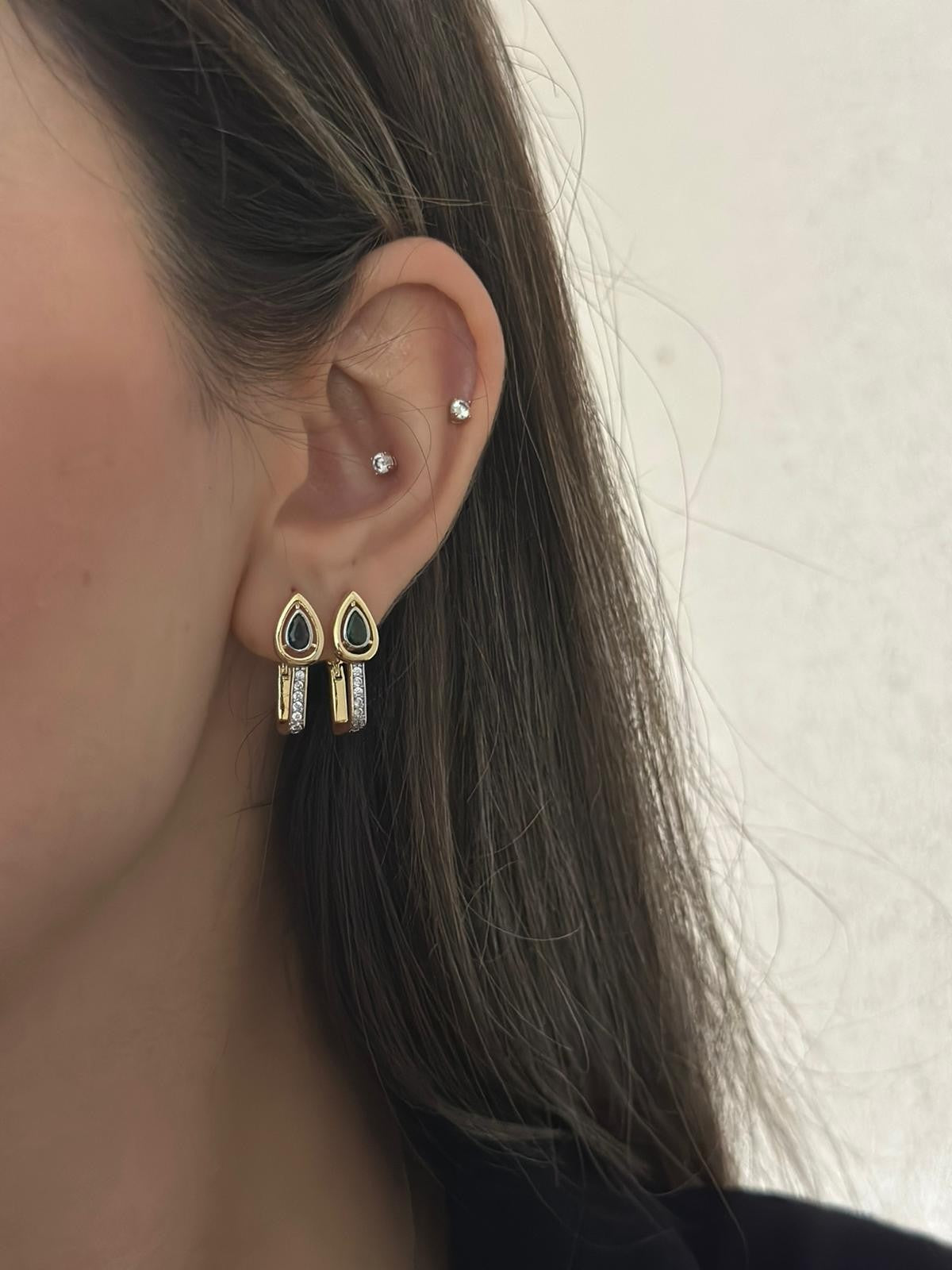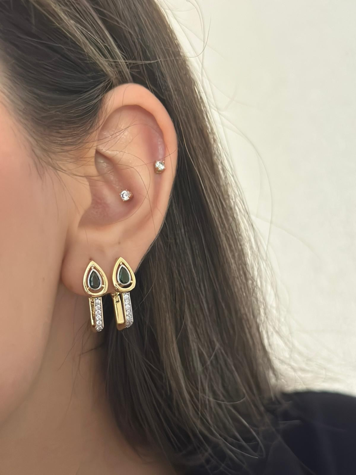 Zirkon Taş Detaylı Halka Premium Damla Küpe