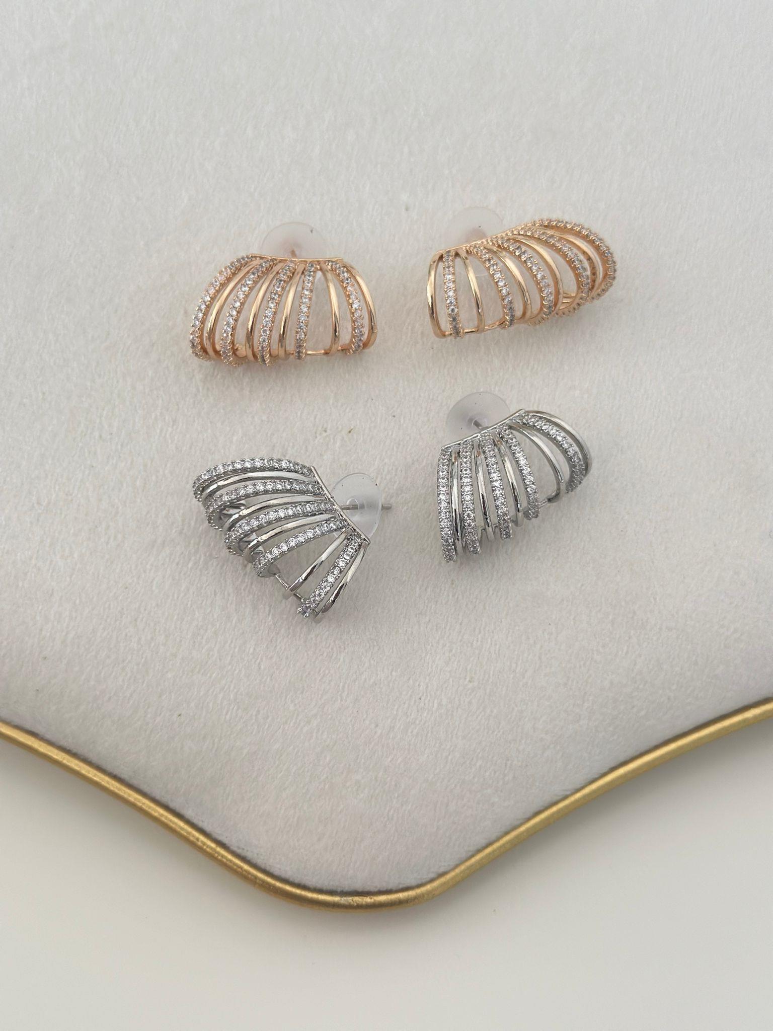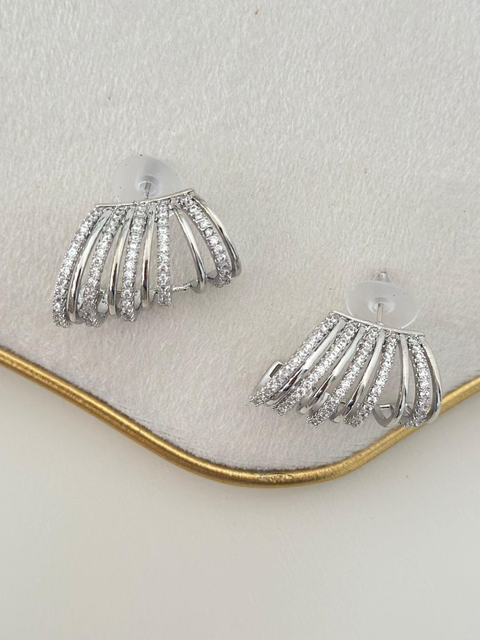 Zirkon Taş Detaylı Sıralı Görünüm Halka Küpe (Pirinç)
