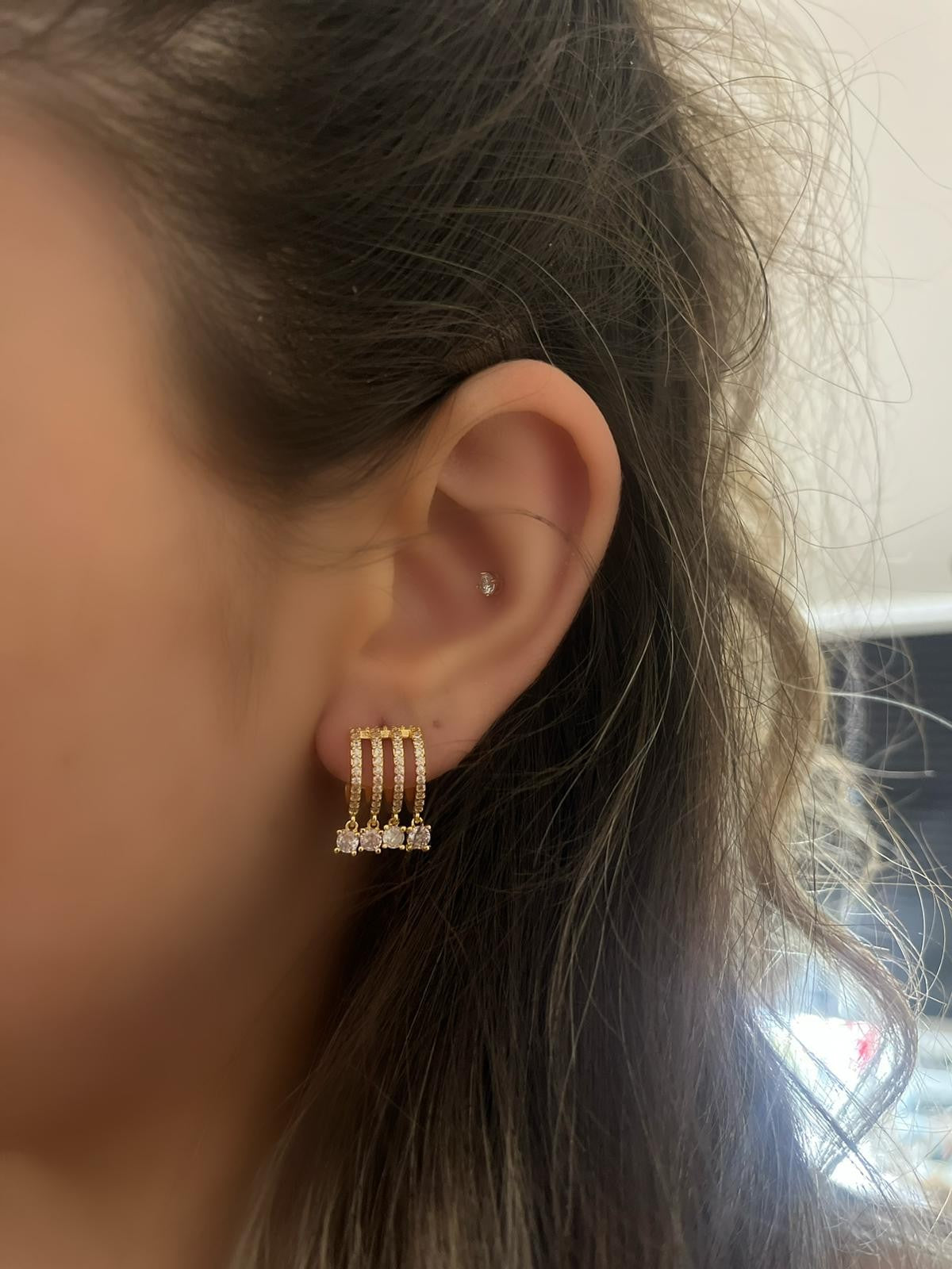 Zirkon Taş Sallantı Detay Halka Küpe