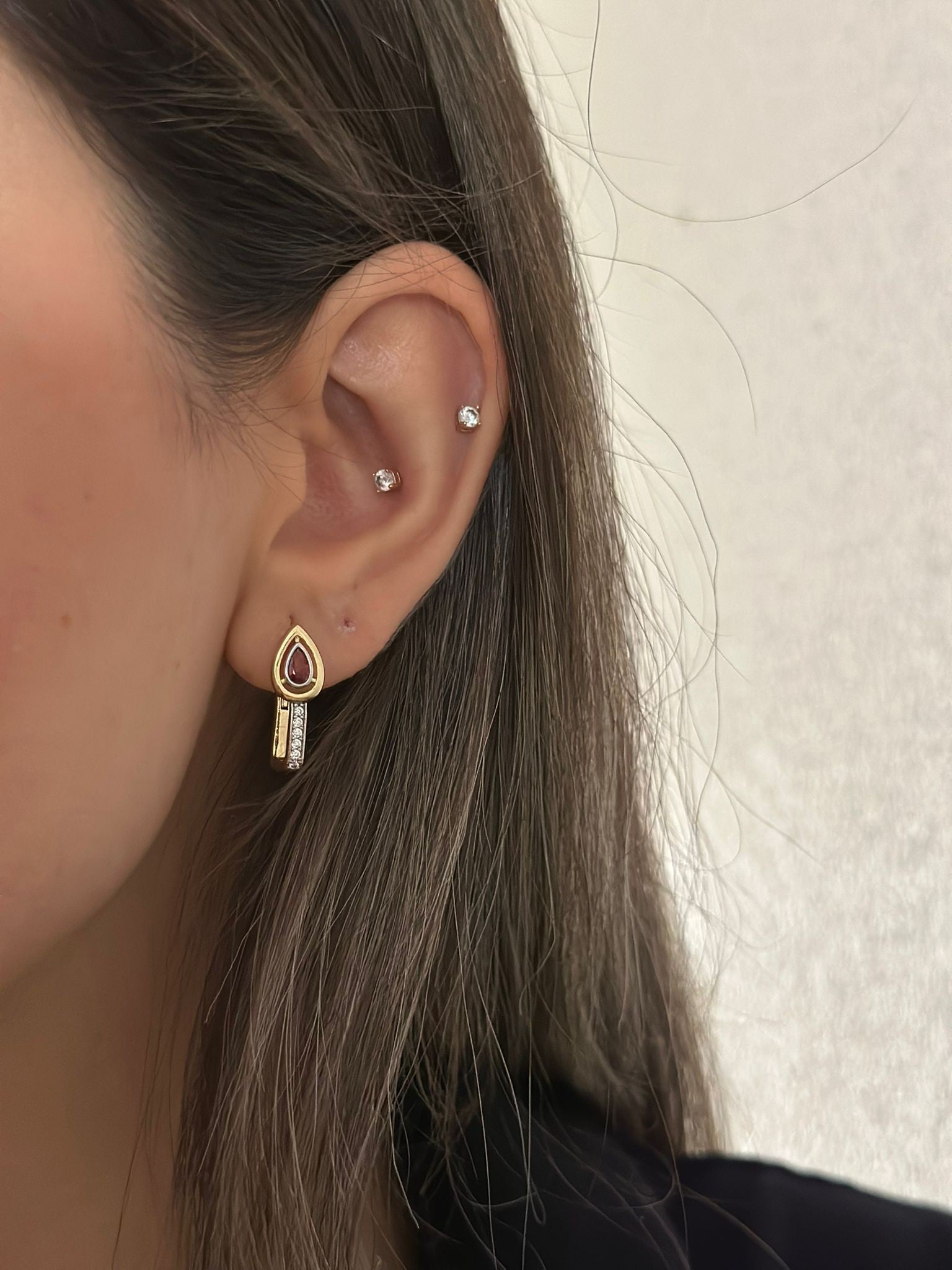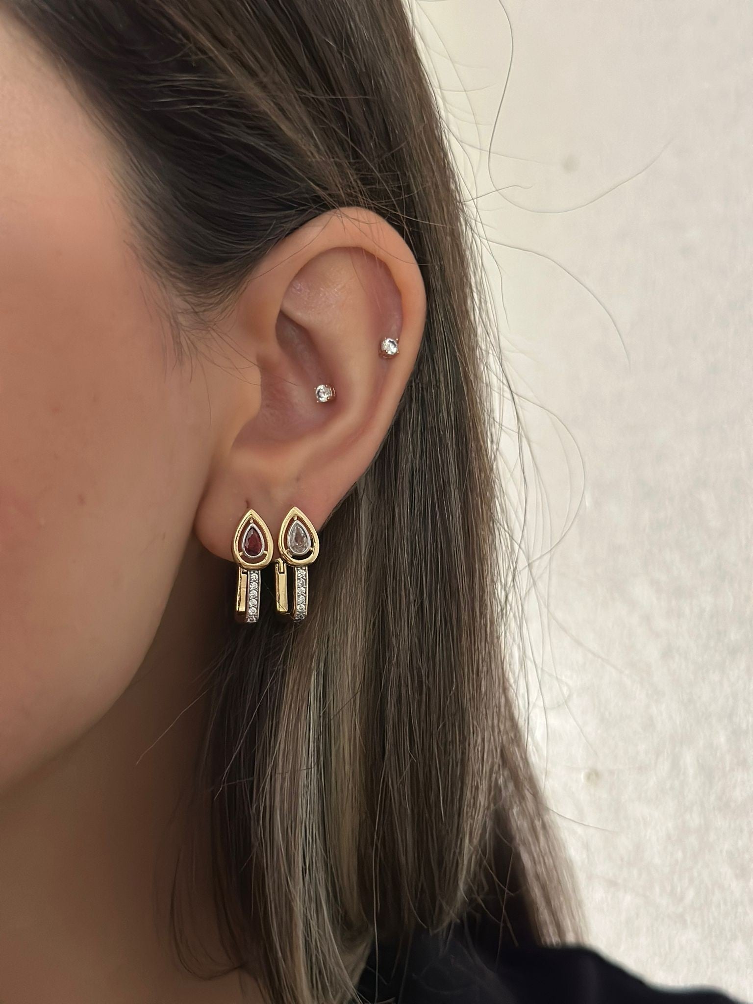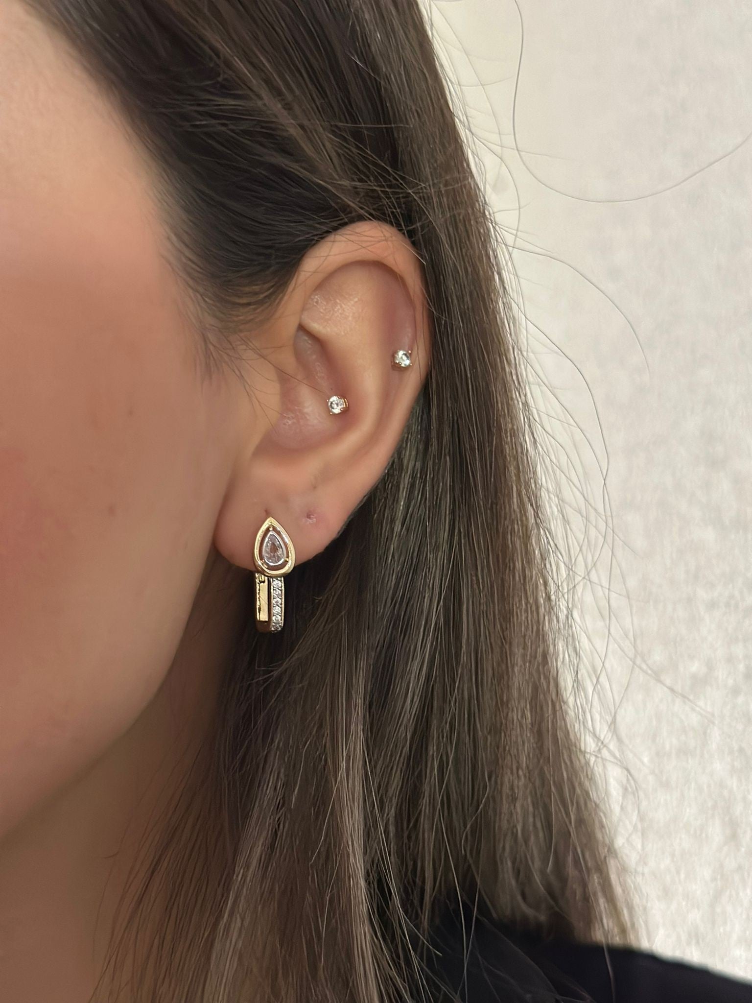 Zirkon Taş Ve Damla Detay Halka Küpe (Çelik)