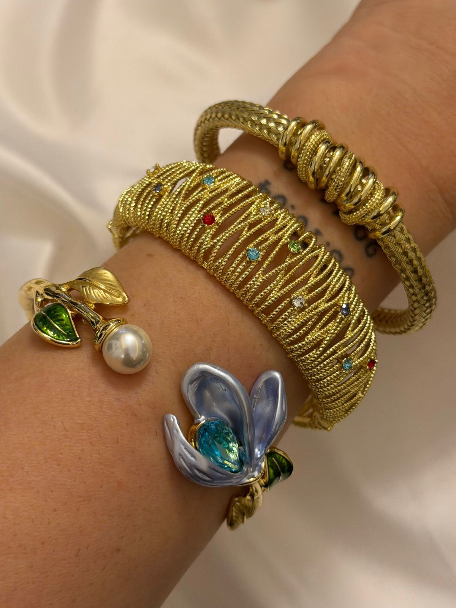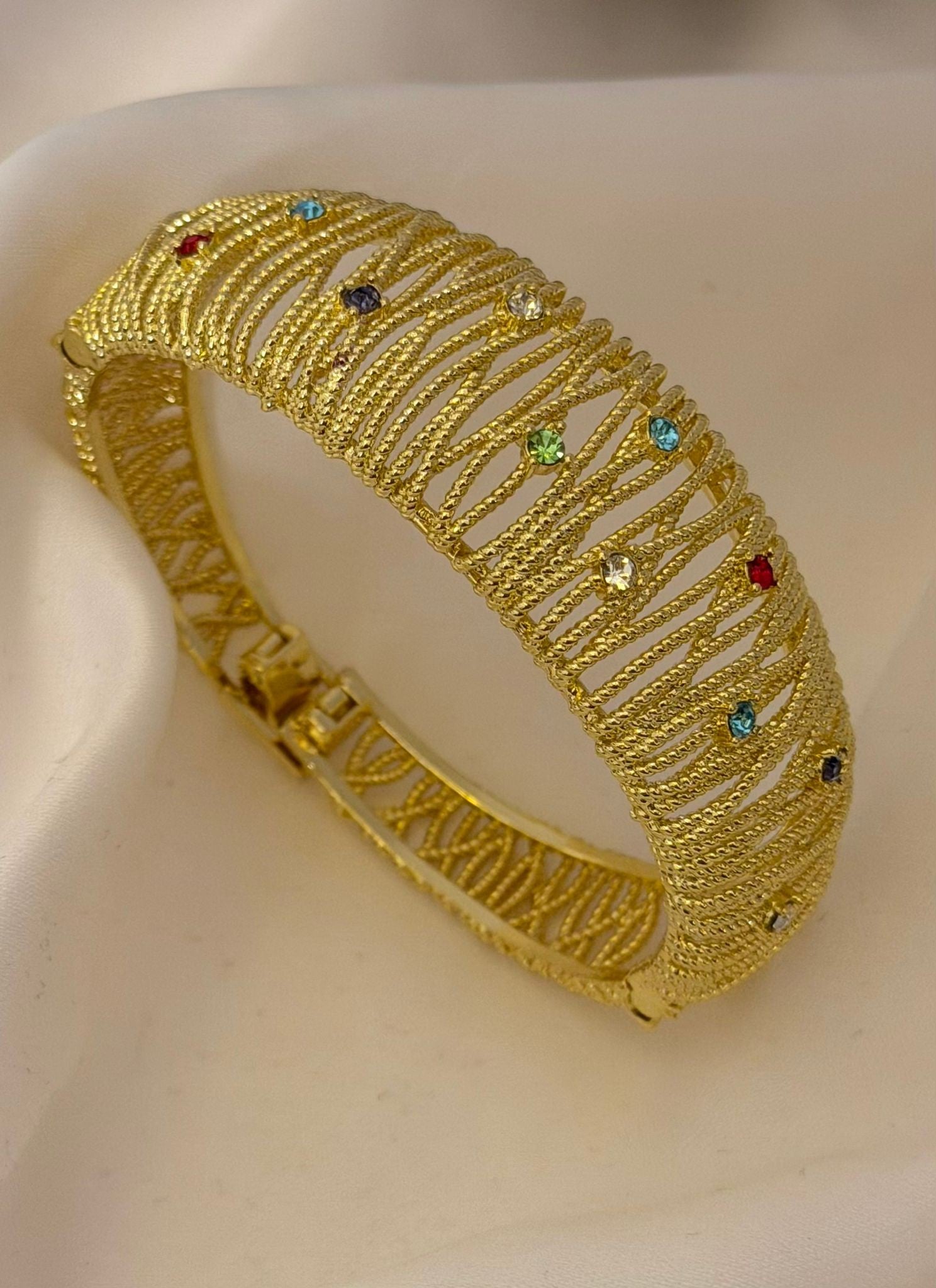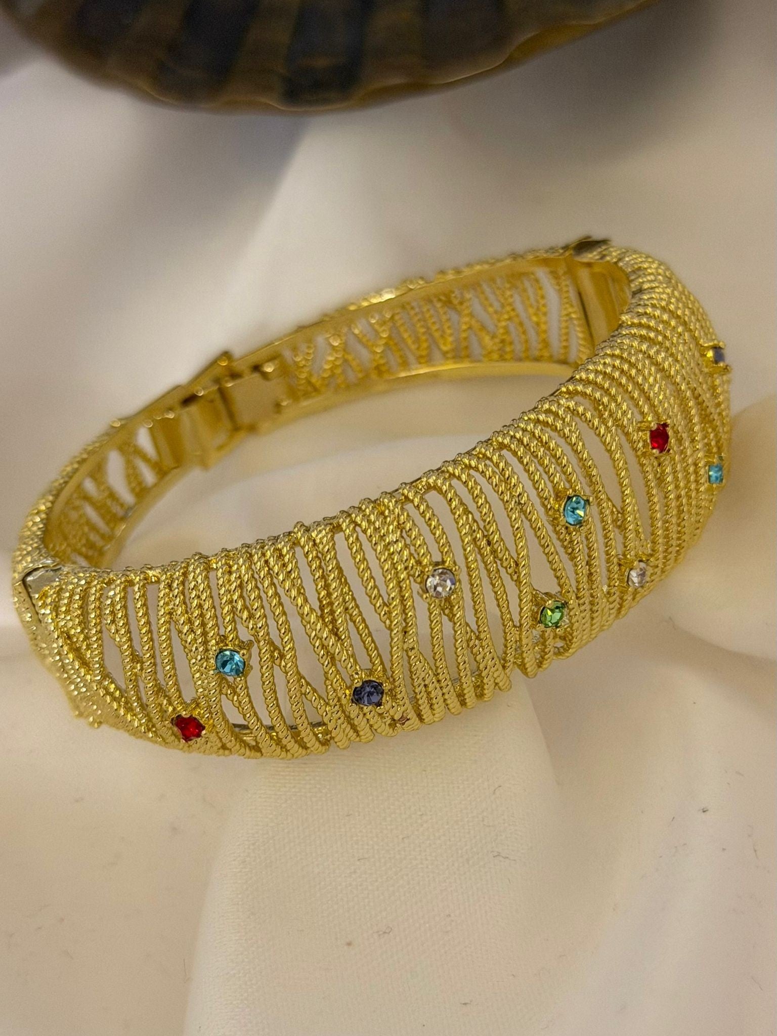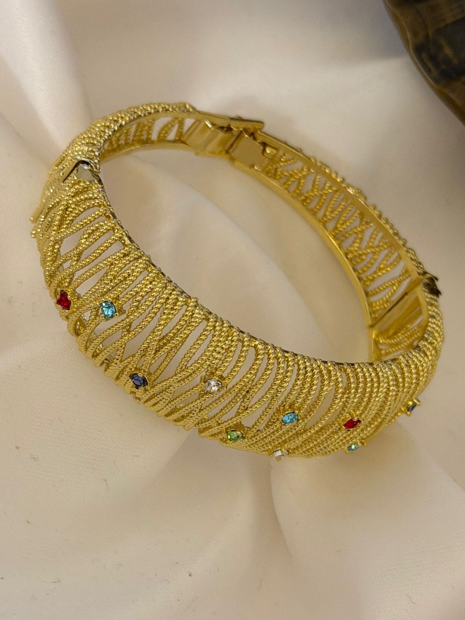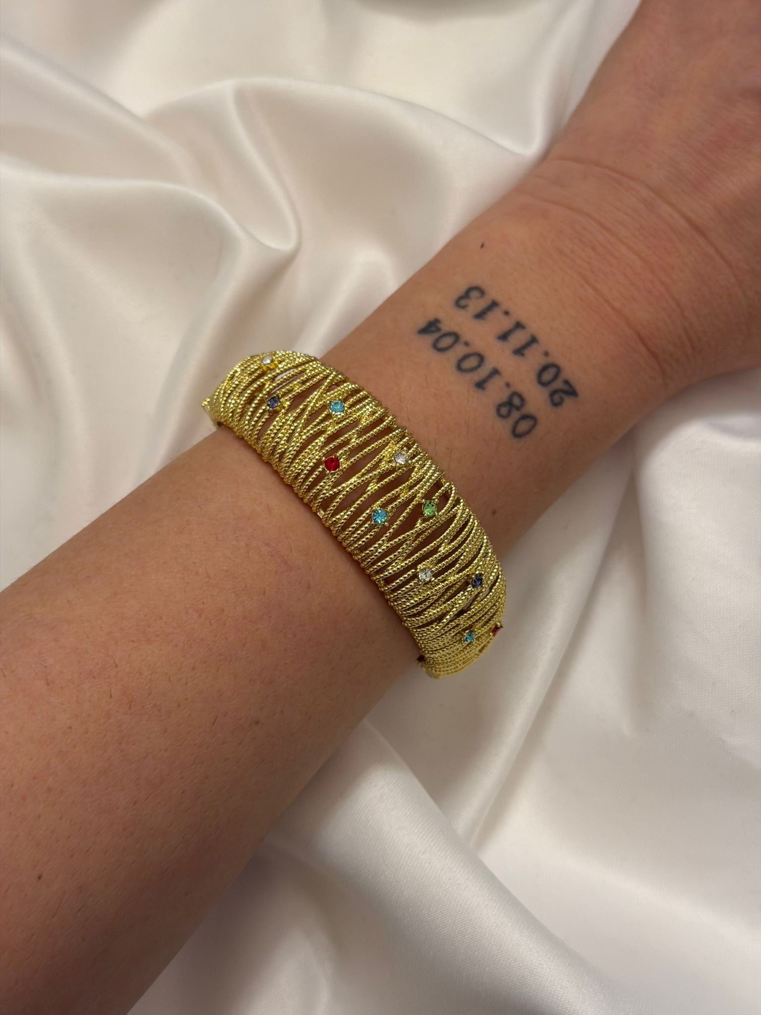 14K Altın Kaplama Renkli Tek Taş Detay Kelepçe