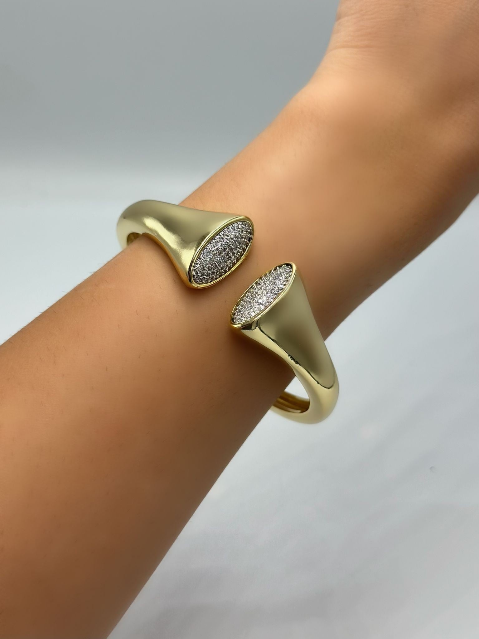 14K Altın Kaplama ve Zirkon Taş Detaylı Tsarım Gold Kelepçe Bileklik