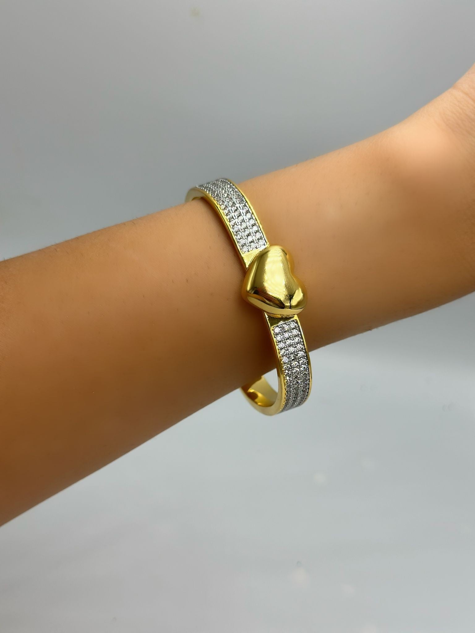 Çift Renk Kalp Detaylı Çelik Kelepçe