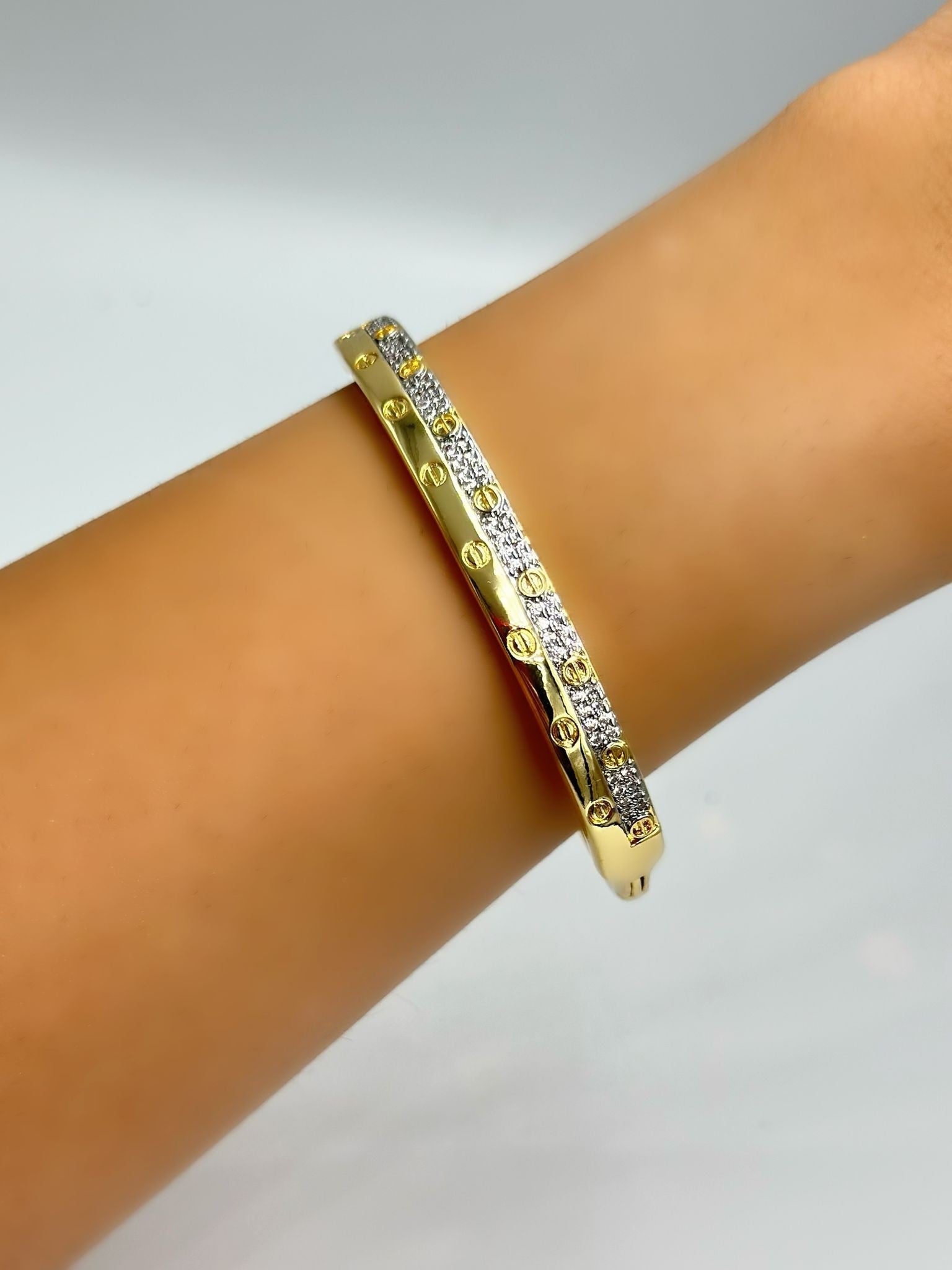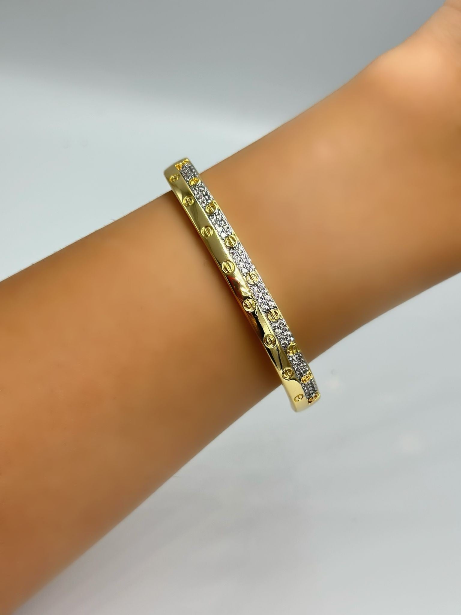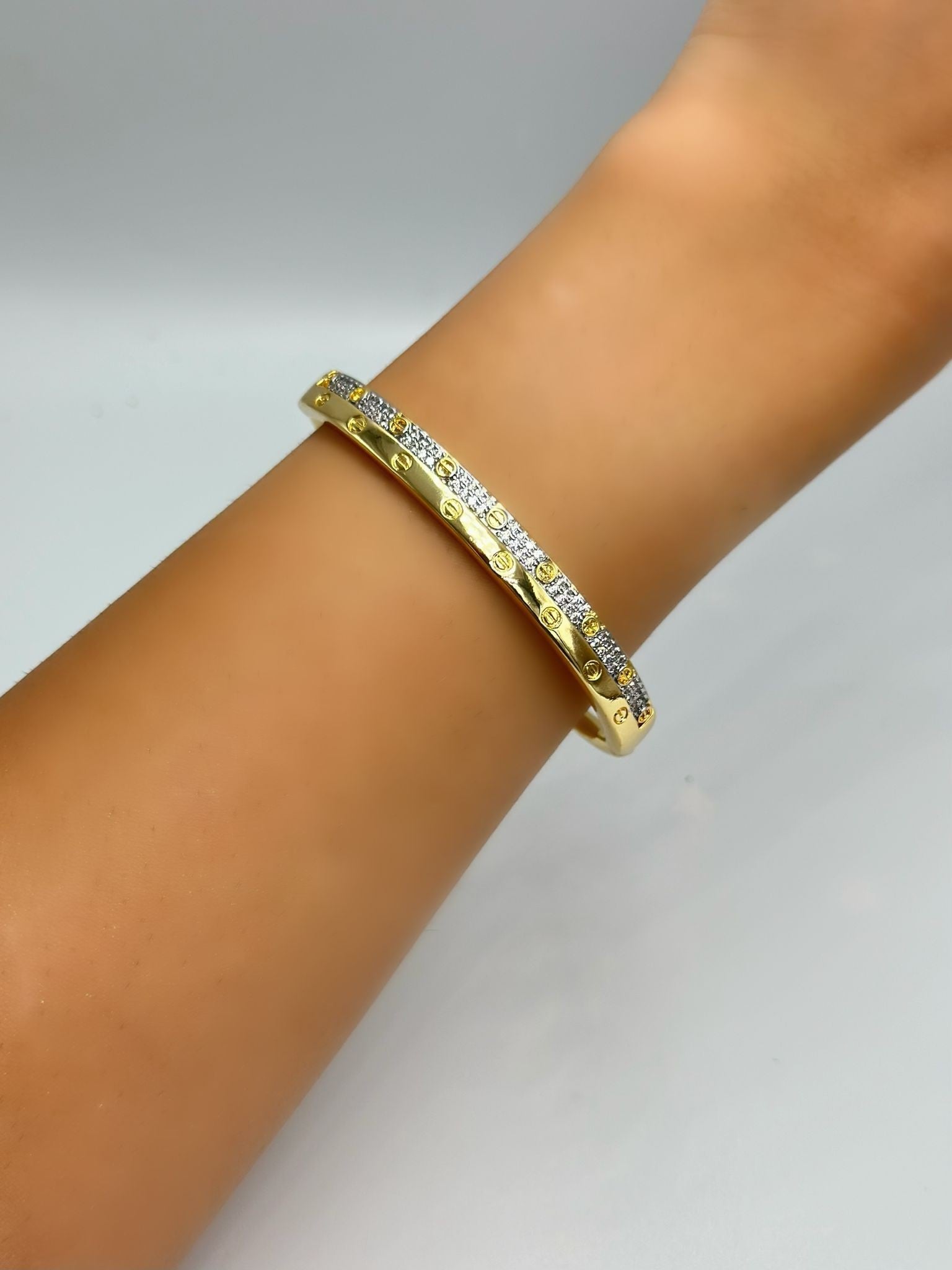 Çift Renk Zirkon Taş 2 Sıra Kelepçe (Çelik)