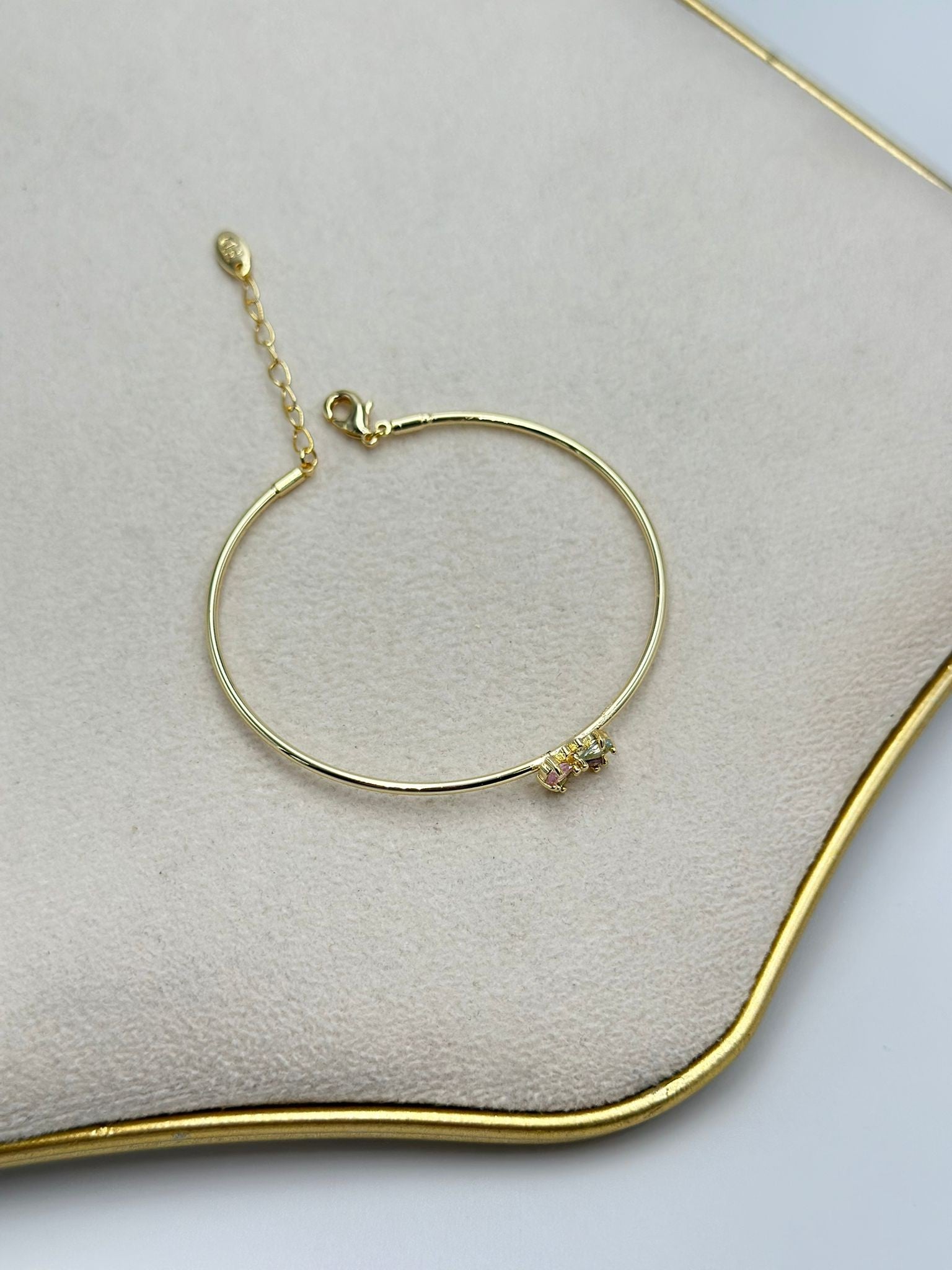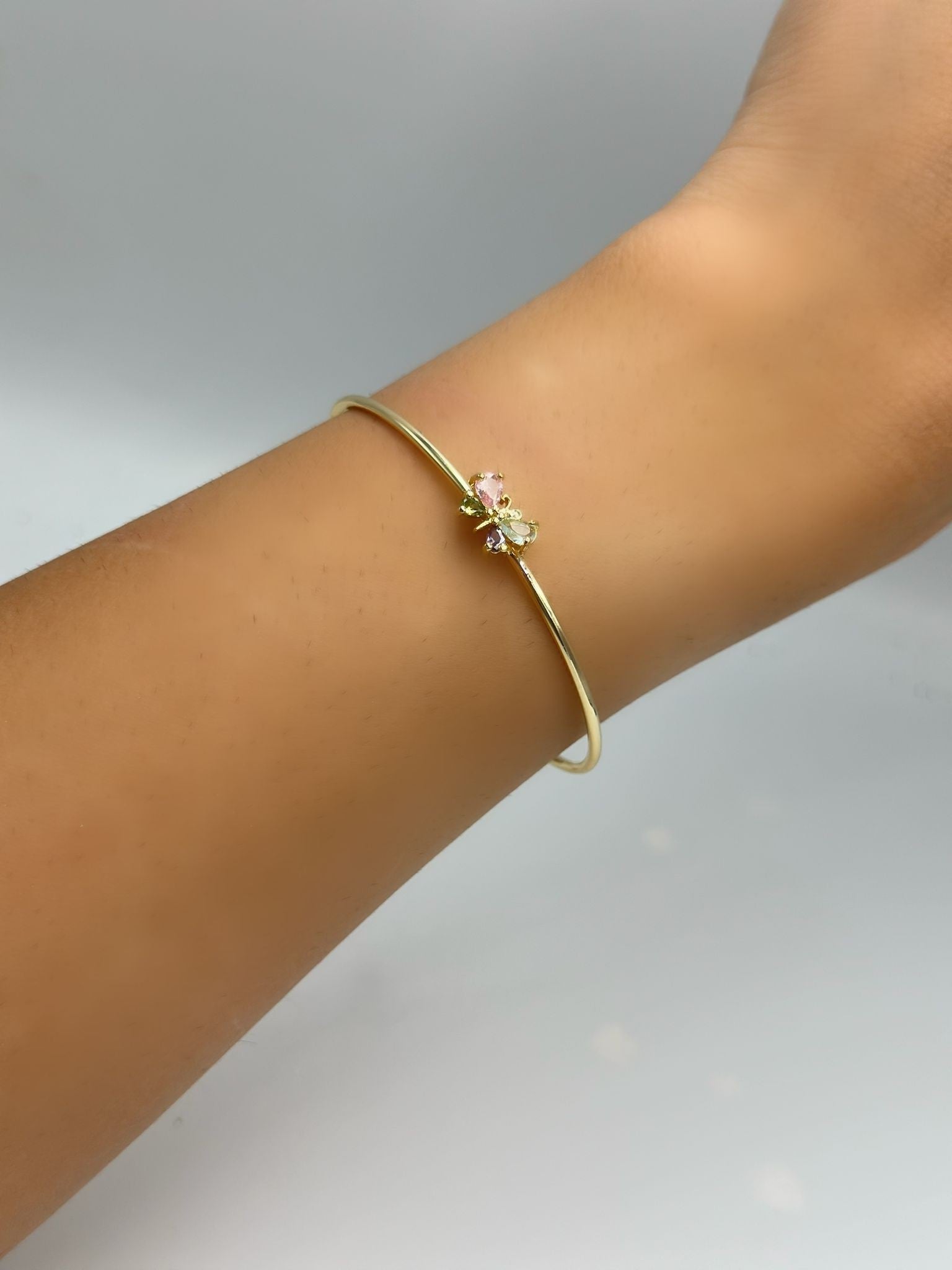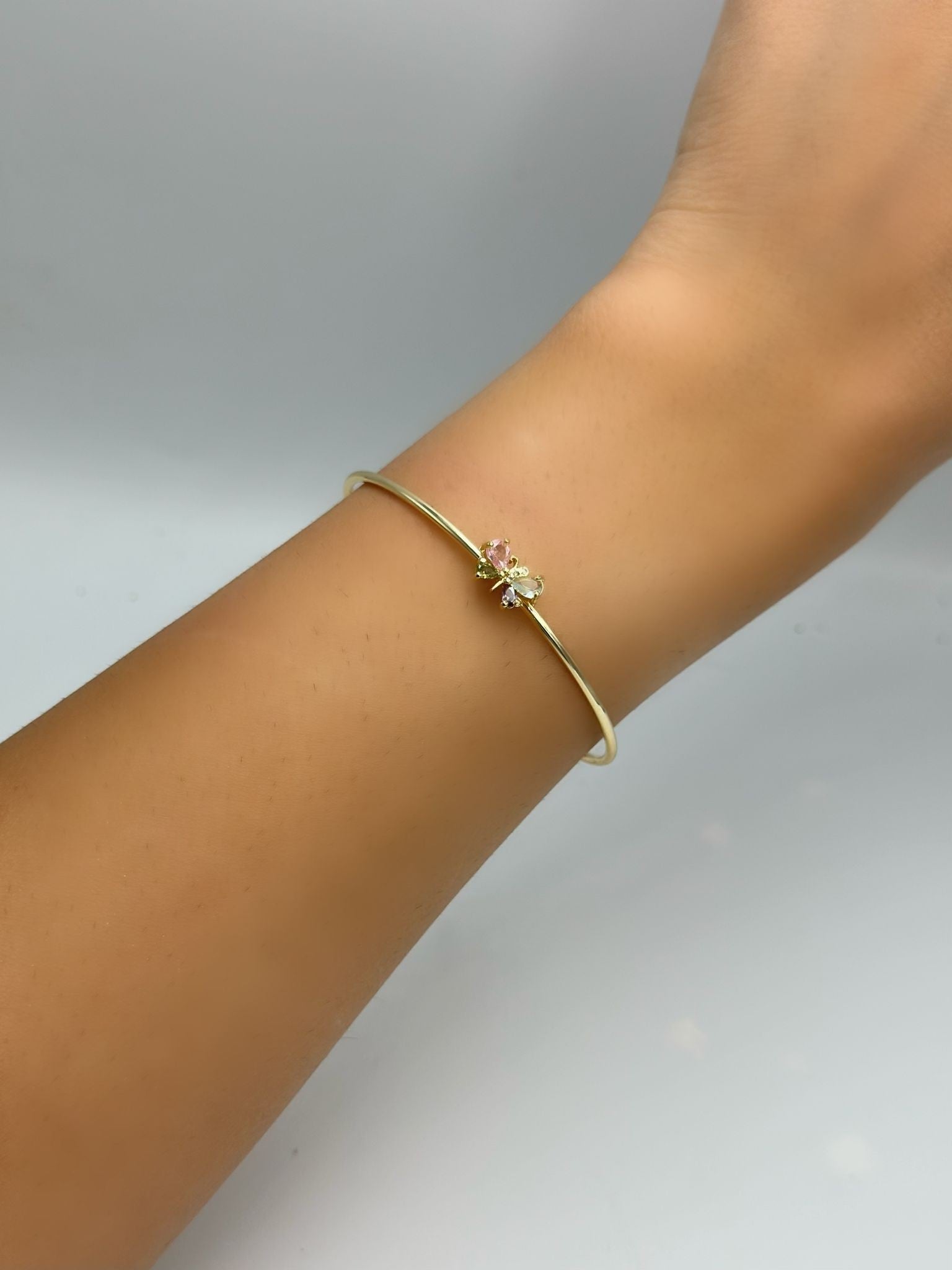 Pembe ve Natürel Baget Taş Detaylı Yusufçuk Figürlü Çelik Gold Kelepçe Bileklik (Ayarlamalı;)