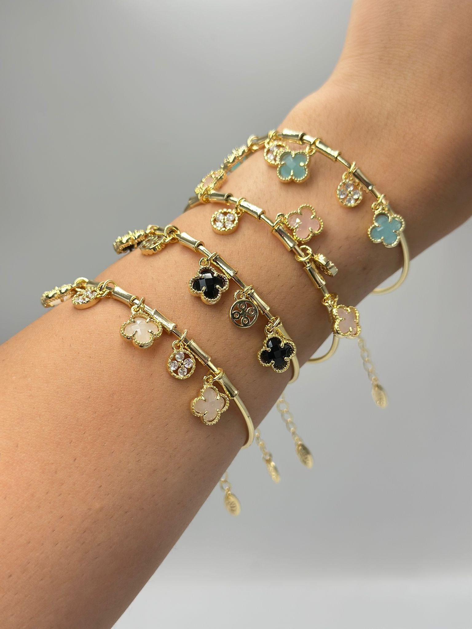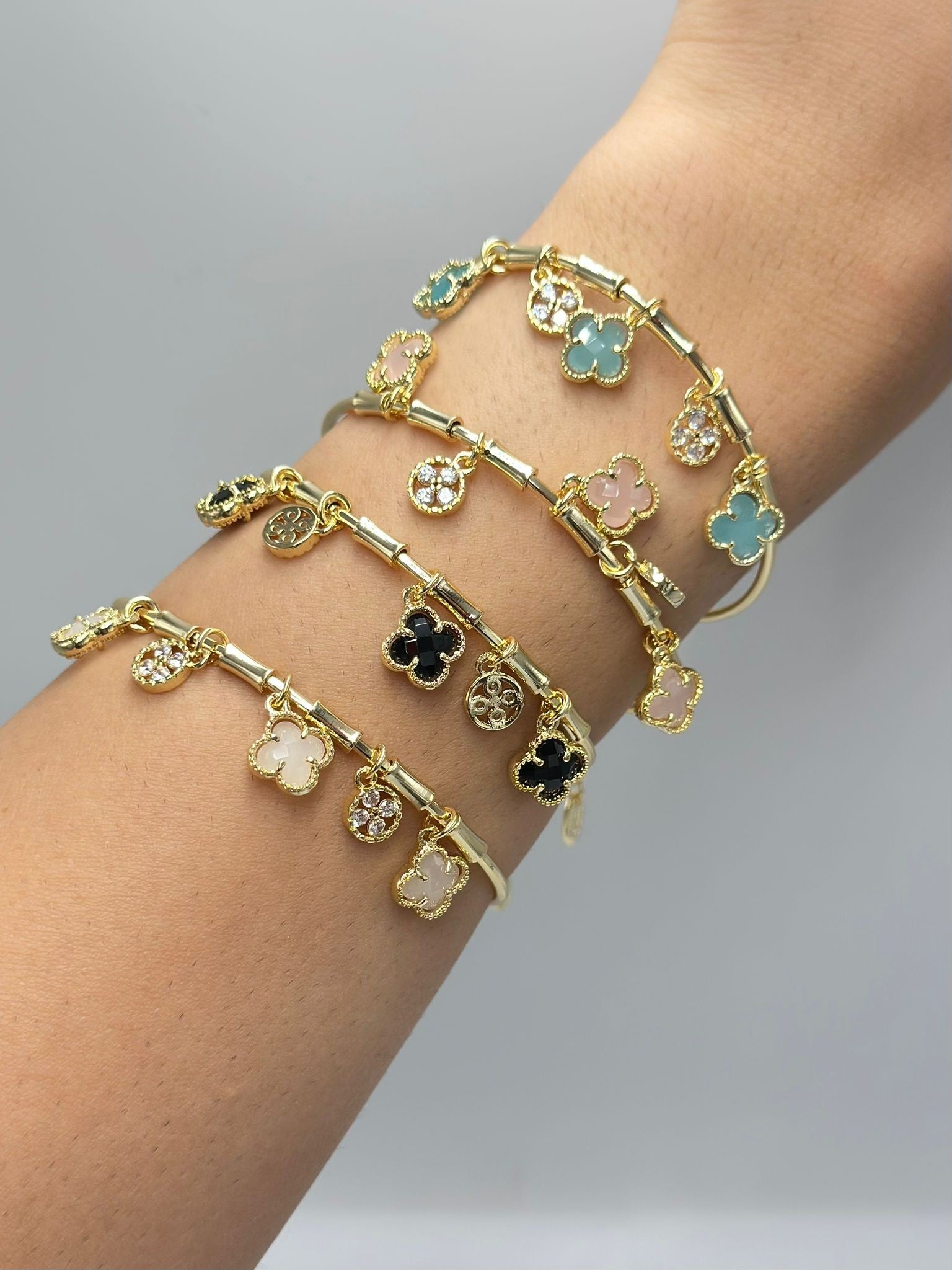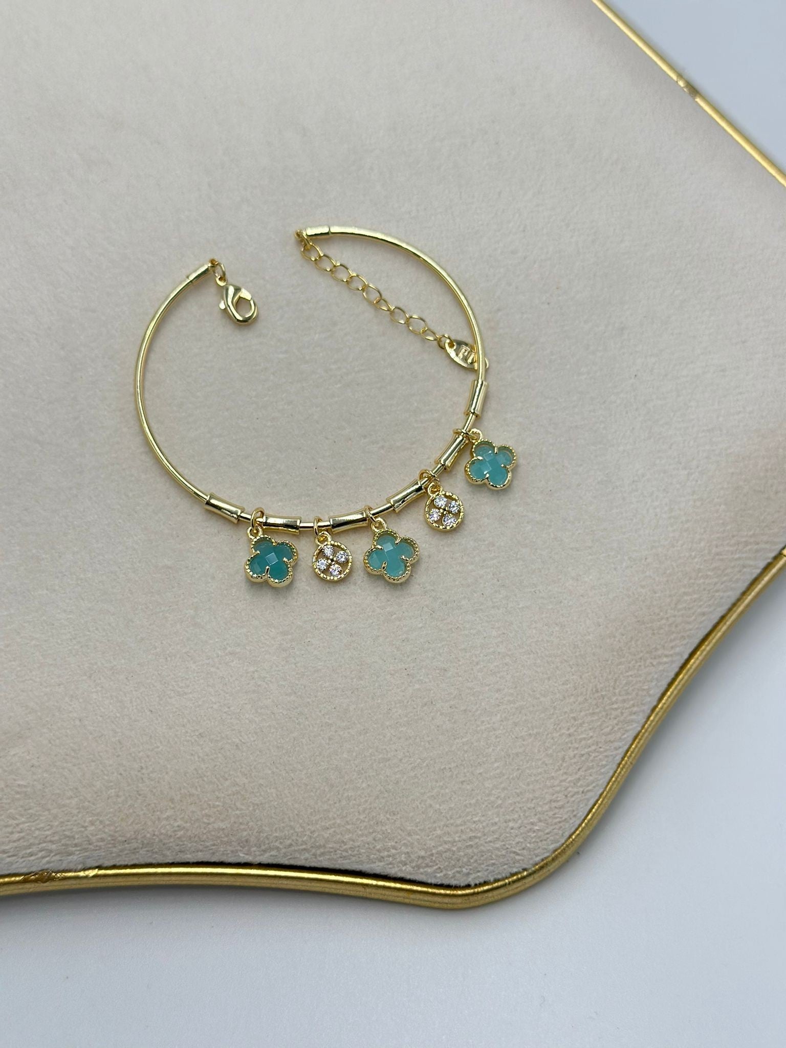 Yonca Charm Detaylı Renkli Kelepçe (Çelik)