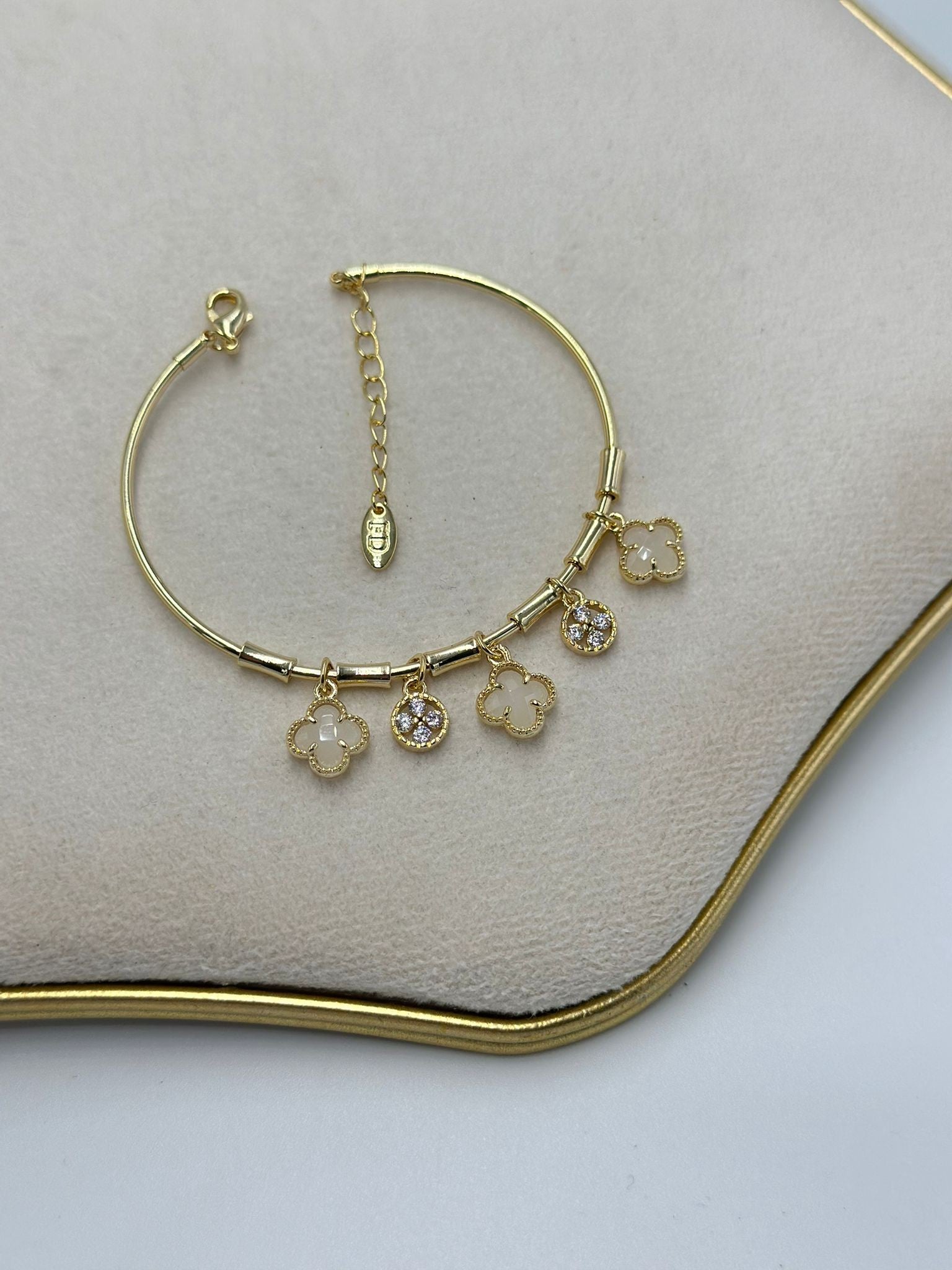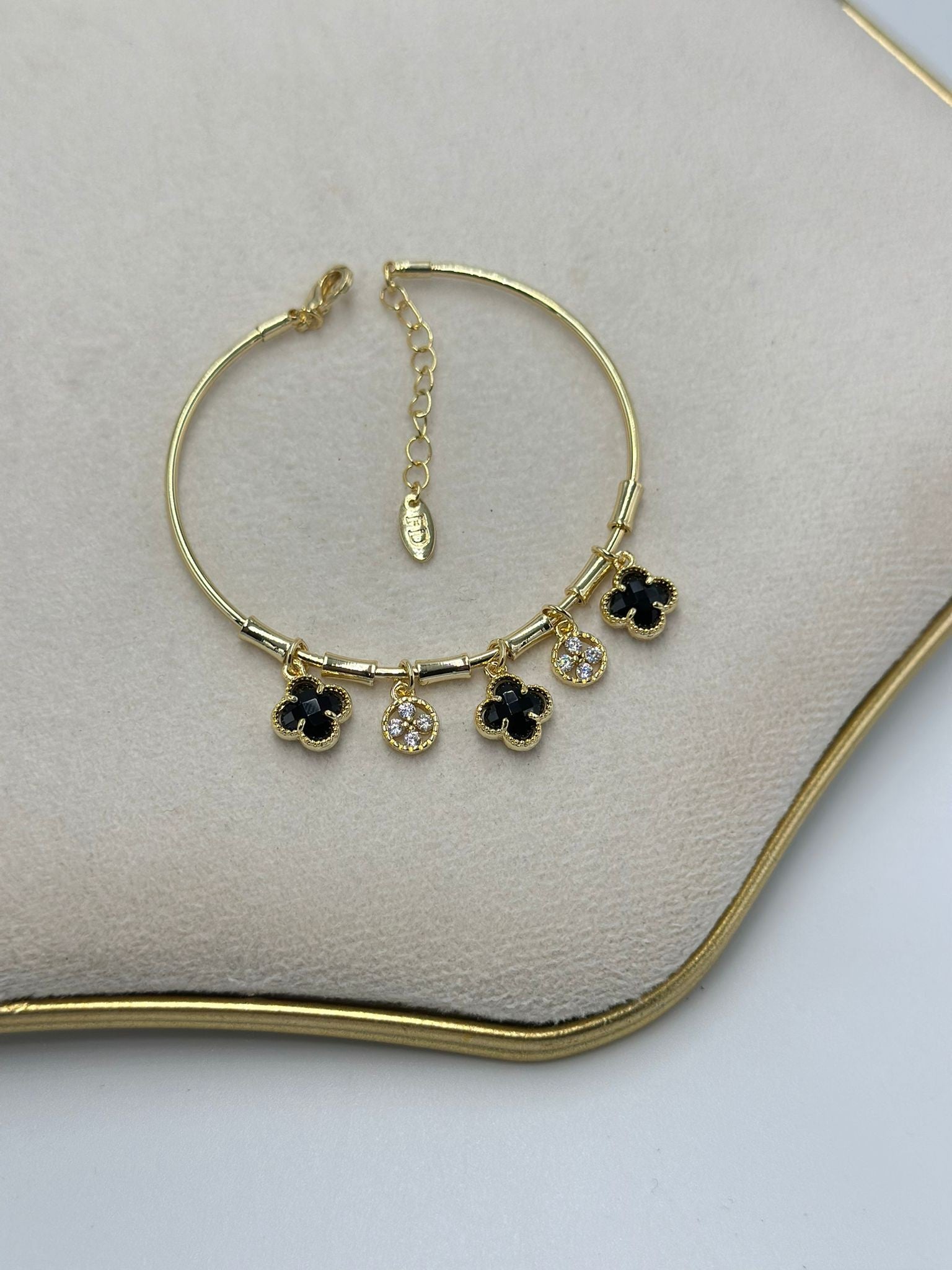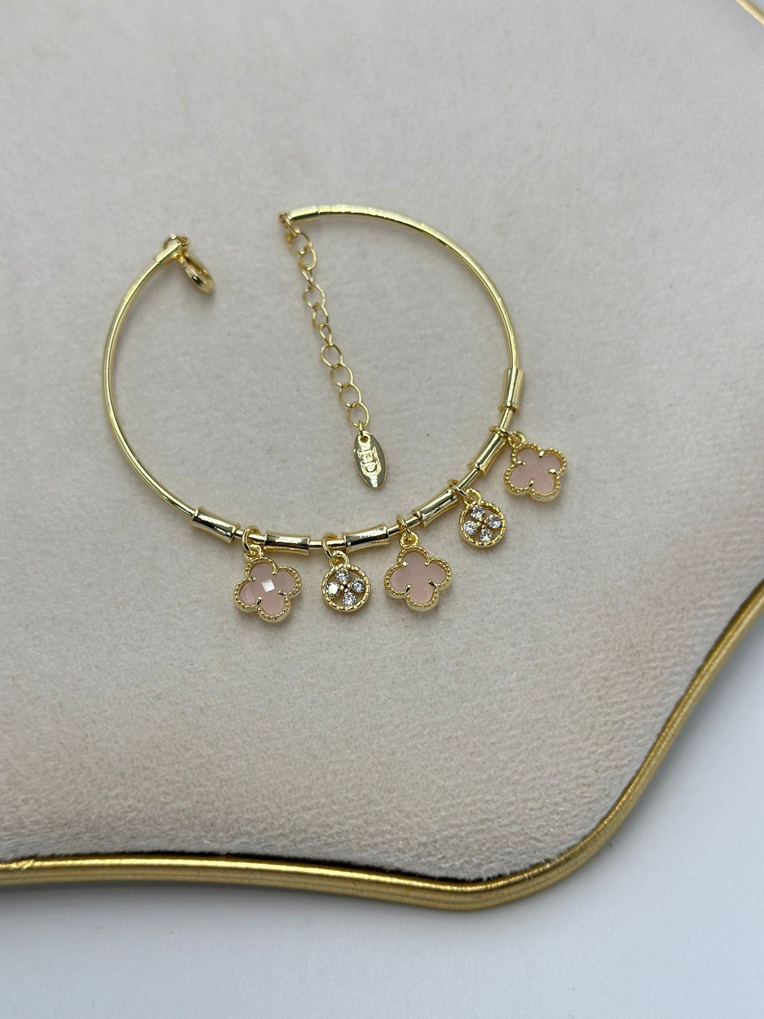 Yonca Charm Detaylı Renkli Kelepçe (Çelik)