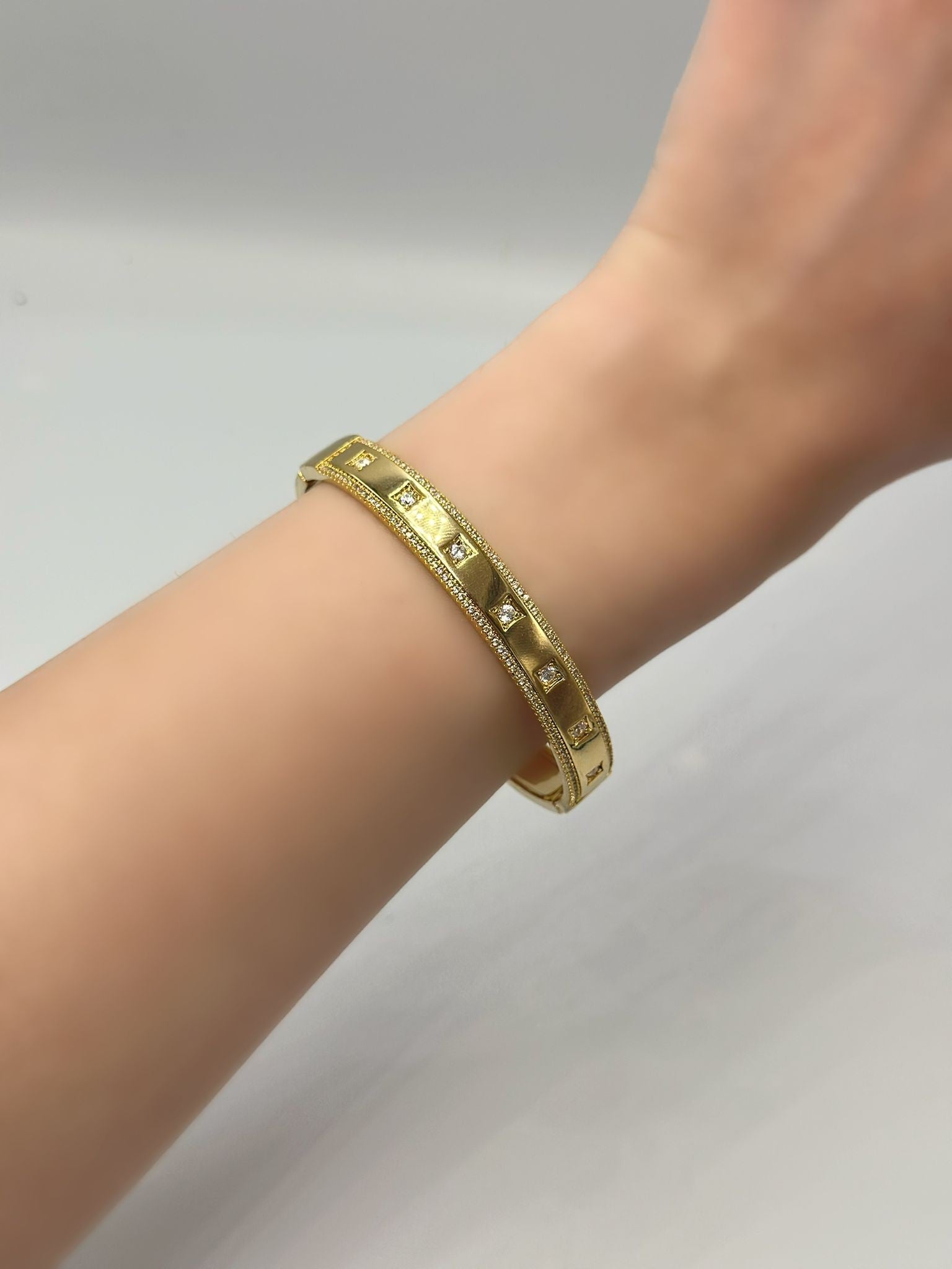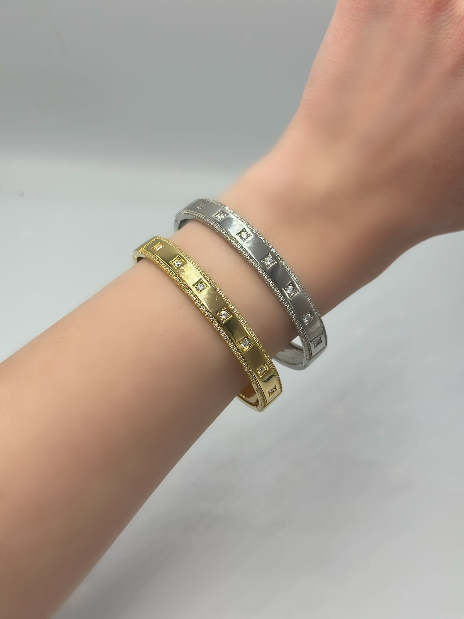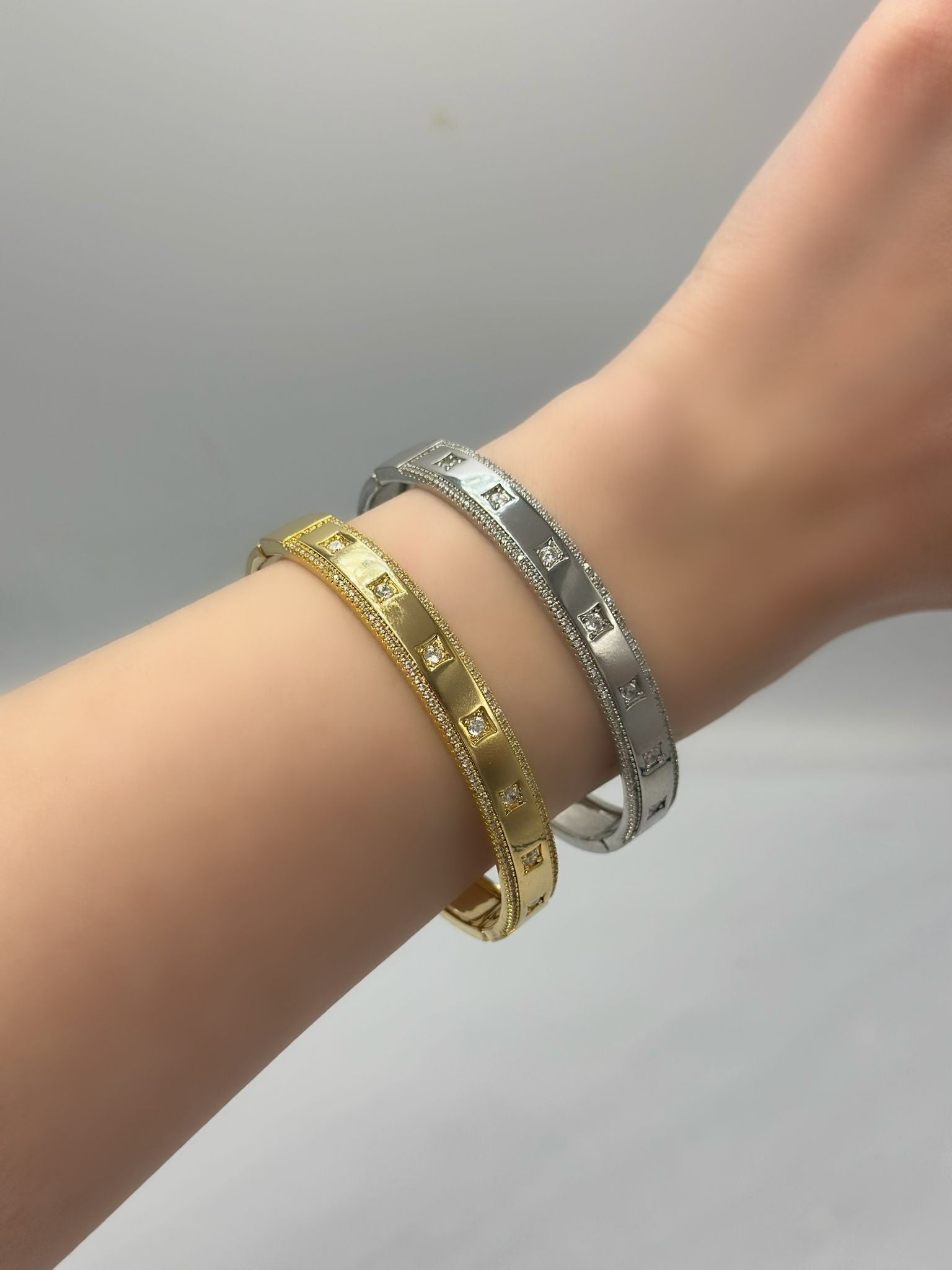 Zirkon Taş Detaylı Düz Kelepçe (Çelik)