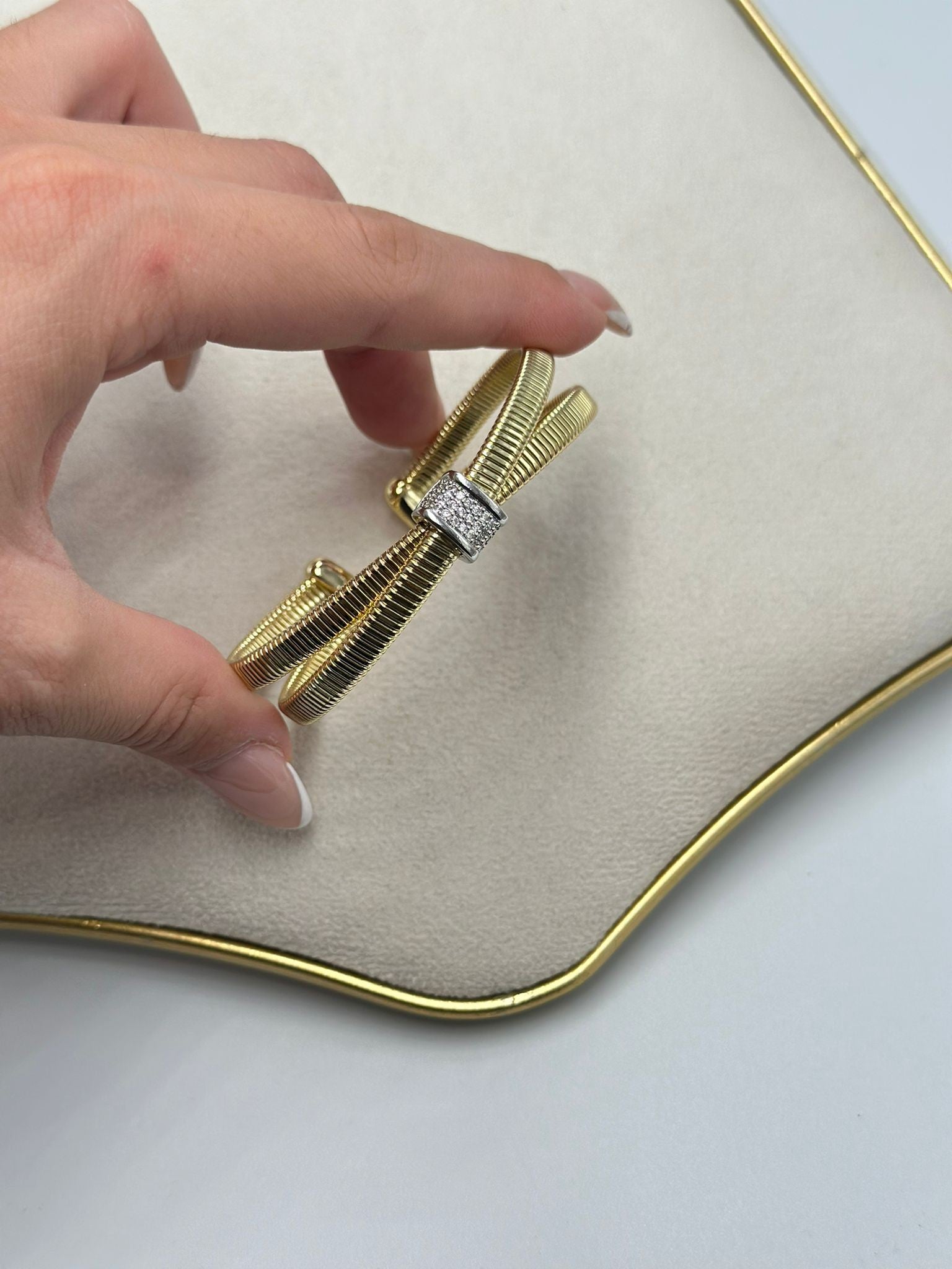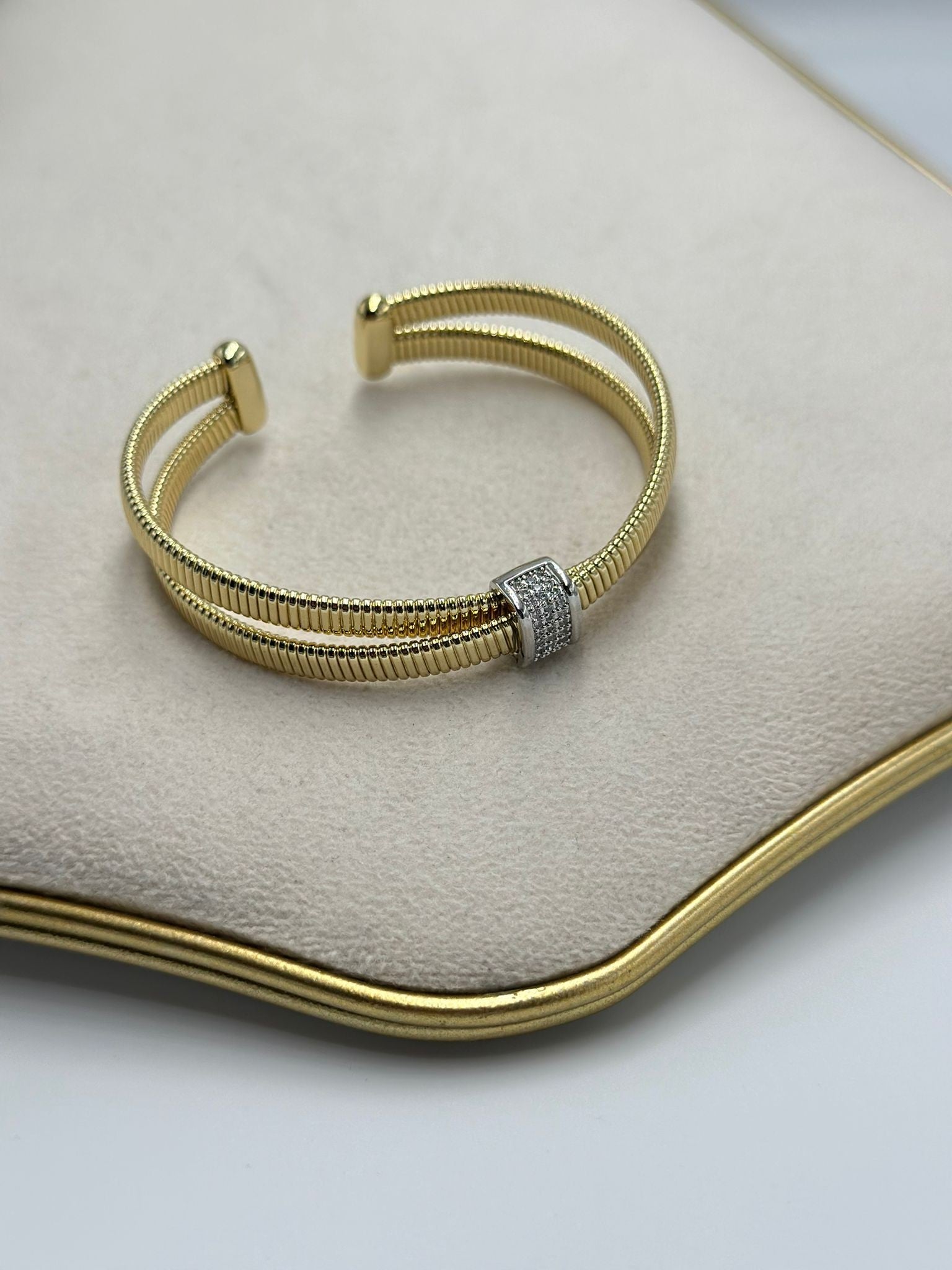 Zirkon Taş Detaylı İkili Gold Kelepçe Bileklik (Ayarlamalı Unisex)