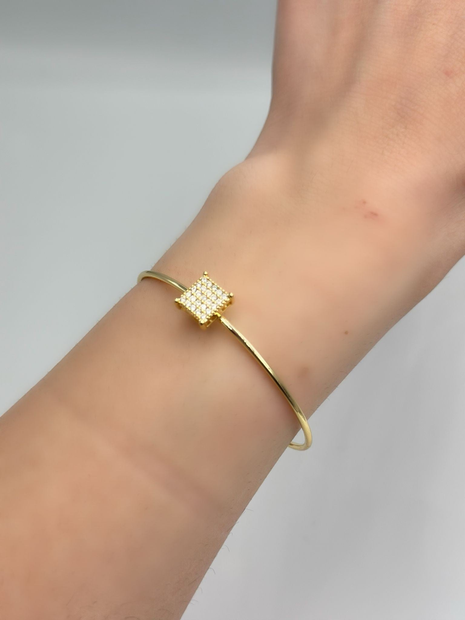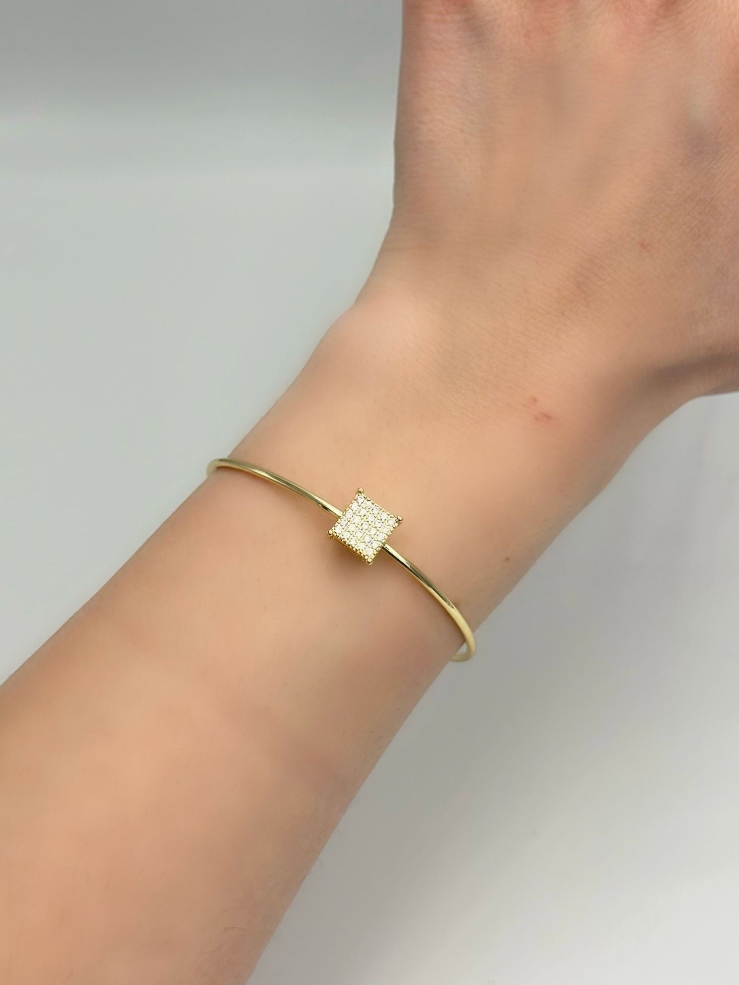 Zirkon Taş Detaylı Kare Kesim Kelepçe (Çelik)