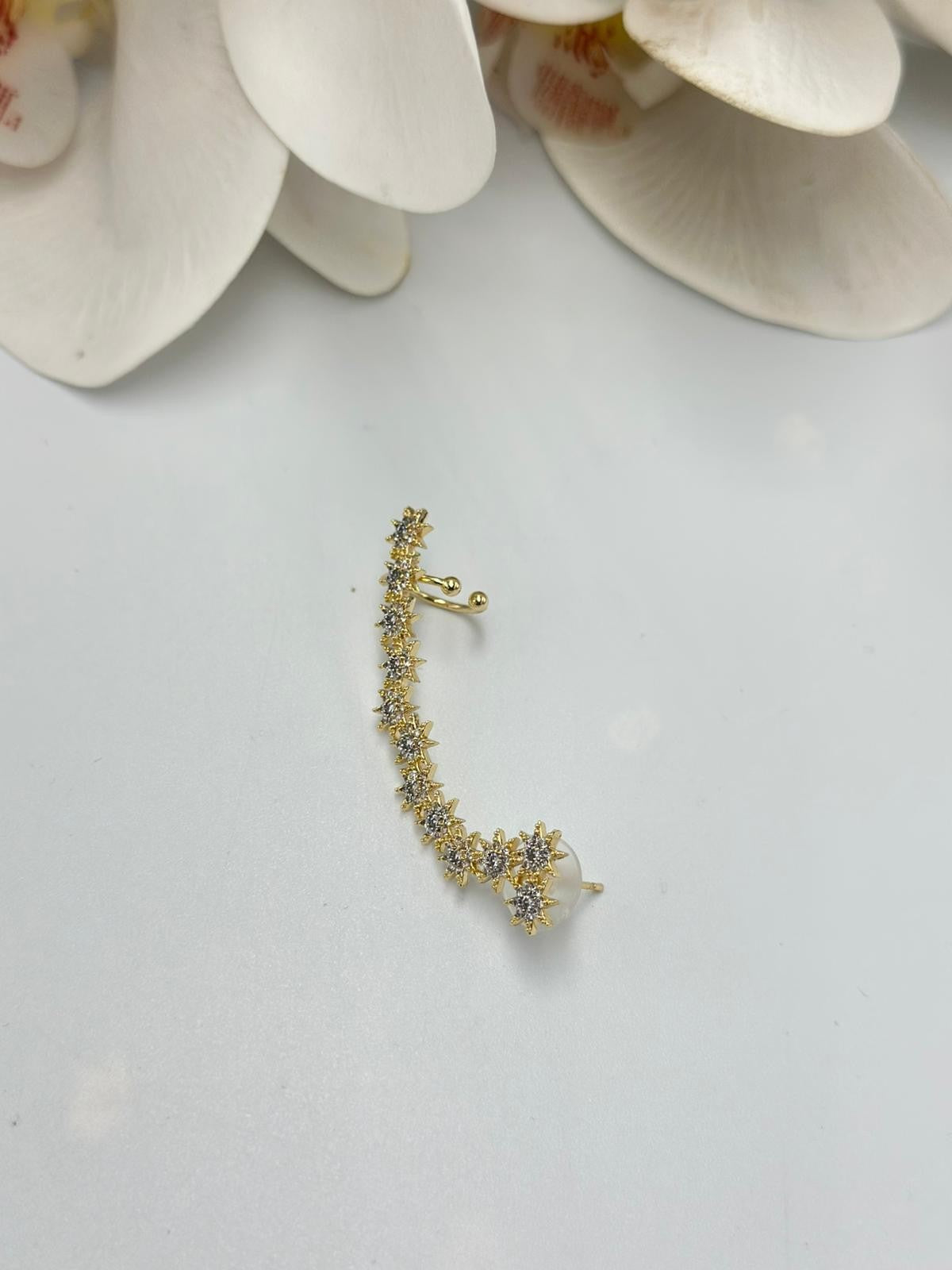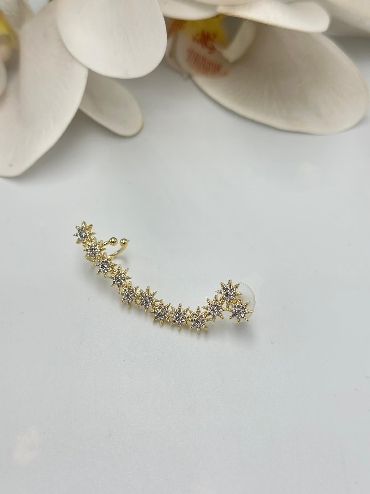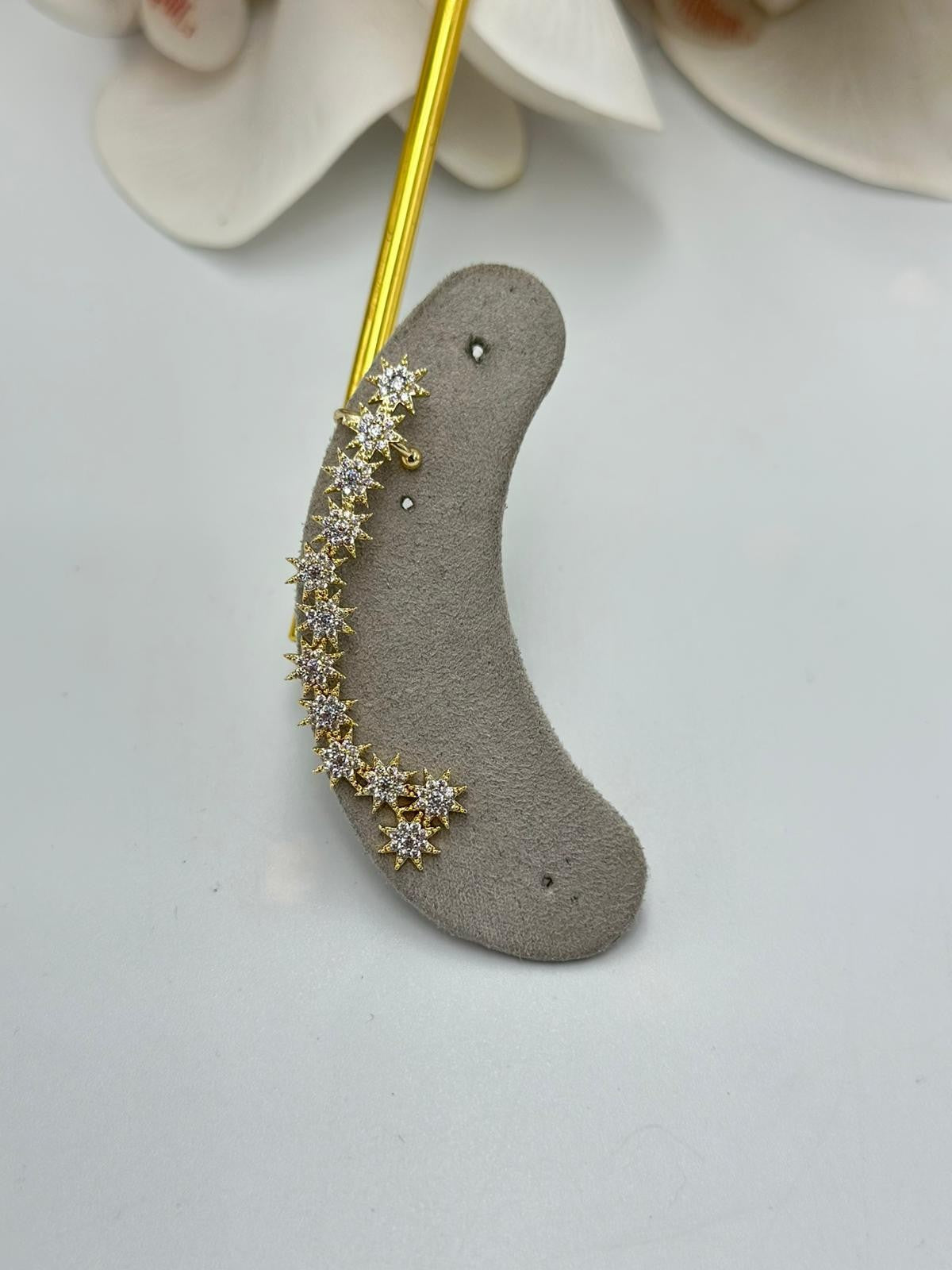 Pireium Serisi Sıralı Yıldız Zirkon Taş Detaylı Tasarım Kıkırdak Küpe