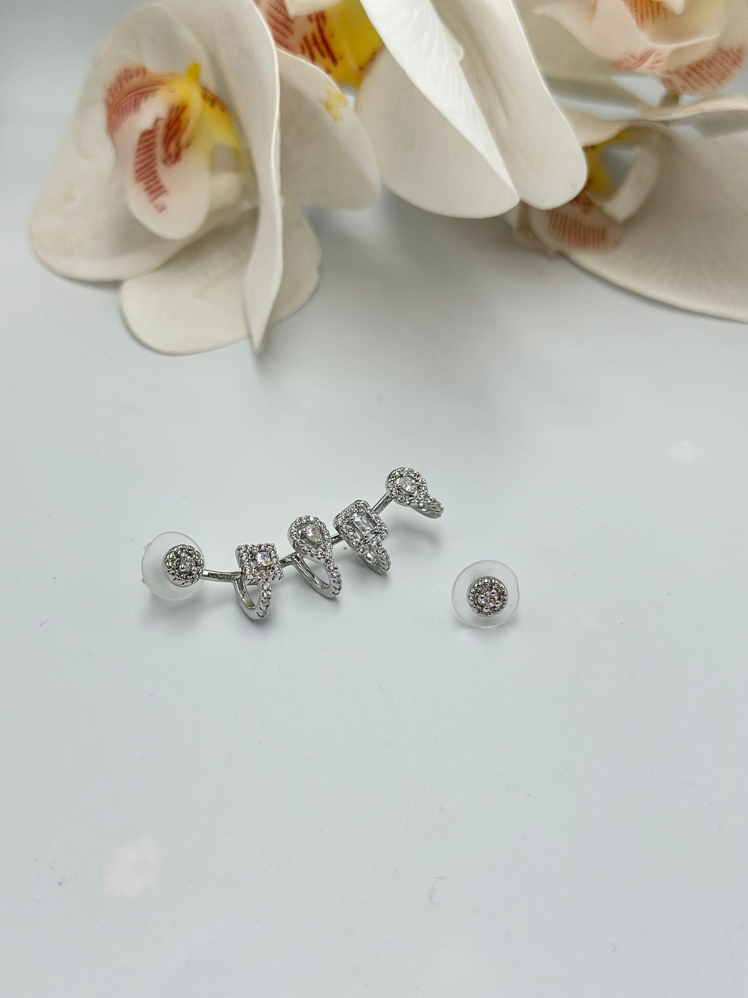 Piremium Serisi Zirkon Taş Detaylı Sıralı Kıkırdak Tasarım Küpe