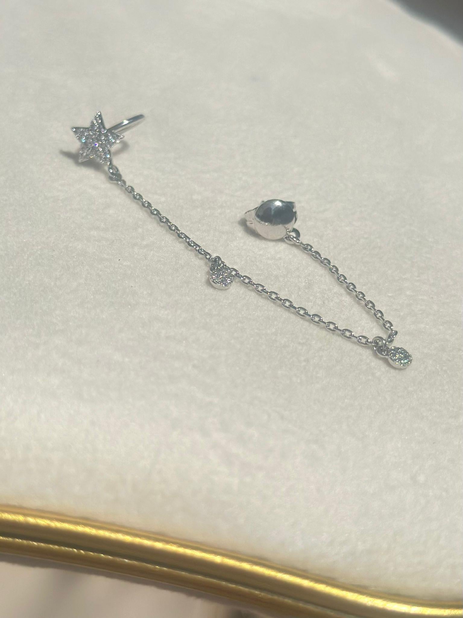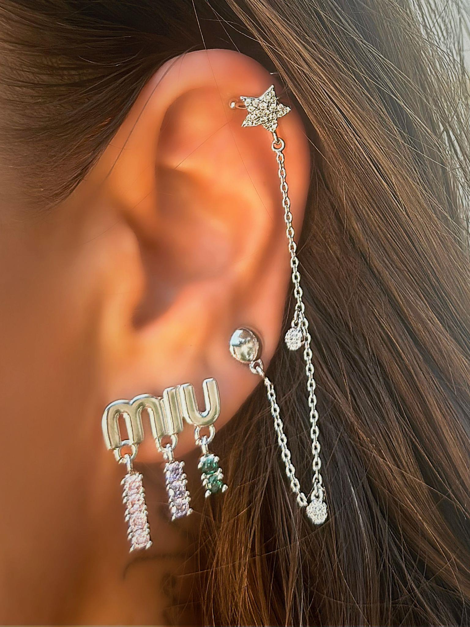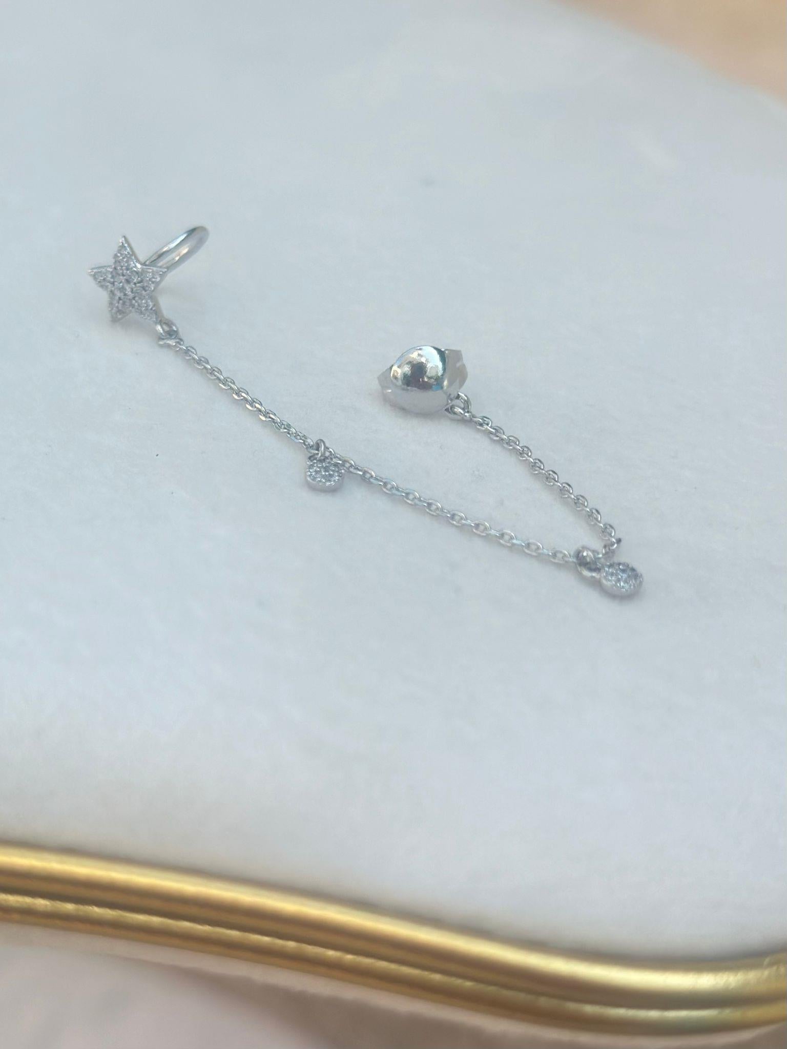 Zirkon Taş Ve Yıldız Detaylı Kıkırdak Küpe (Pirinç Kaplama)