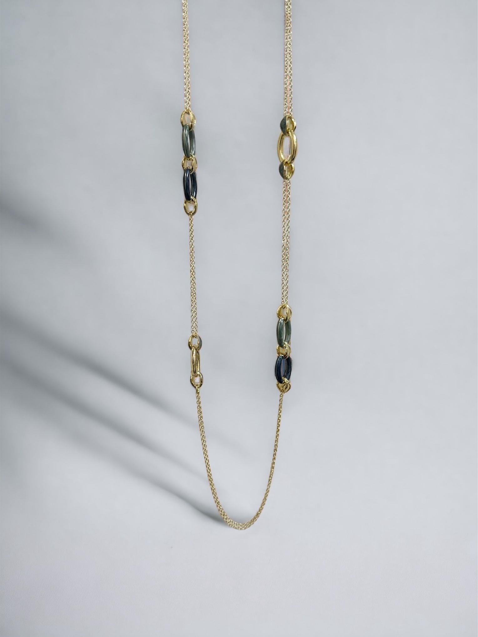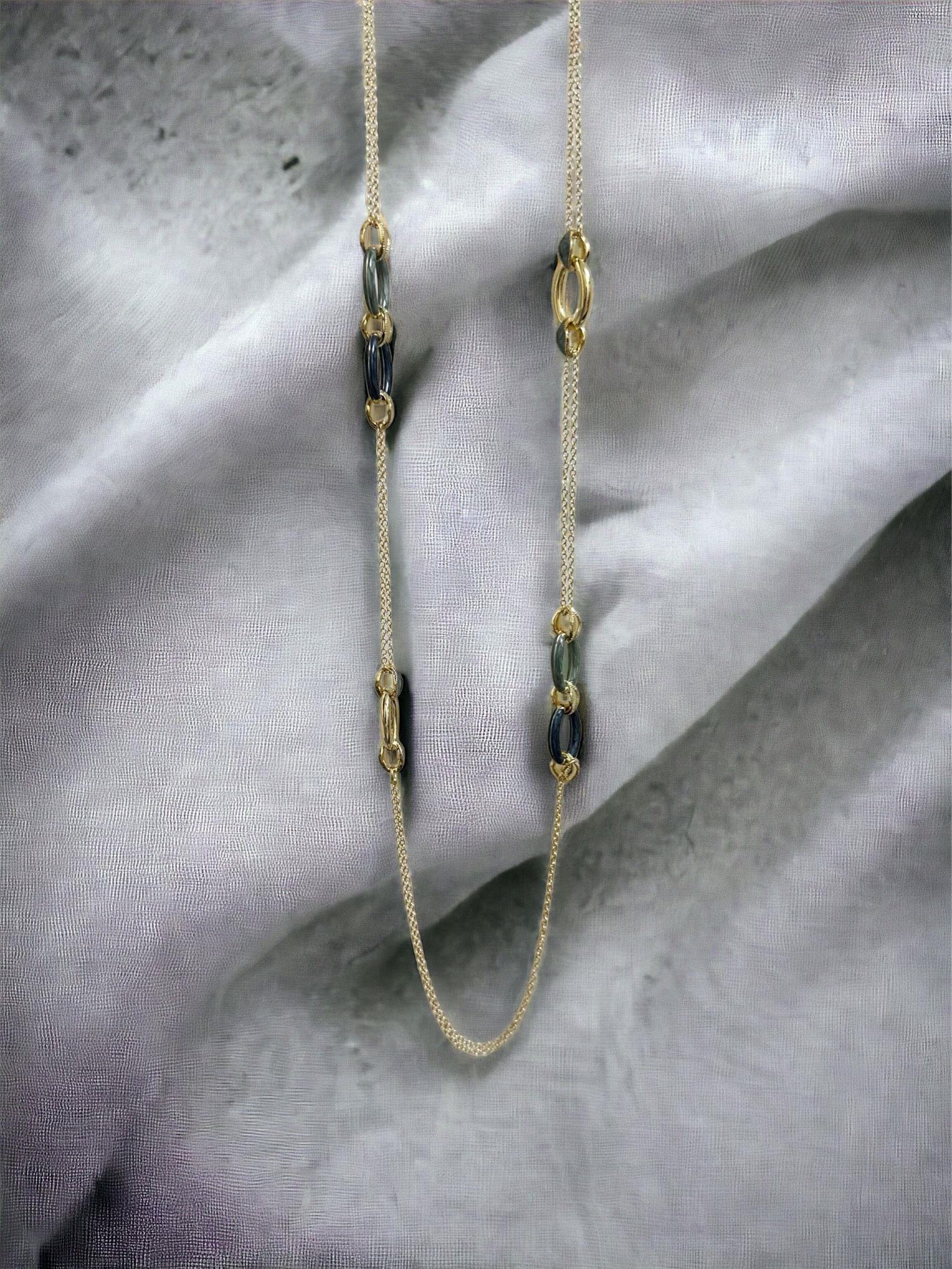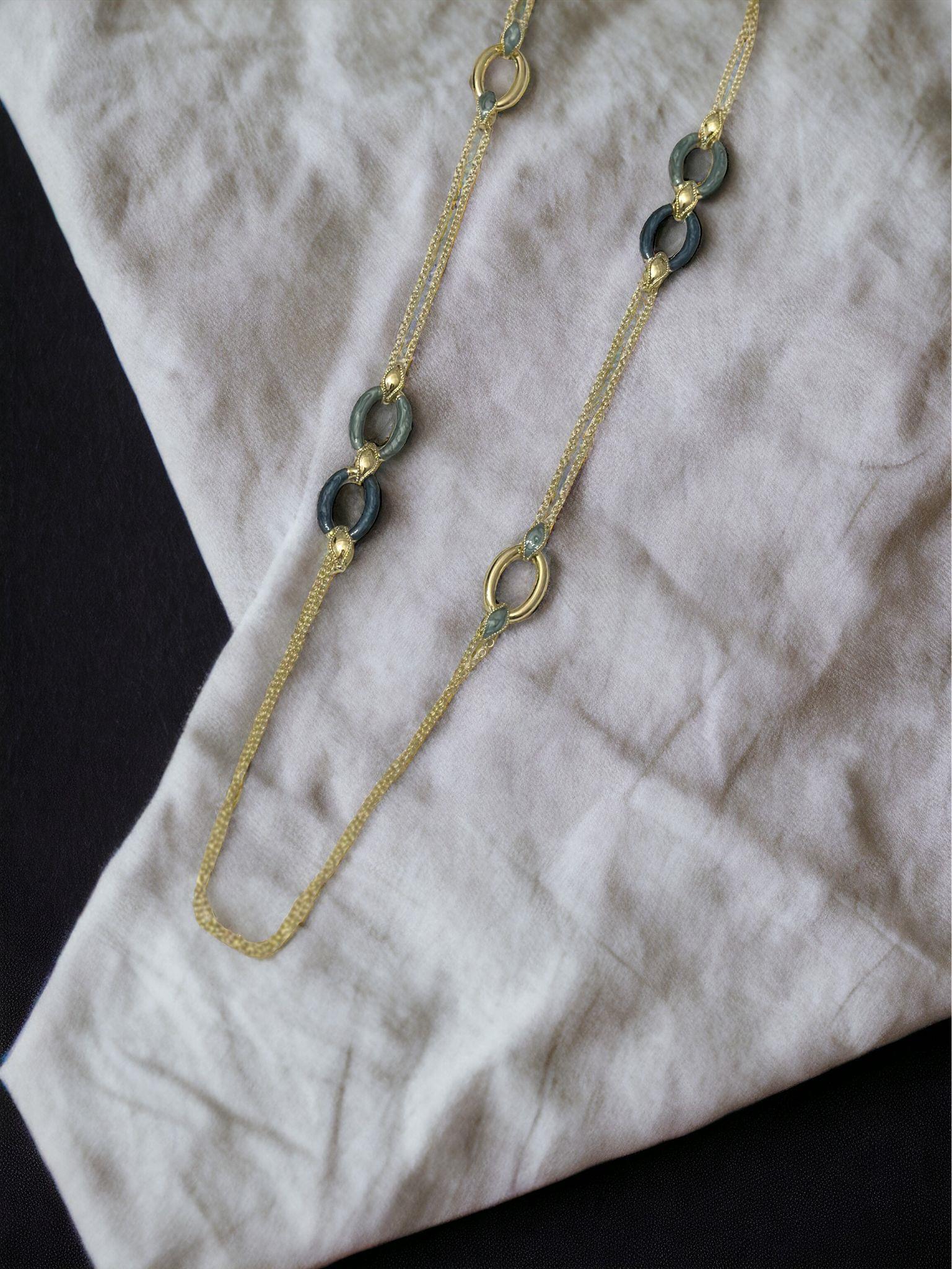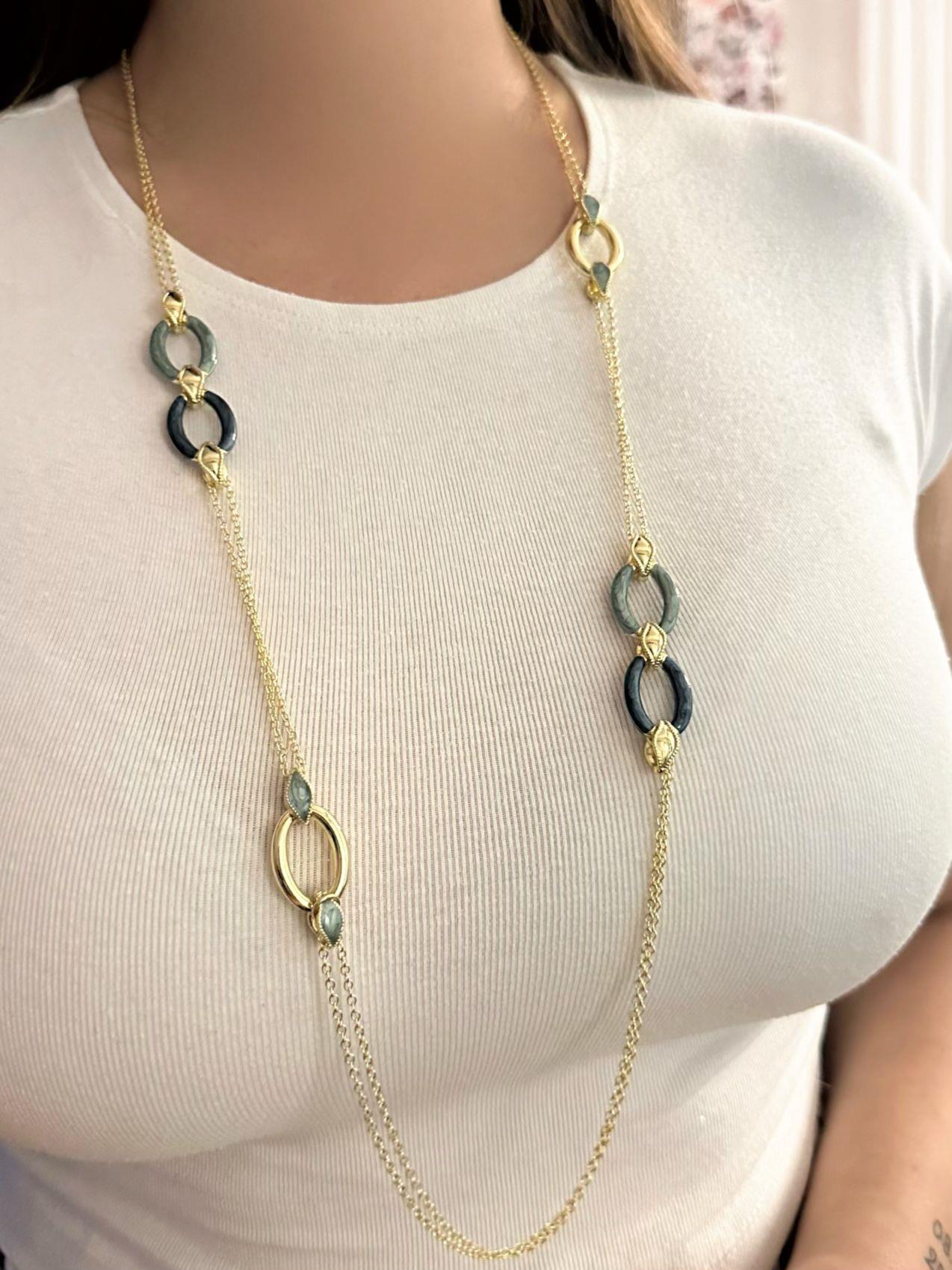 14k Altın Kaplama Akrilk Halka ve Gold Halka Detaylı Dolamalı Uzun Kolye 100cm)