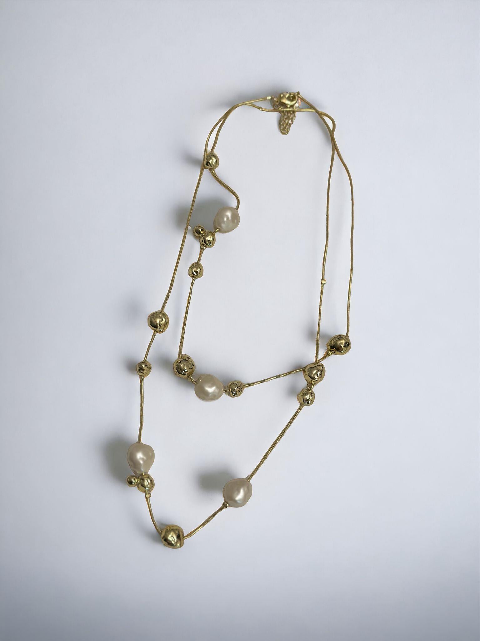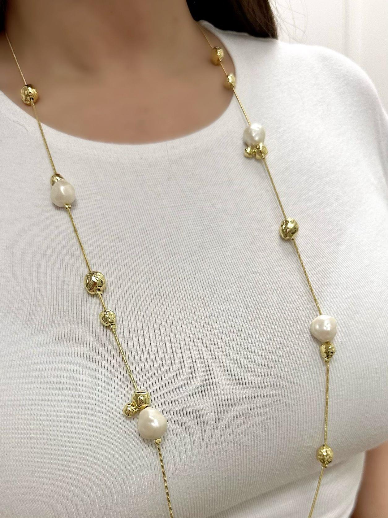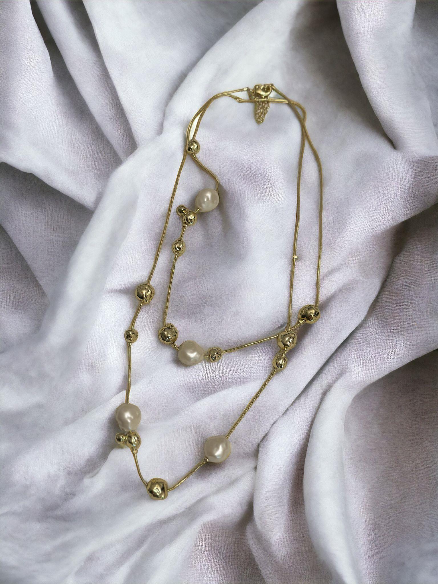 14K Altın Kaplama Barok İnci ve Dorika Topçuk Detaylı Uzun Dolamalı Kolye (100cm)