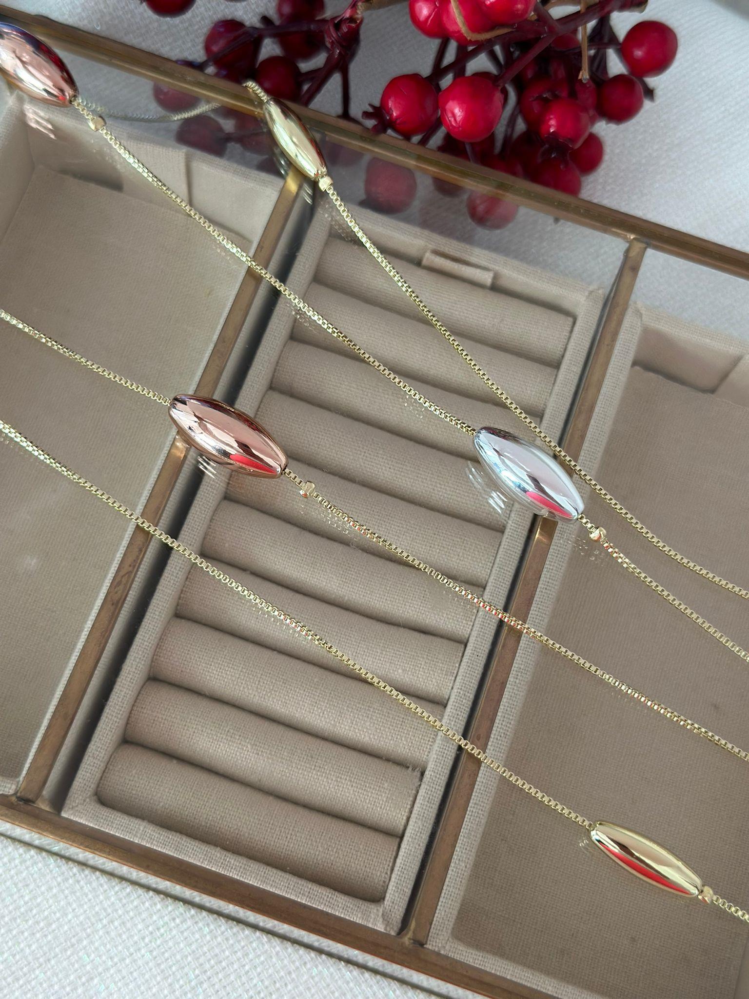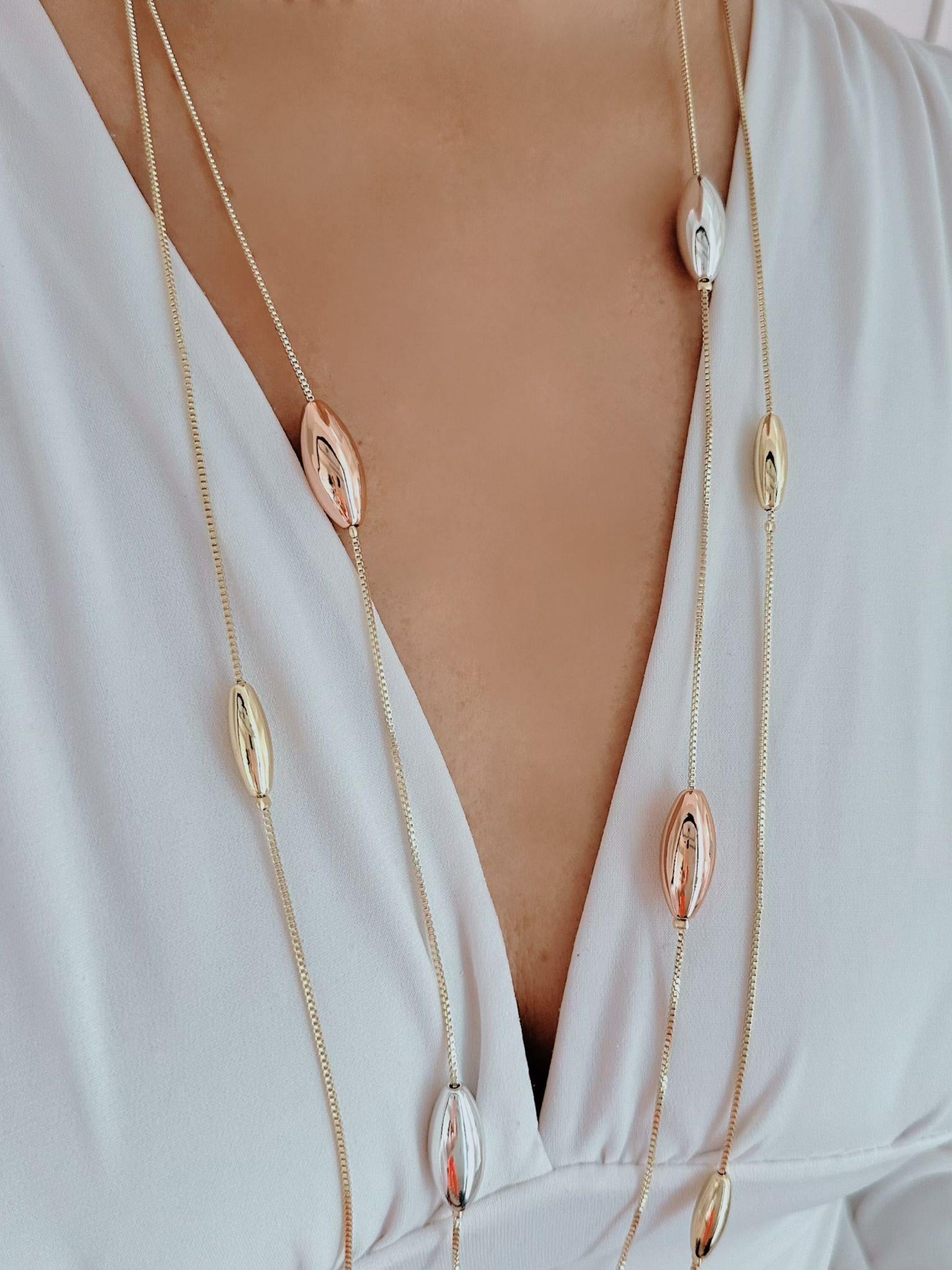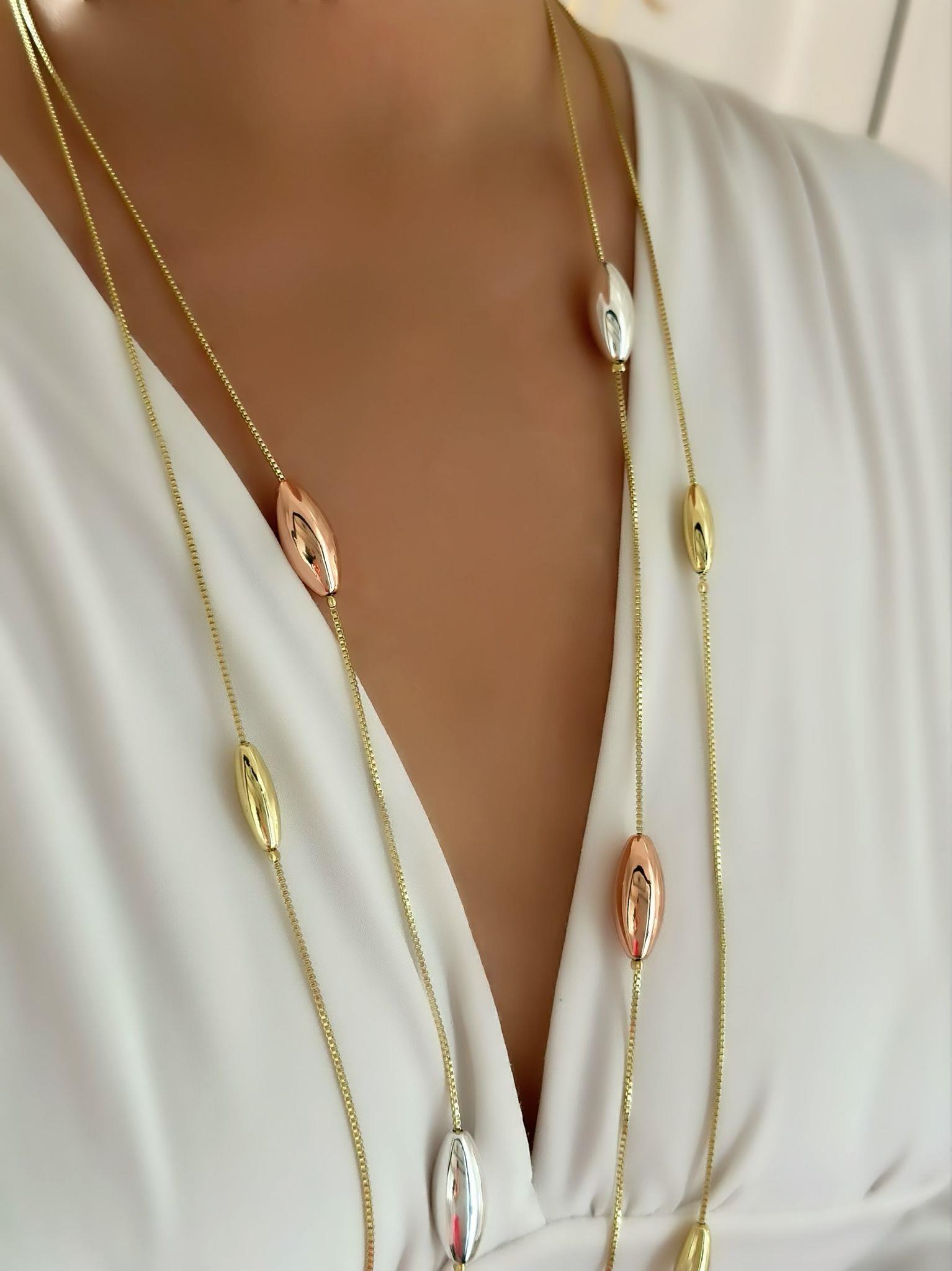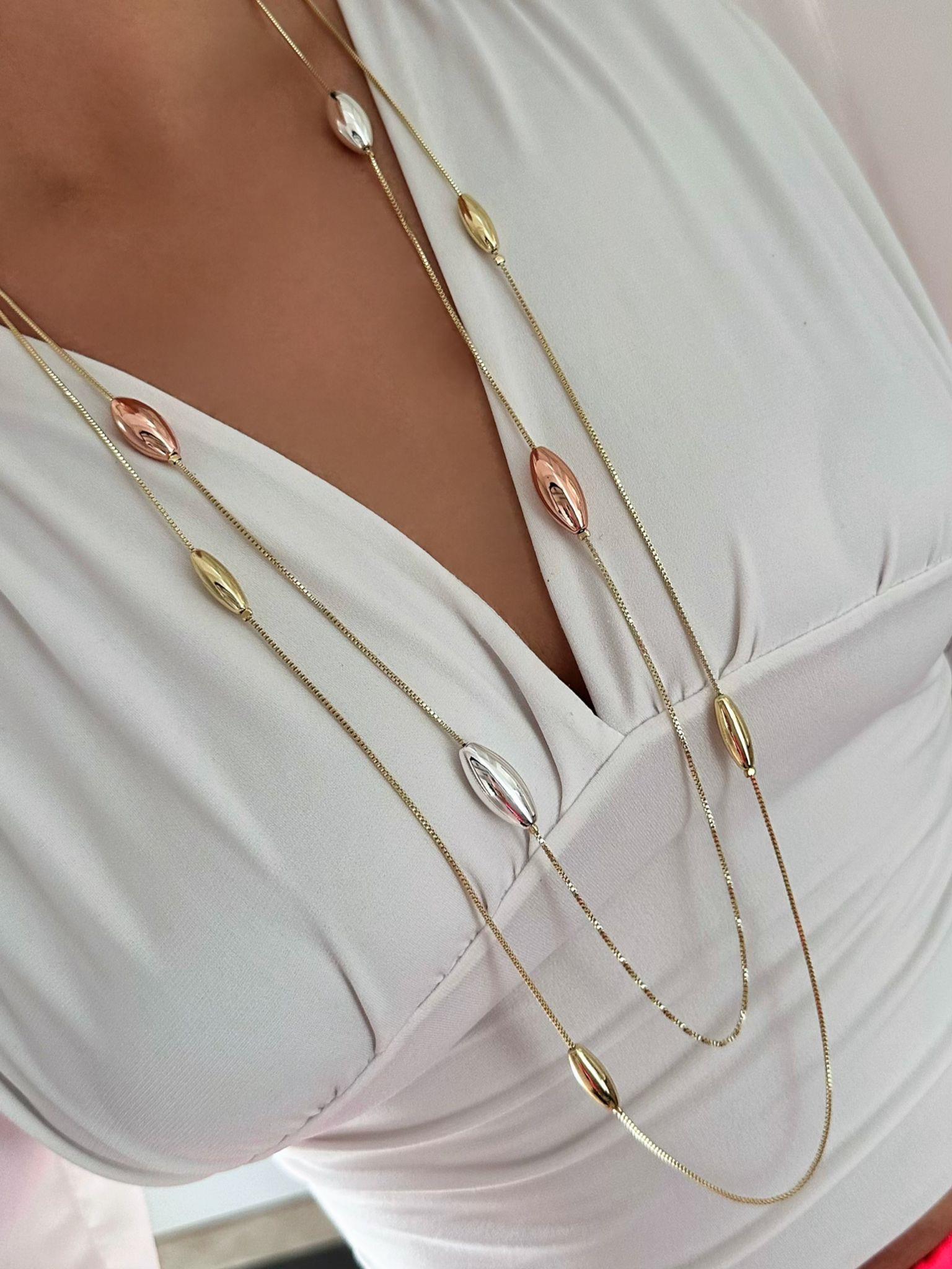 14k Altın Kaplama Üç Renk Detaylı Kolye (95cm)