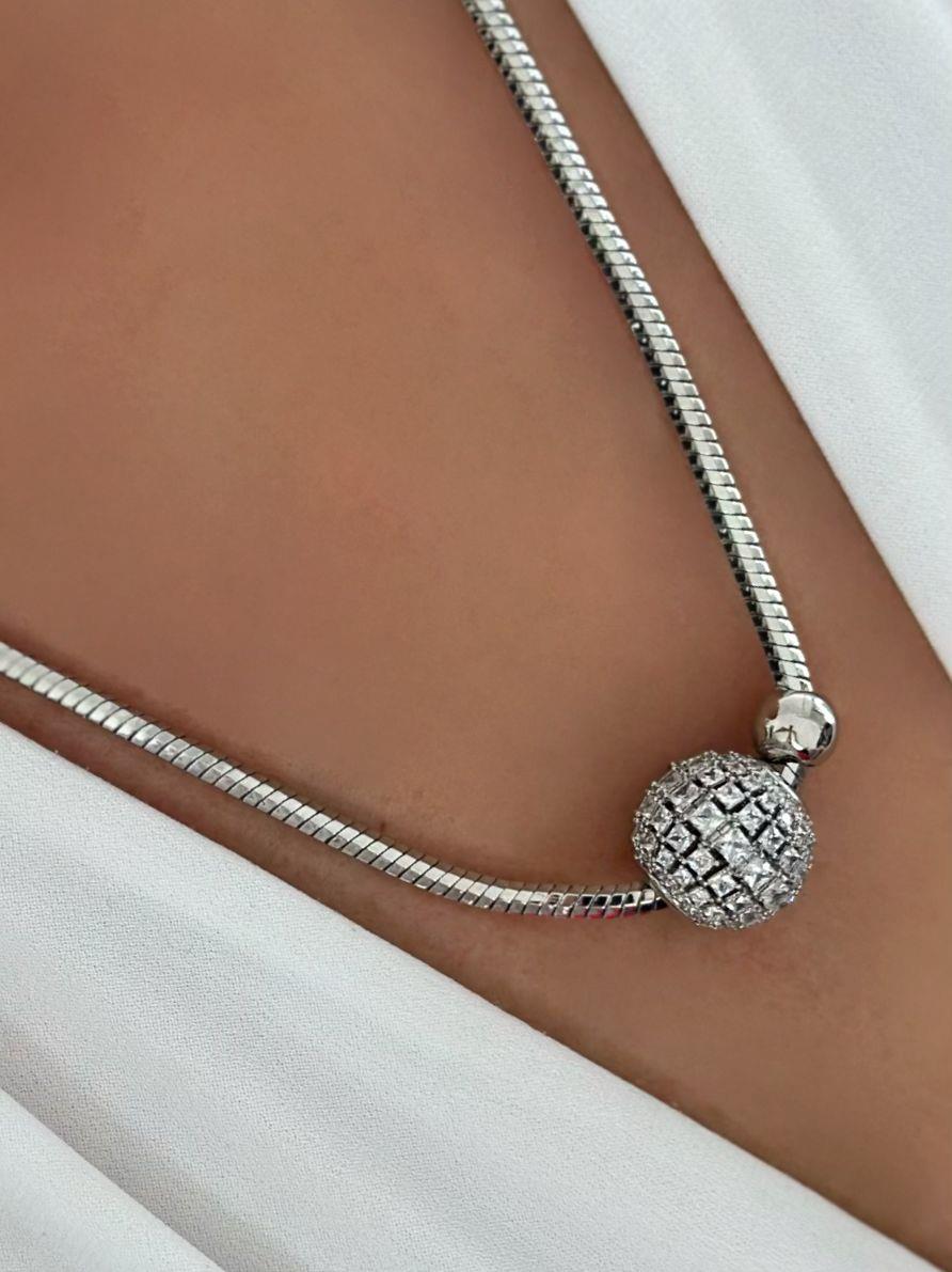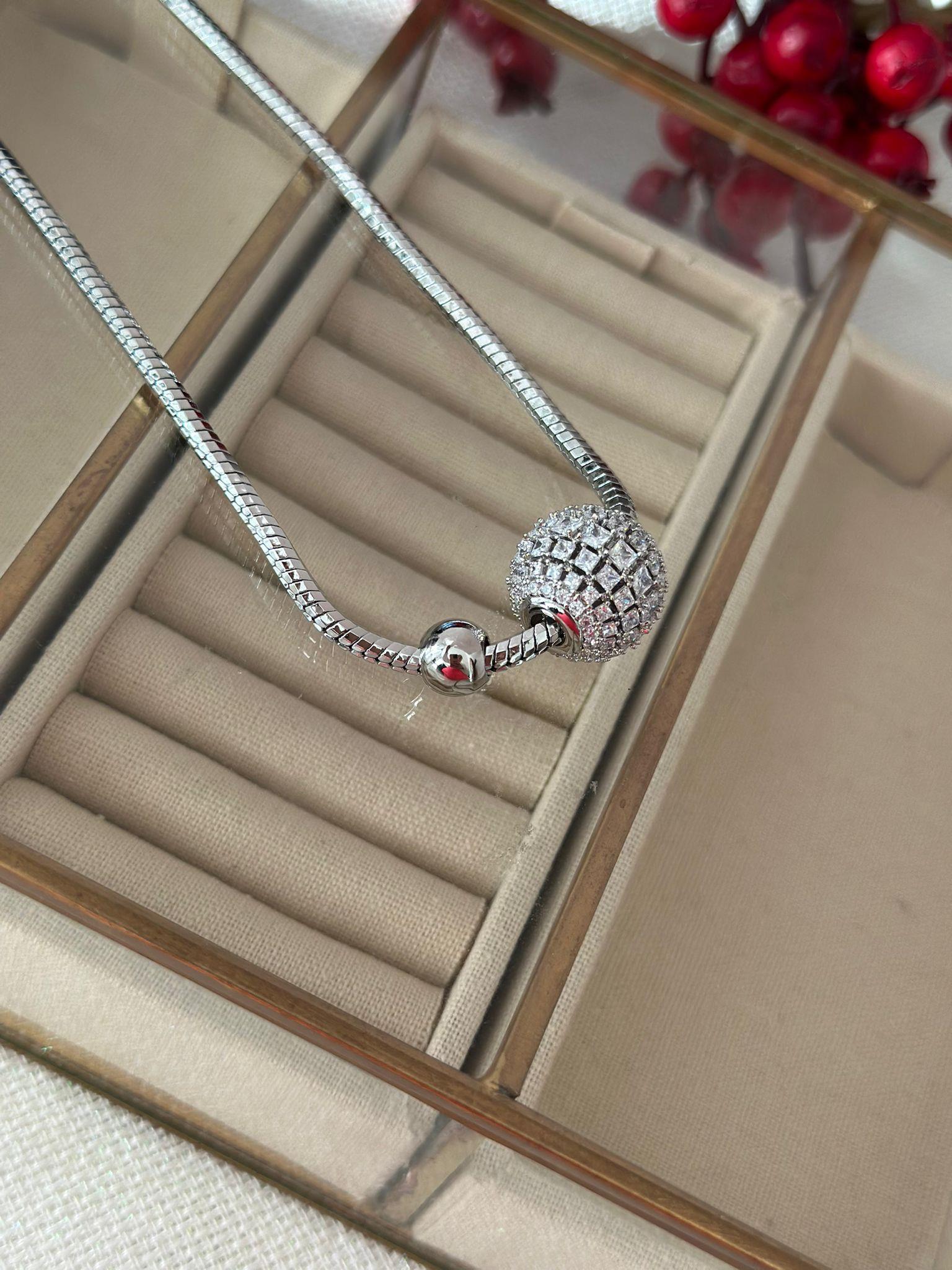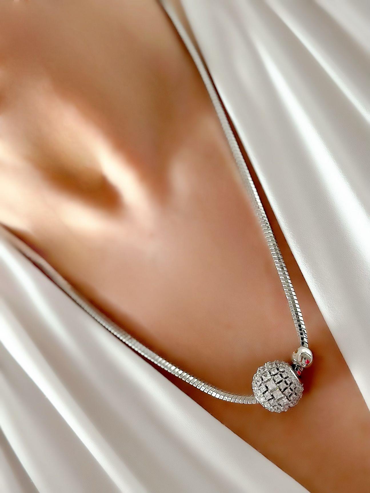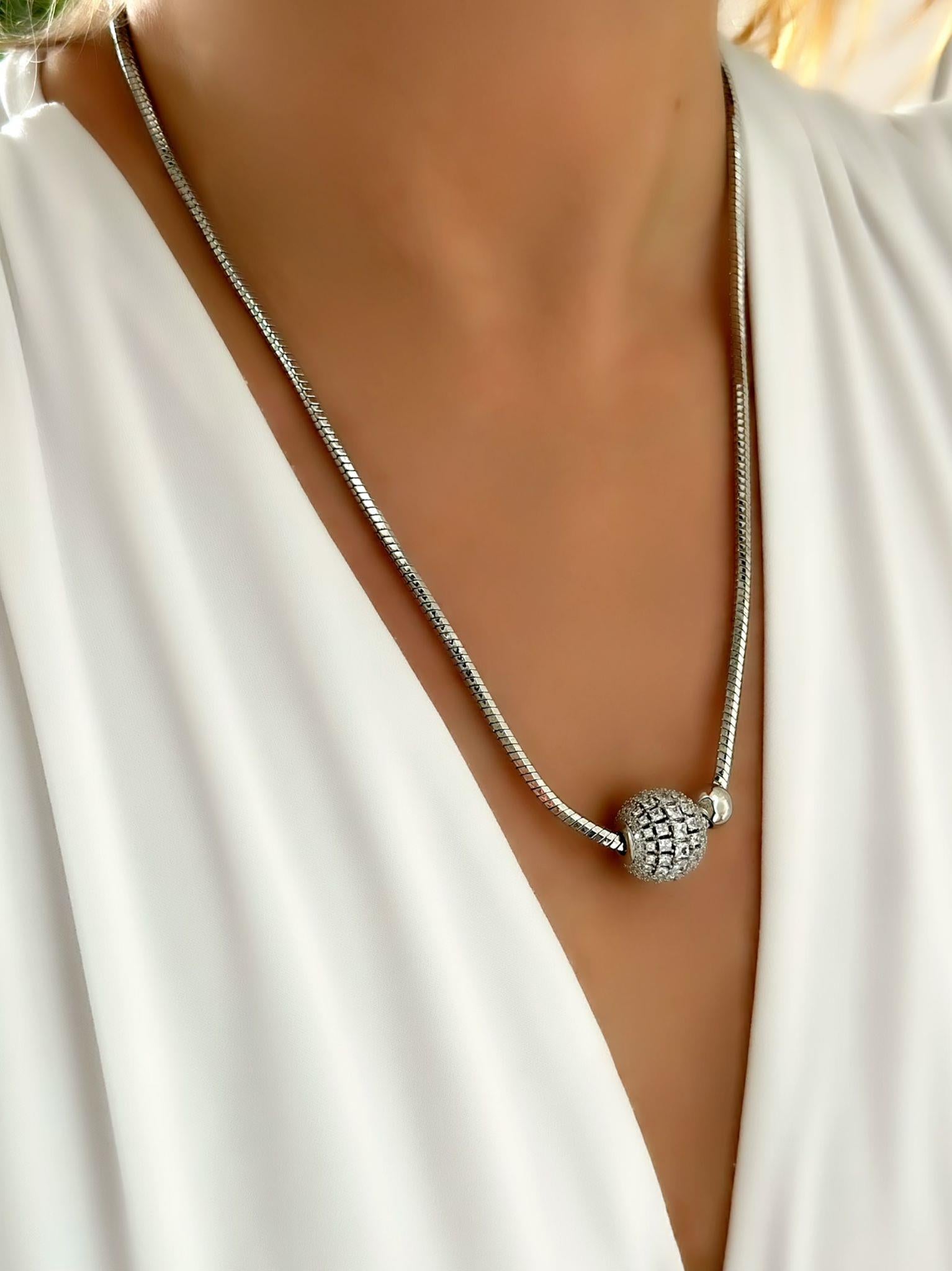Gümüş Kaplama Zirkon Topçuk Taş Detaylı Tasarım Kolye (60 cm)