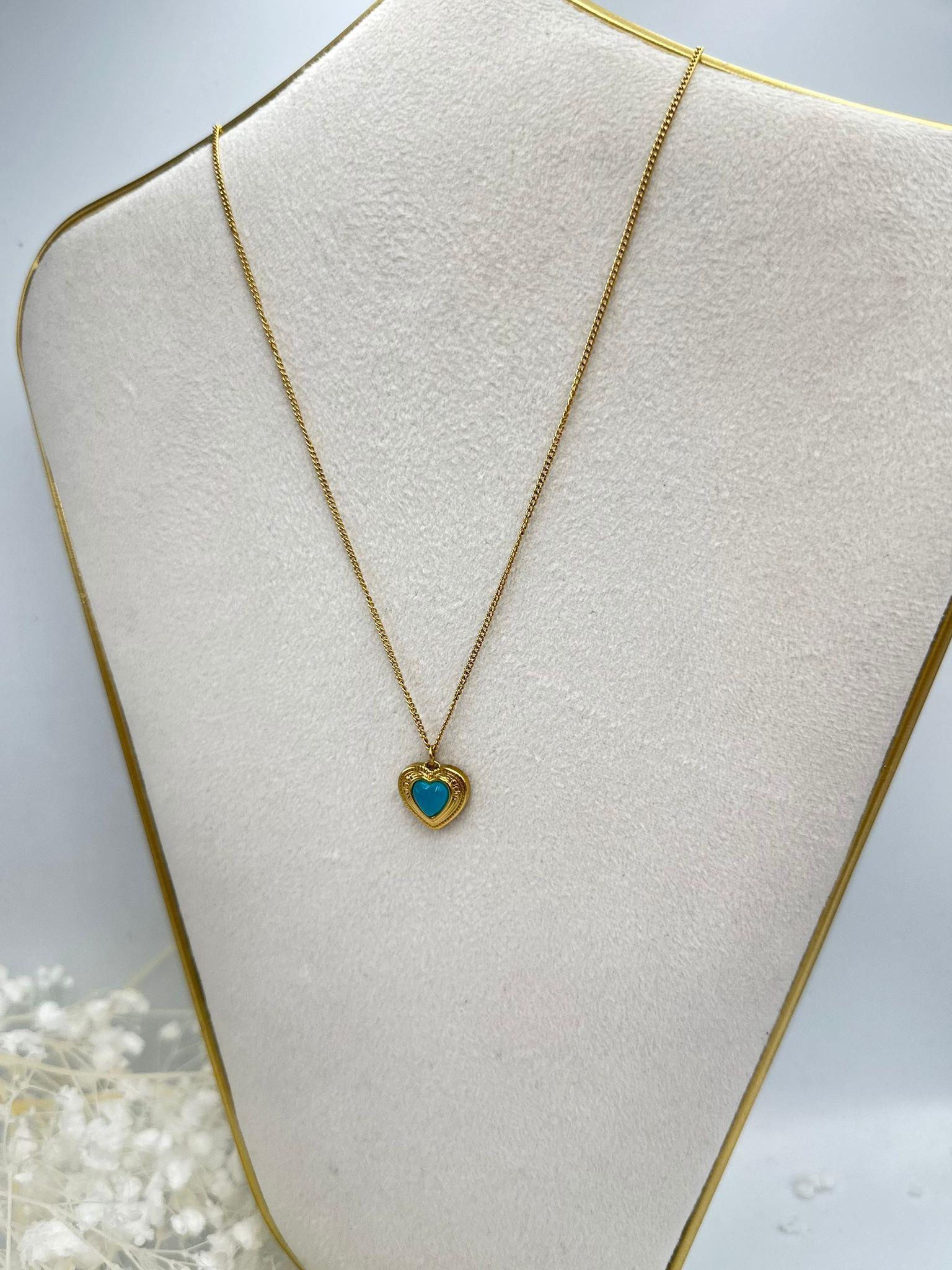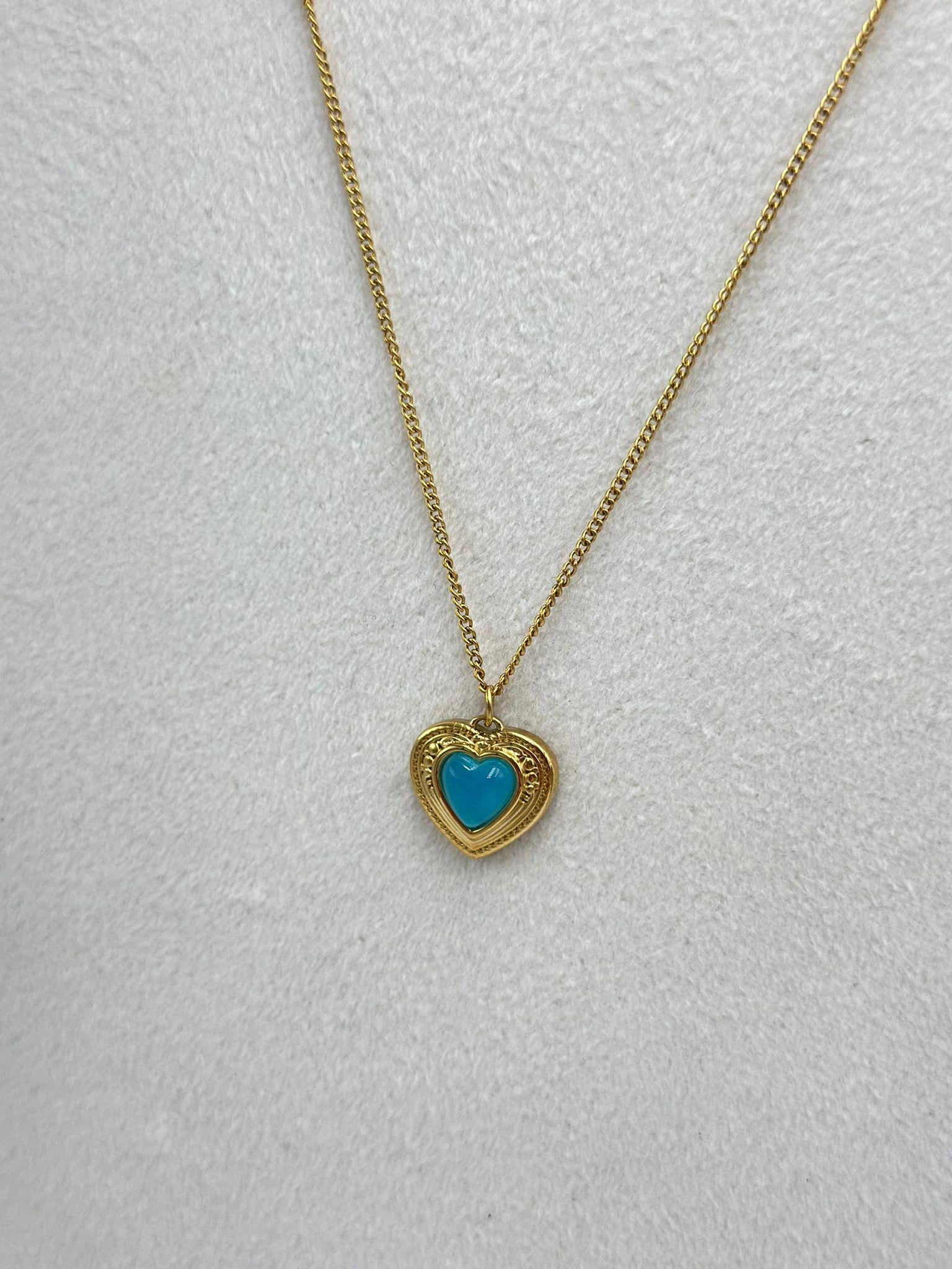 Kalp Çerçeve ve Opal Taş Detaylı Minimal Çelik Kolye (45cm)