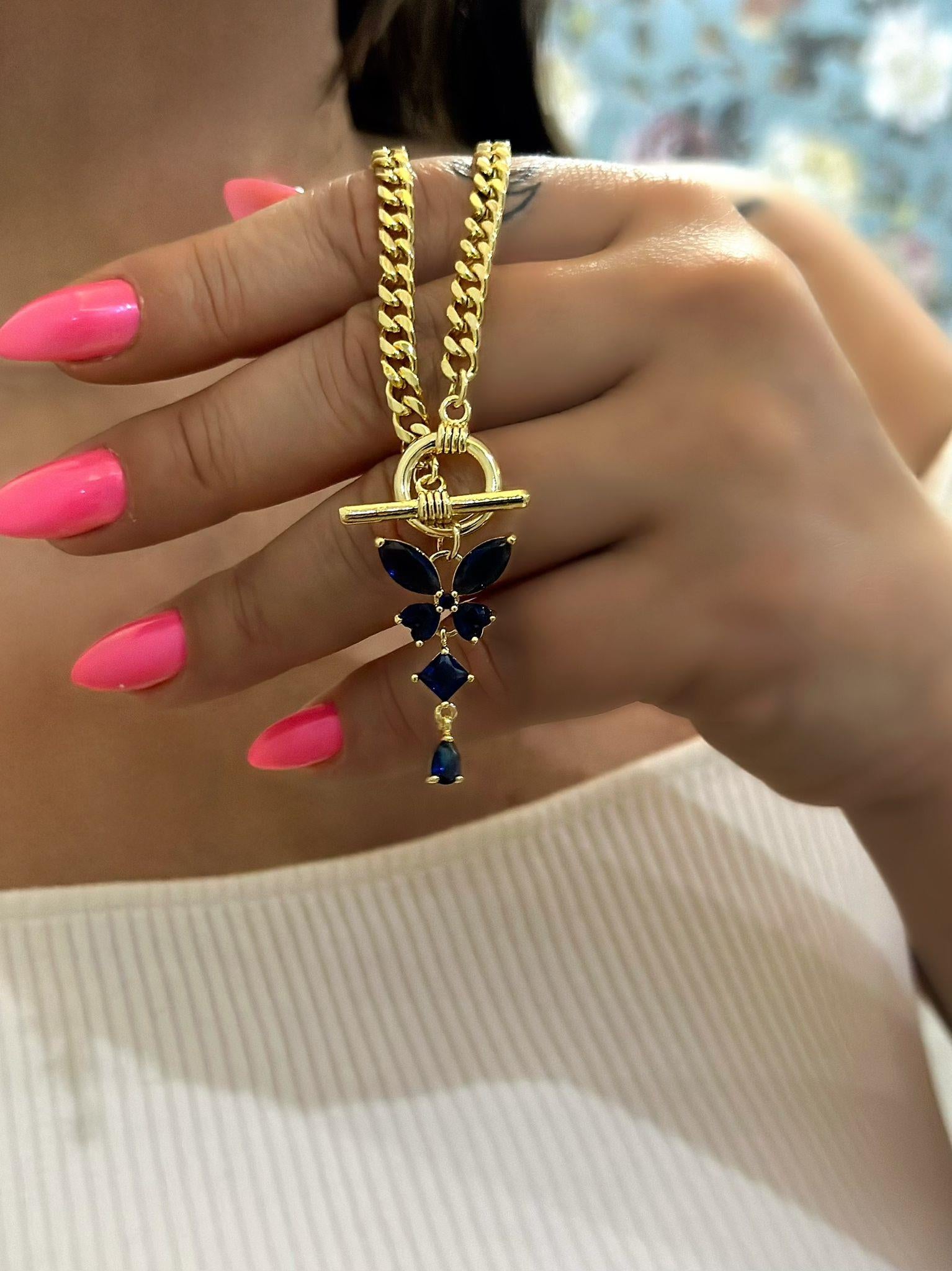 Laciver Baget Taş Detyalı Sallantılı Kelebek Figürlü Çelik Kolye