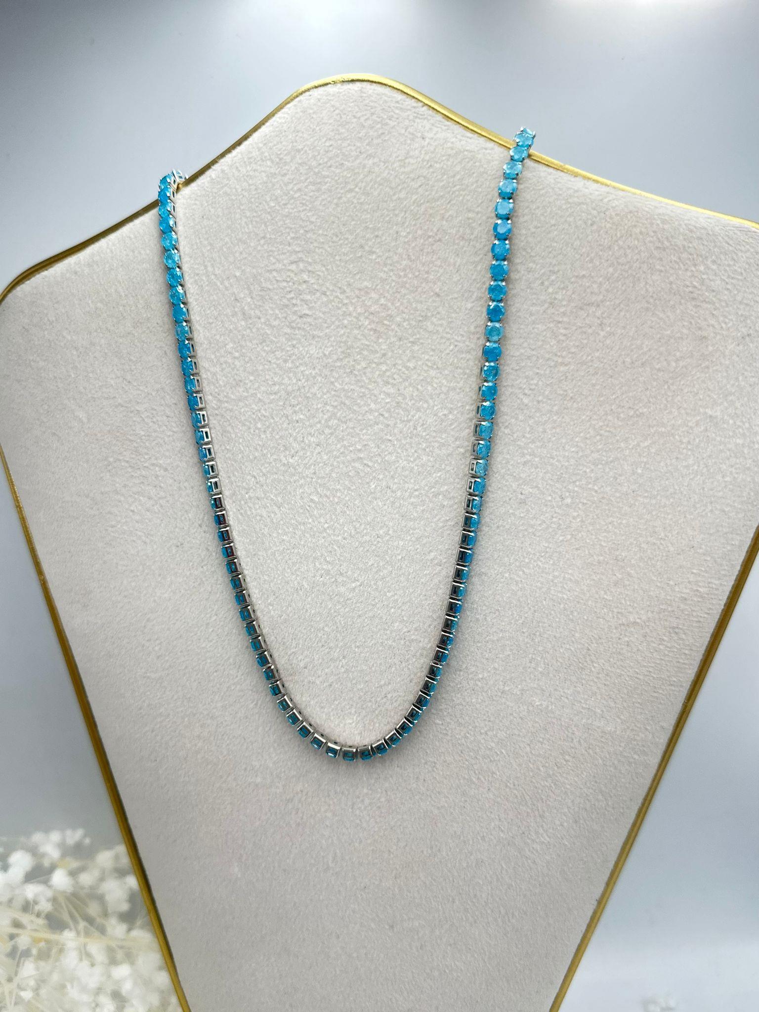 Mavi Taş Detaylı Çelik Suolu Kolye
