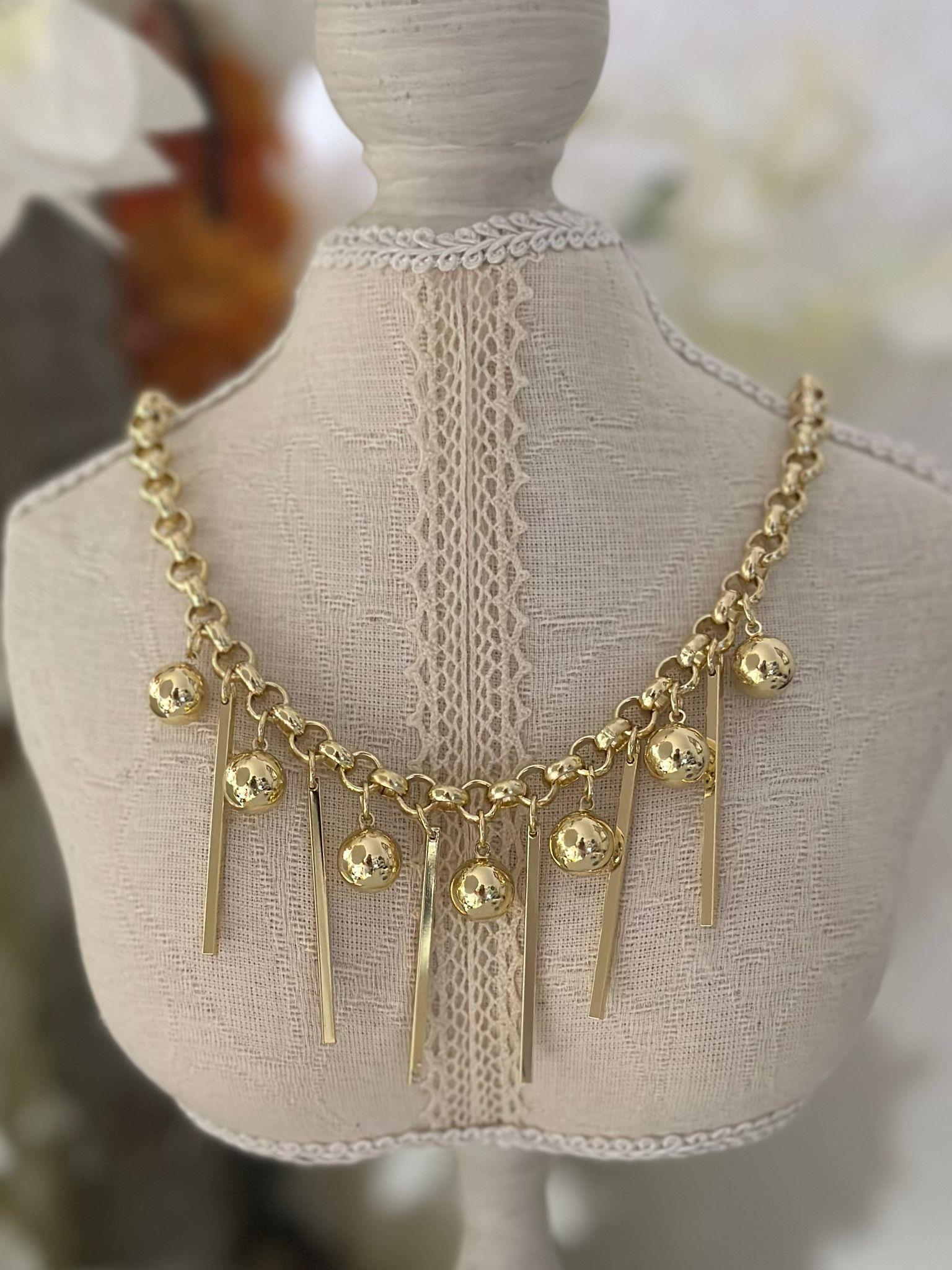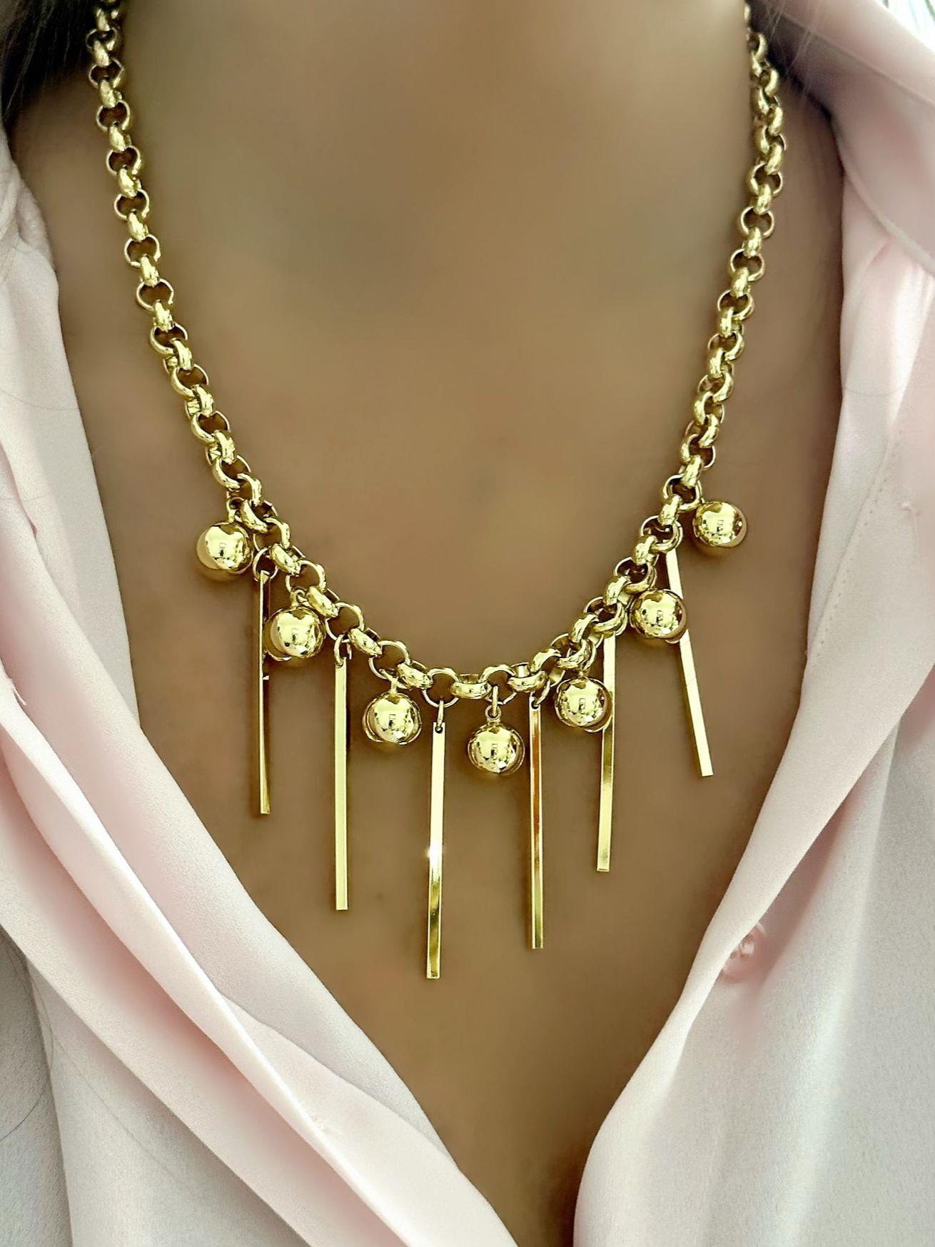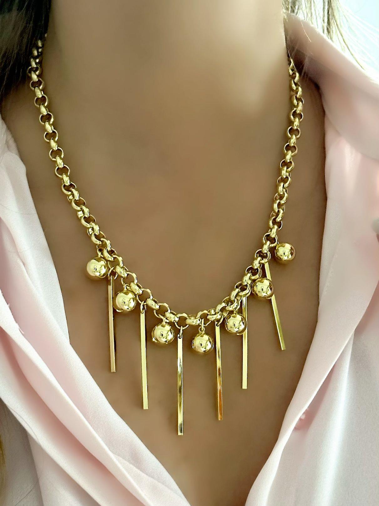 Özel Seri Çucuk ve Topçuk Detaylı Charm Çelik Kolye (47cm)