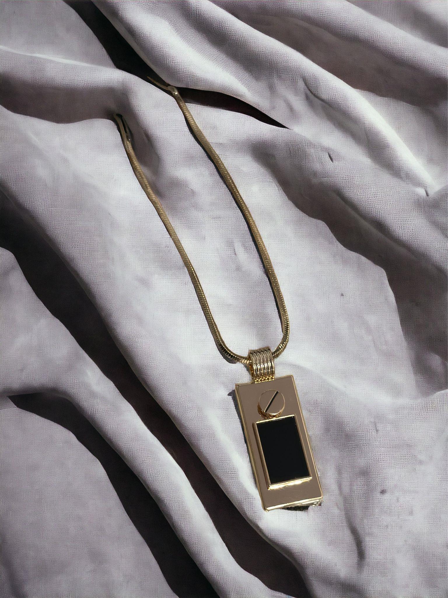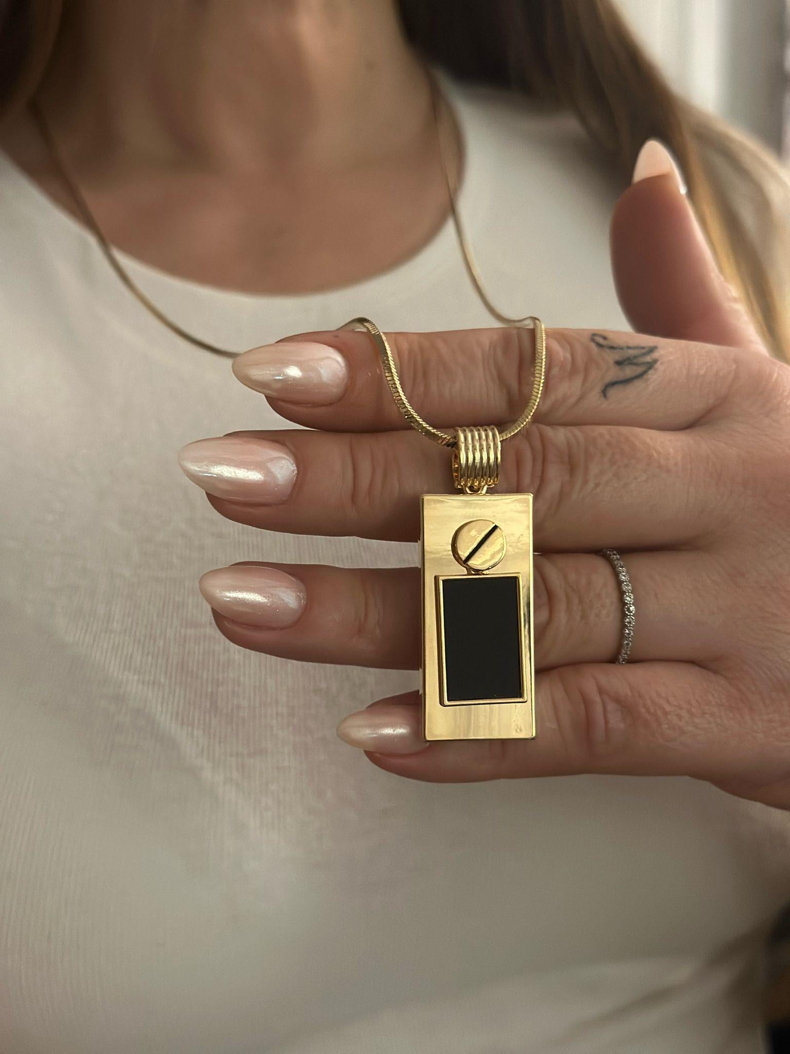 Siyah Mineli ve İtalyan Zincir Detaylı Unisex Çelik Kolye