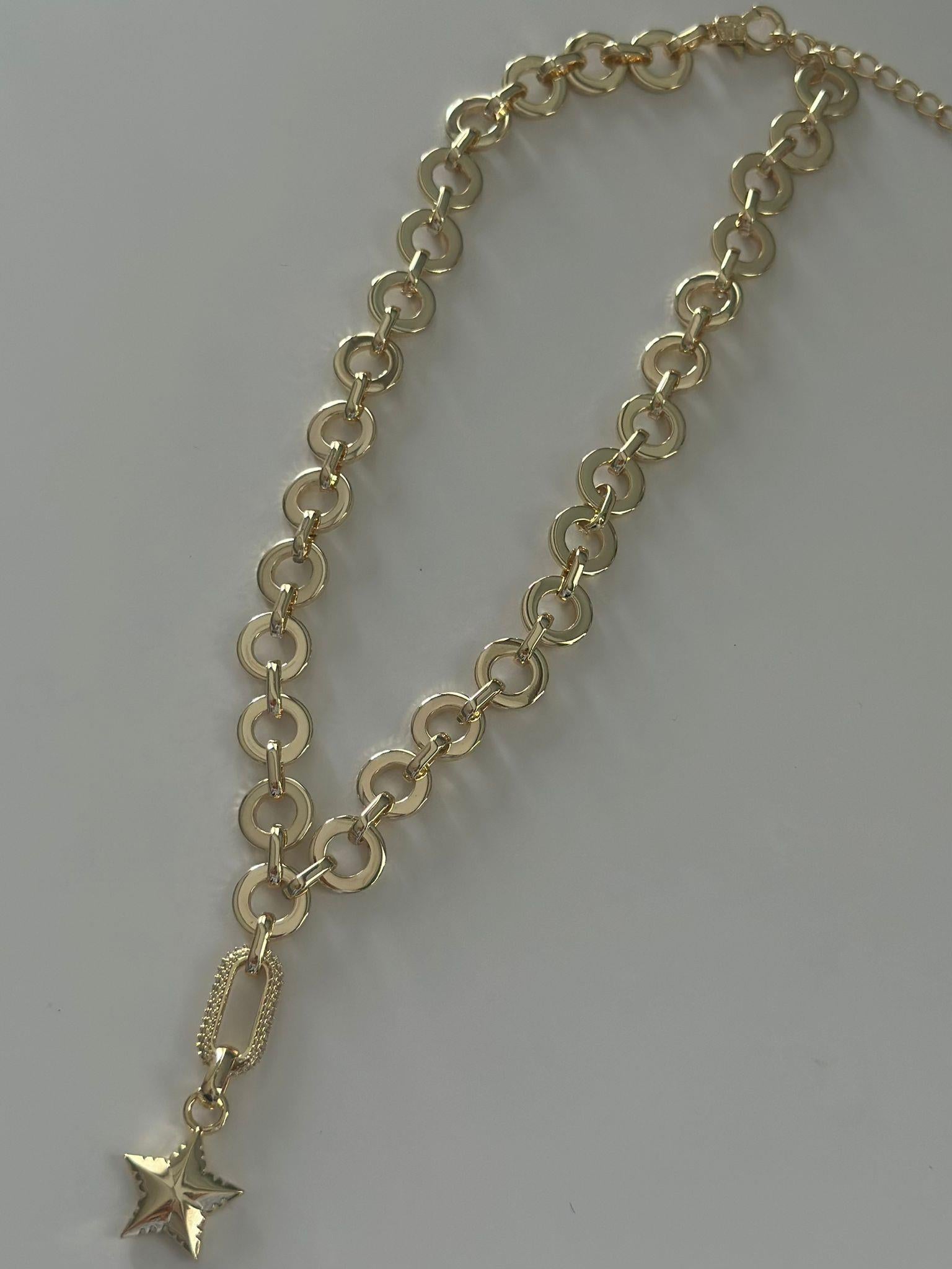 Yıldız Detaylı İç İçe Geçme Çelik Zincir Kolye