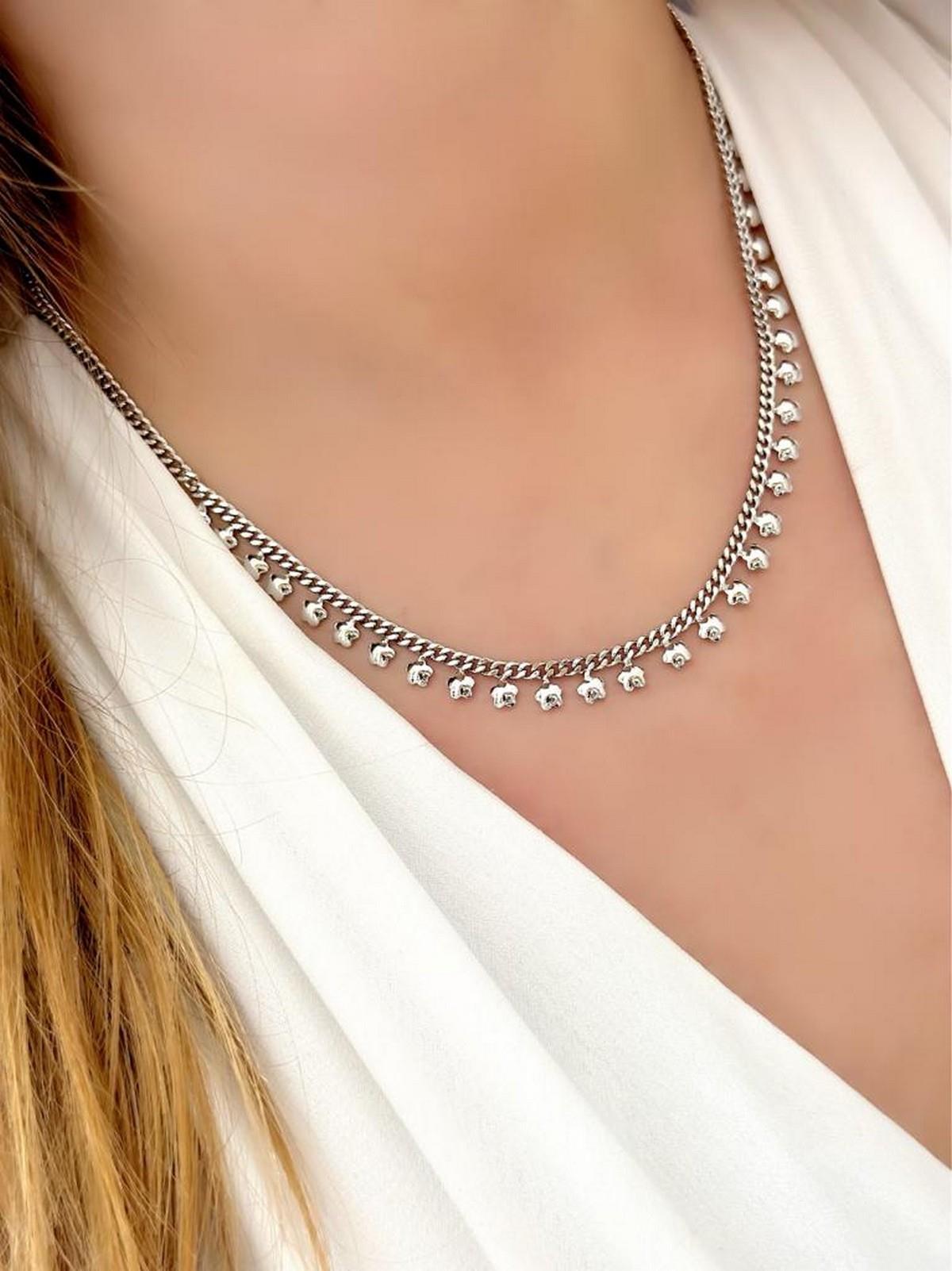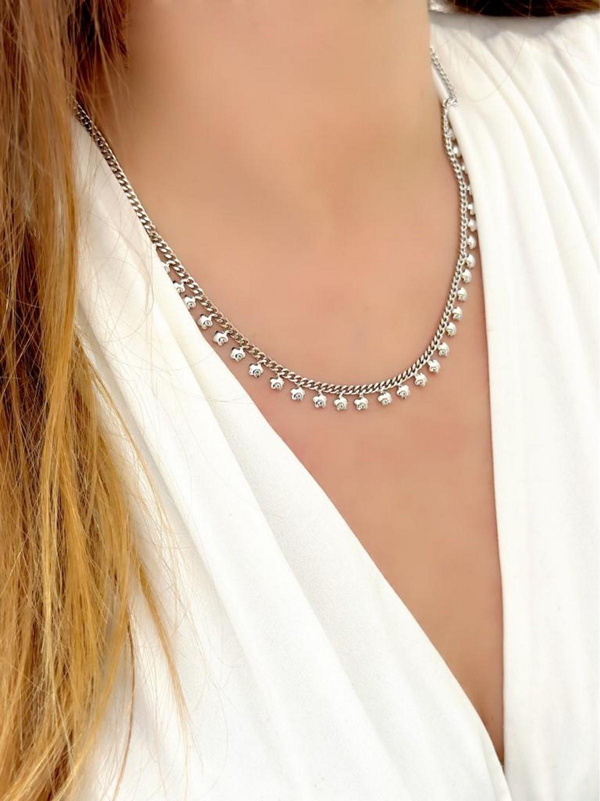 Yıldz Detaylı Çelik Gümüş Renk Zincir Kolye