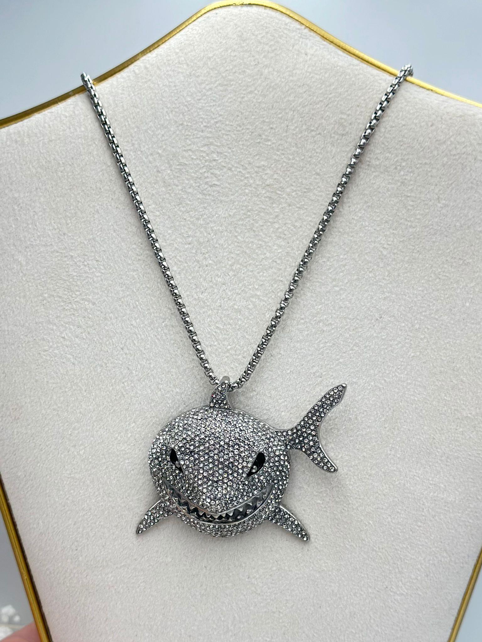 Zirkon Taş ve Burgu Zincir Çelik Unisex Kolye (58cm)