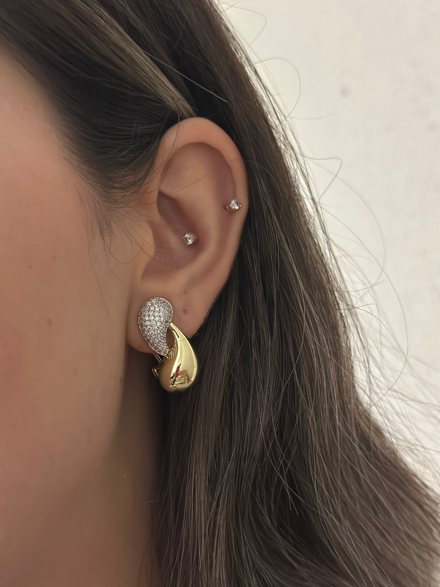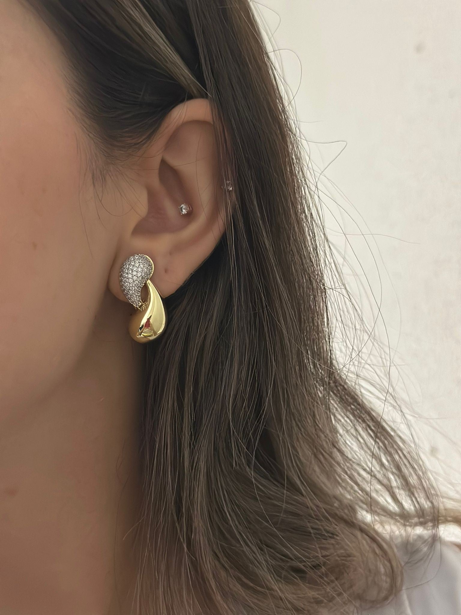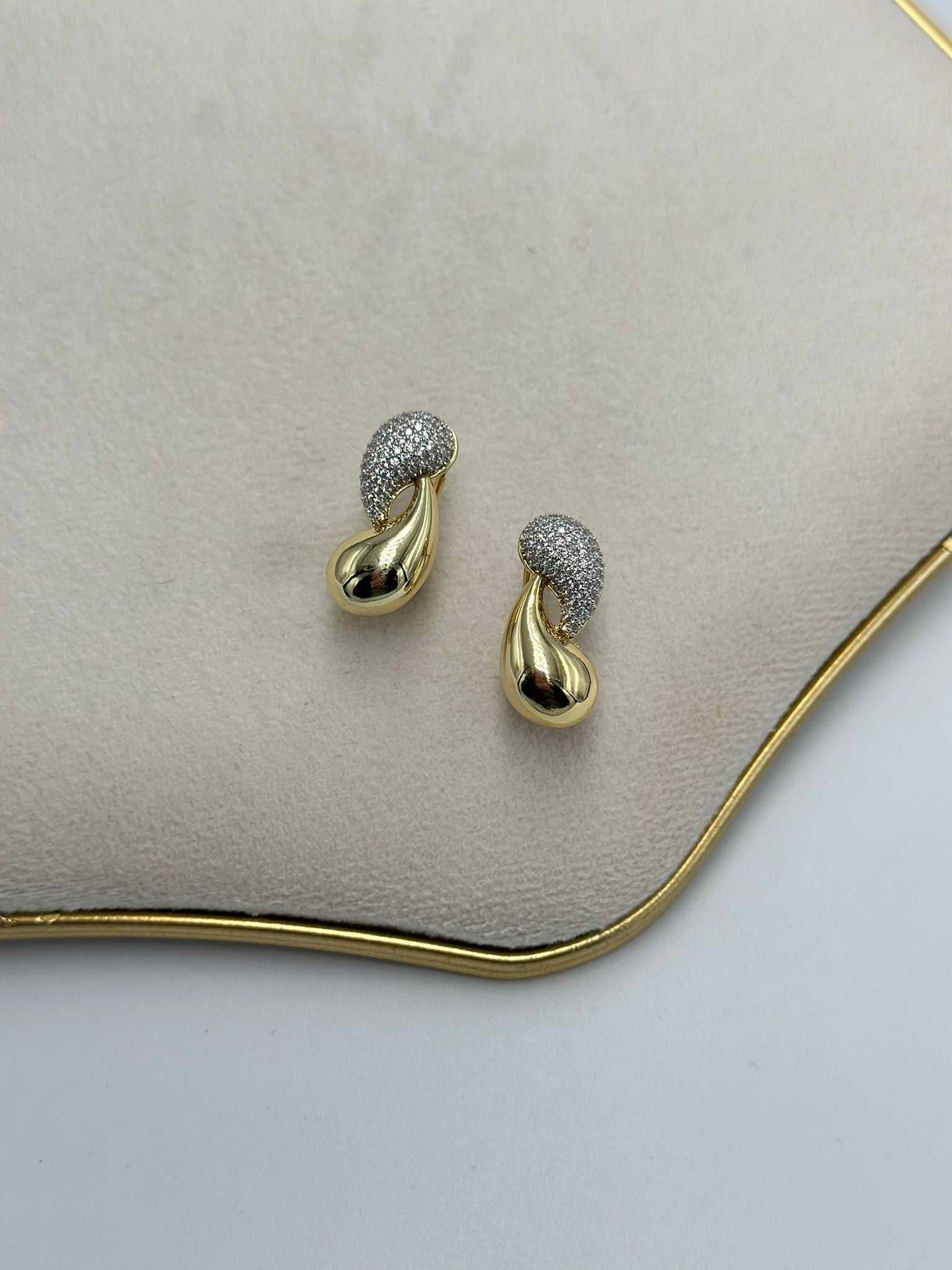 14K Altın Kaplama Zirkon Taş Detay Damla Küpe