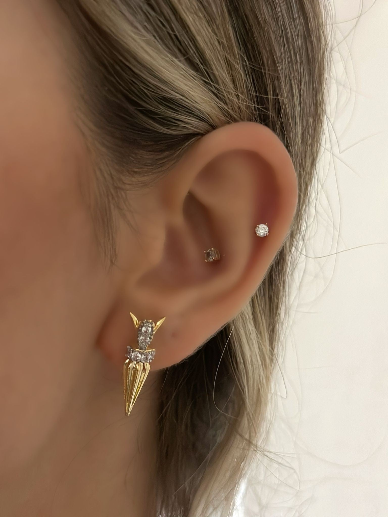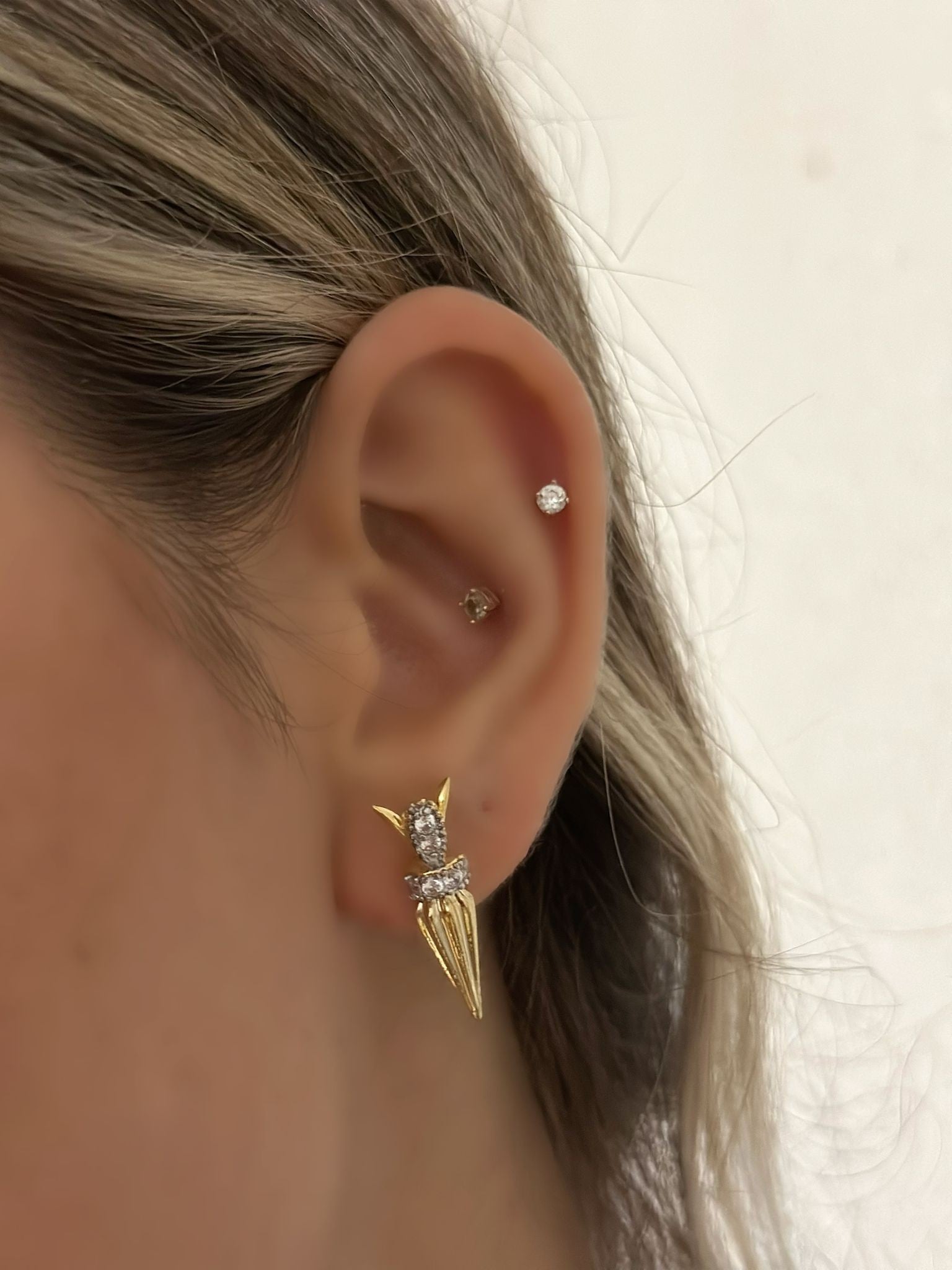 Çift Renk Çivi Minimal Küpe (Çelik)