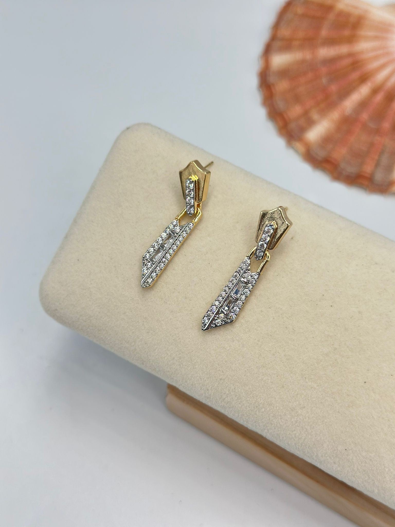 Çift Renk Zirkon Taş Detay Fermuar Küpe (Çelik)