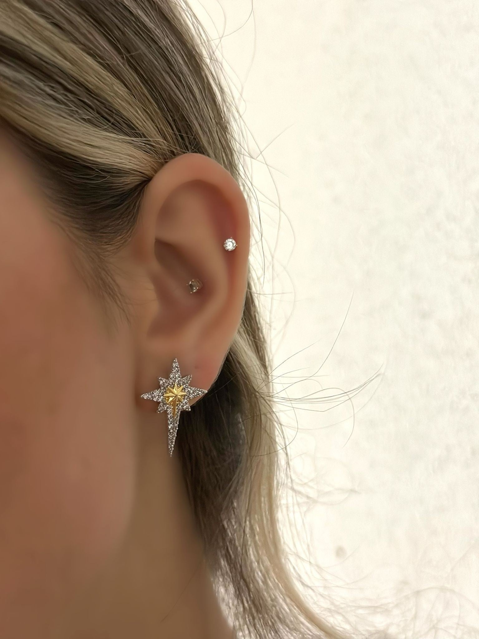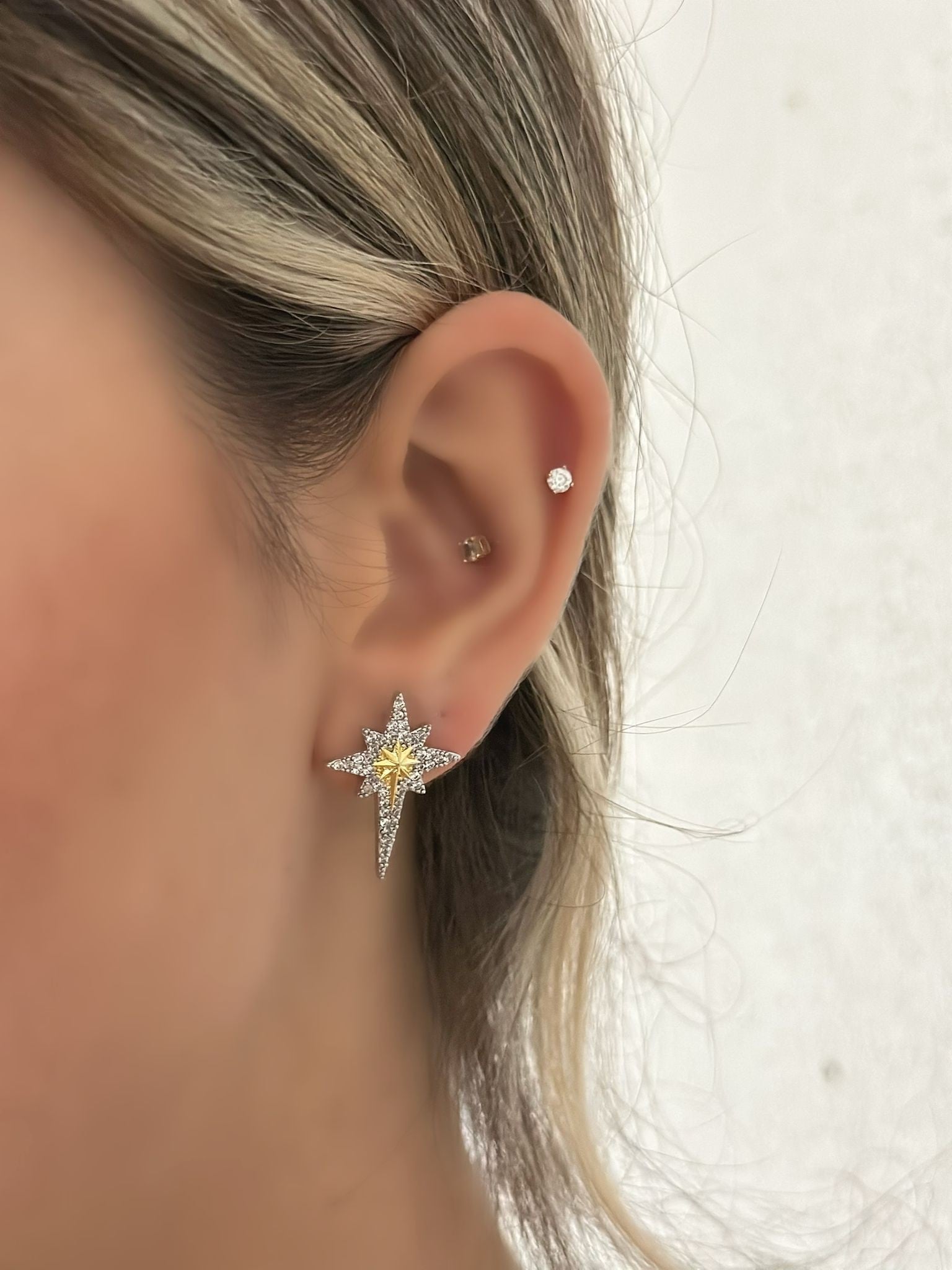 Çift Renk Zirkon Taş Detay Kutup Yıldızı Küpe